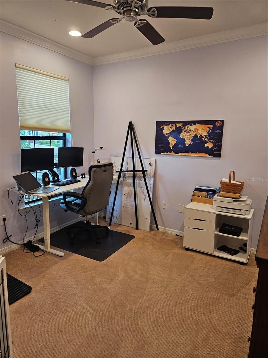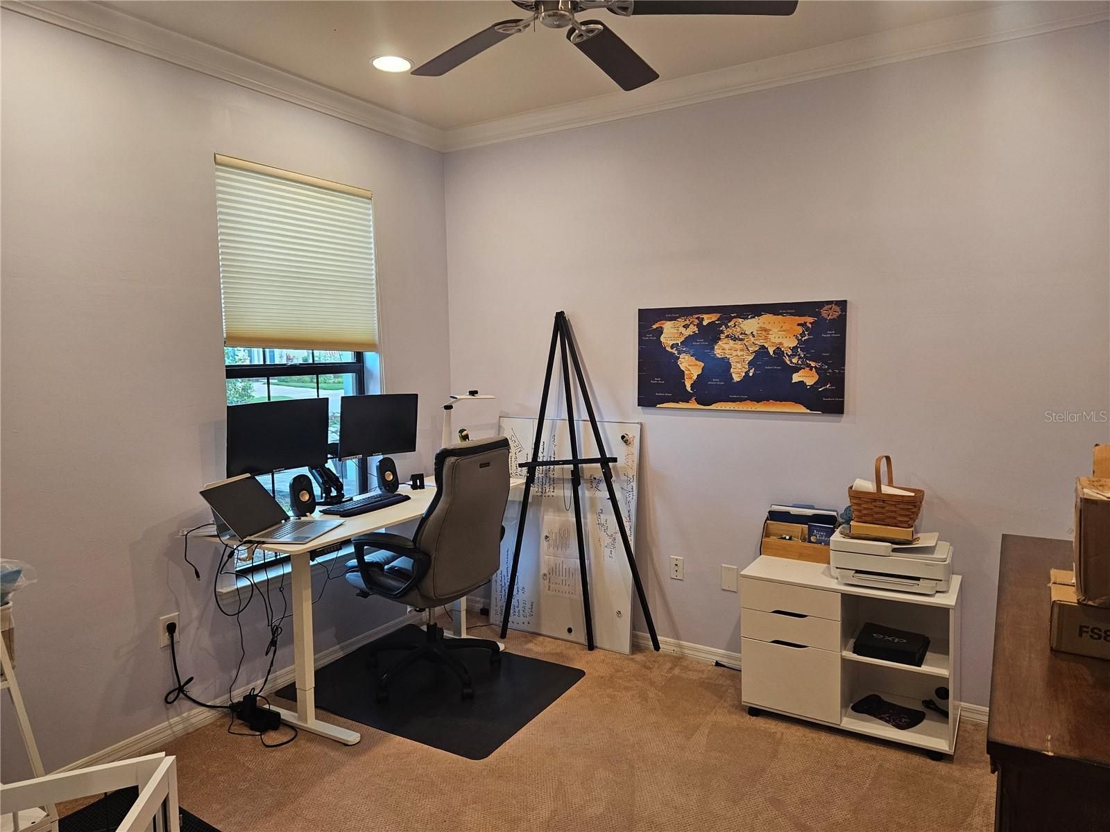 - Ceiling Fan(s), Crown Molding, Eat-in Kitchen, High Ceilings, Thermostat