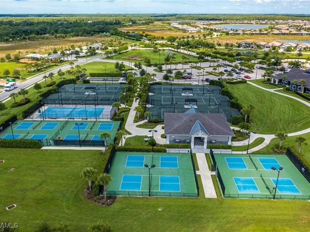 - Includes: Basketball Court, Bocce Court, Cabana, Clubhouse, Dog Park, Fitness Center, Playground, Pickleball, Park, Pool, Restaurant, Spa/Hot Tub, Sidewalks, Tennis Court(s), Management