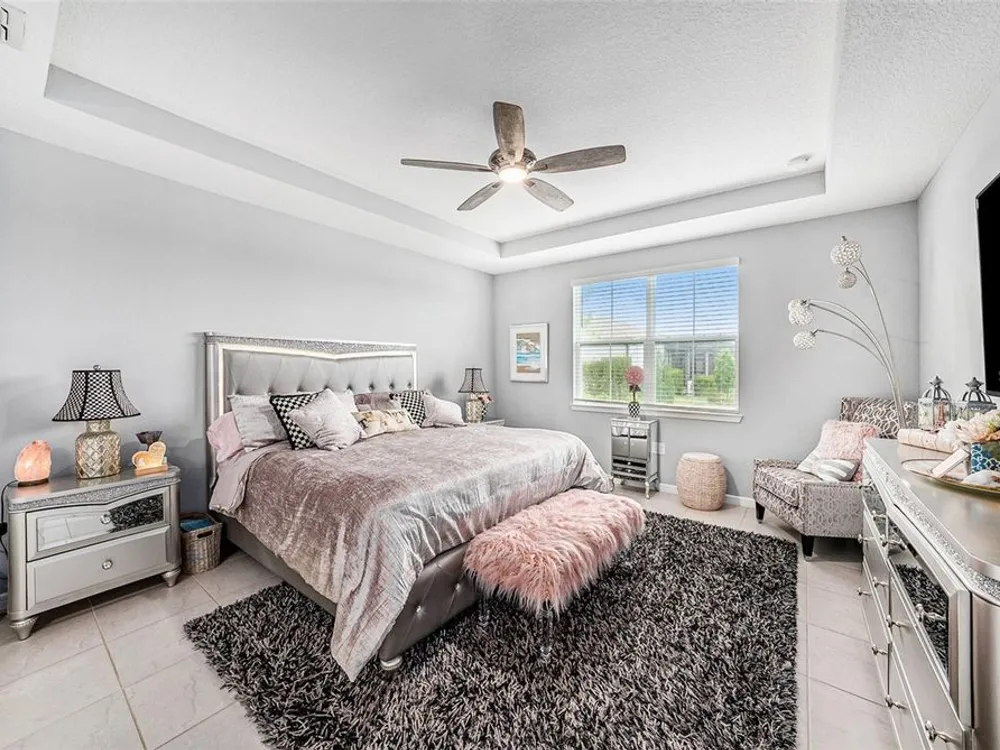 - Ceiling Fan(s), Crown Molding, Eat-in Kitchen, High Ceilings, Kitchen/Family Room Combo, Open Floorplan, Main Level Primary, Stone Counters, Tray Ceiling(s), Walk-In Closet(s)