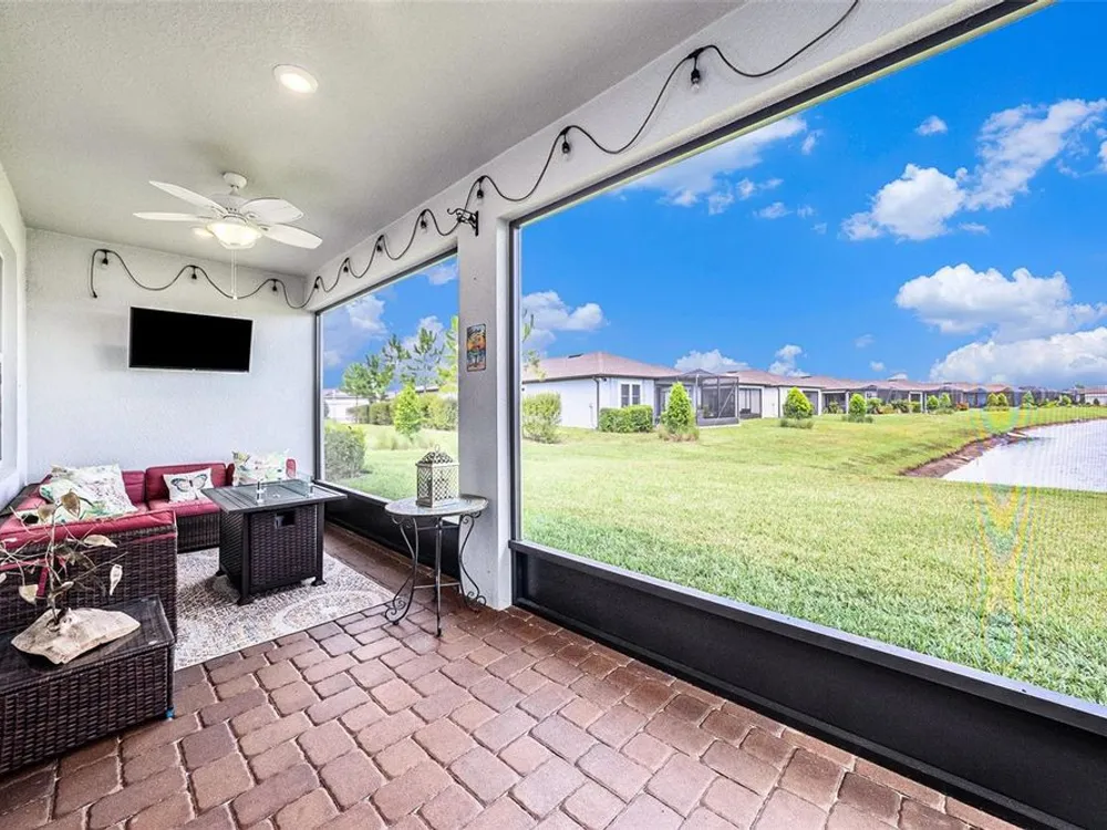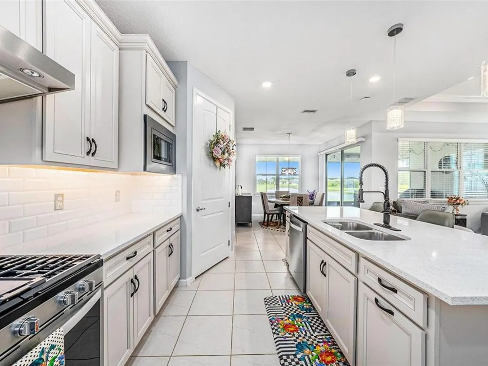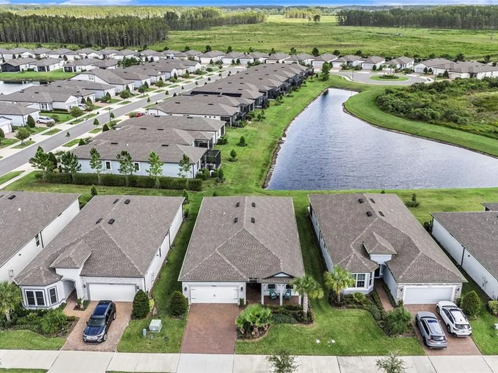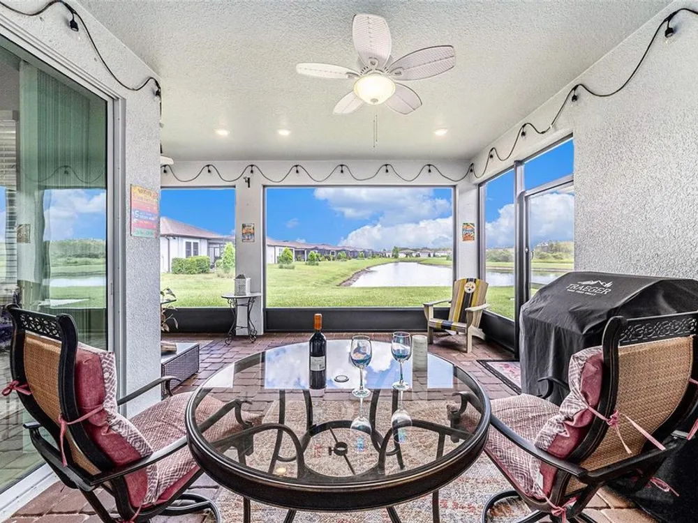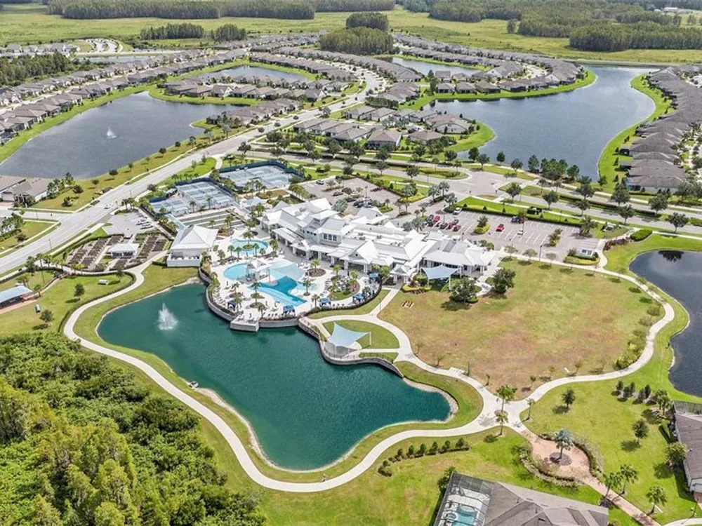 Stunning waterfront home in the premier Del Webb Bexley 55+ community! Offering a spacious open floorplan with custom neutral paint, luxury tile flooring, and high-end fixtures throughout, this is the home you have been waiting for and more. The modern kitchen is a chef’s dream, boasting upgraded appliances, 42" cabinetry with pull-out shelving, under-cabinet lighting, and an extended island with breakfast bar seating. Entertain with ease in the open-concept living and dining areas, which flow seamlessly out to a large, screened lanai—perfect for indoor/outdoor gatherings. An additional flex room with French doors provides a versatile space that can suit any of your household’s needs. Retreat to the spacious primary bedroom, complete with a luxurious en-suite bathroom featuring dual sinks and a large walk-in shower—your private oasis for starting and ending each day in serenity. Ideally located less than a mile from the expansive Del Webb amenity center, you’ll have access to multiple pools, a 19,000 sq. ft. clubhouse with fitness center and café, pickleball and tennis courts, a dog park, and countless social clubs. With close proximity to shopping, dining, medical facilities, and major highways, this home truly has it all. Don’t miss your chance—schedule your showing today!