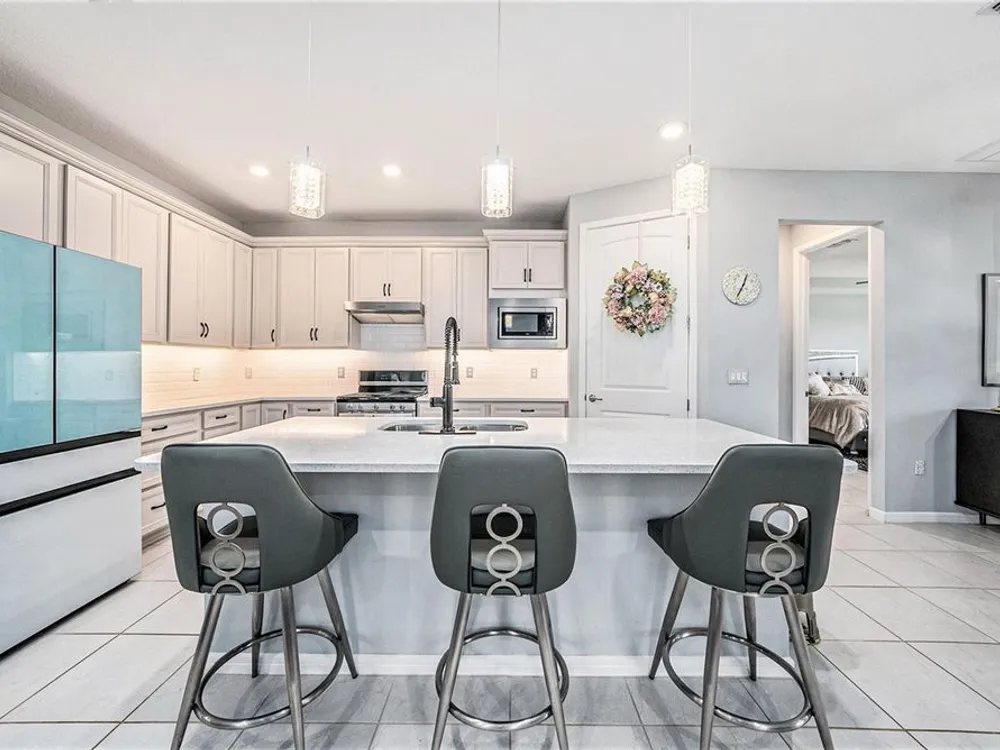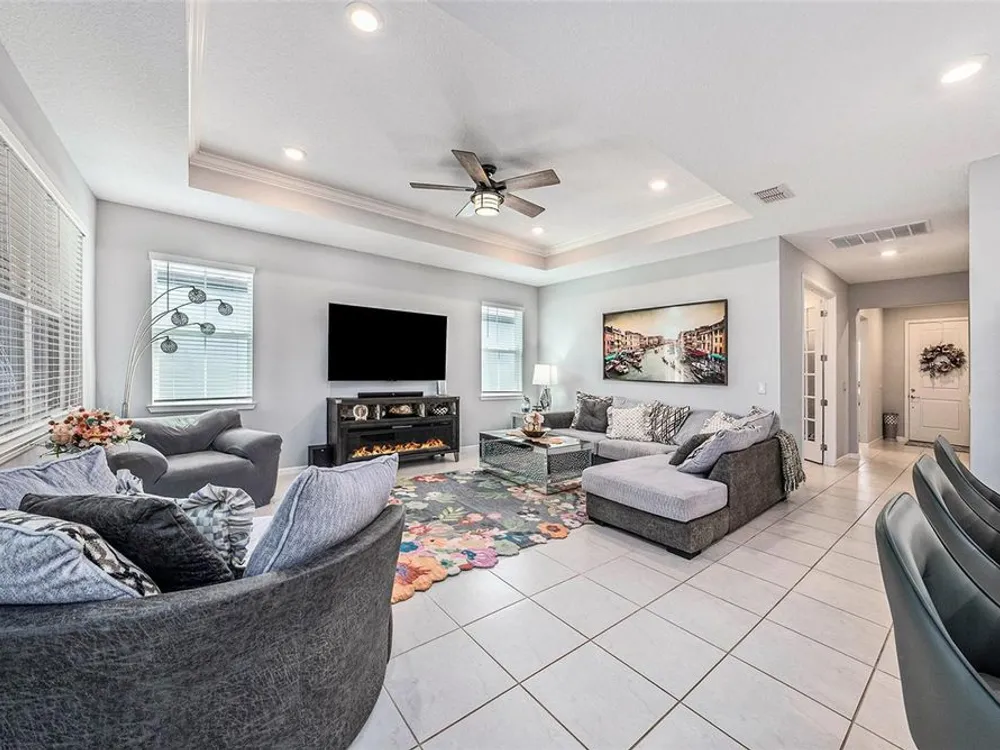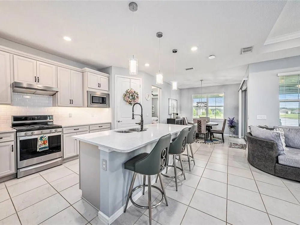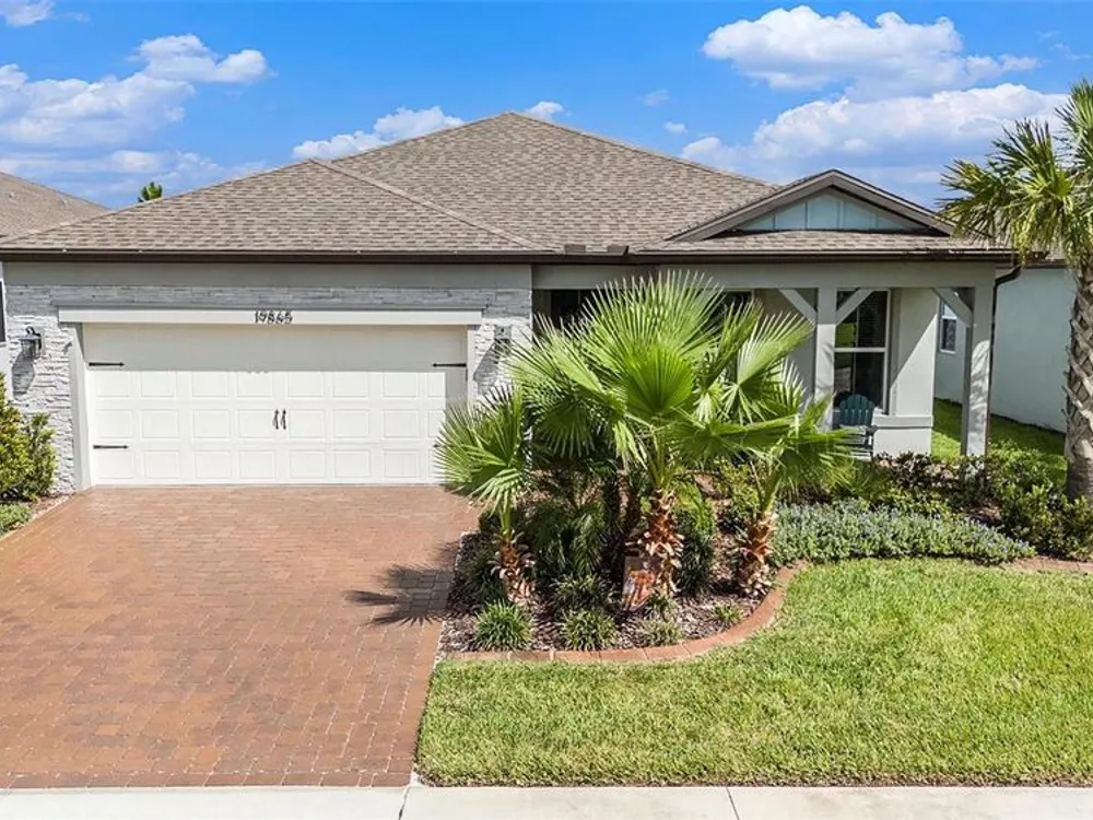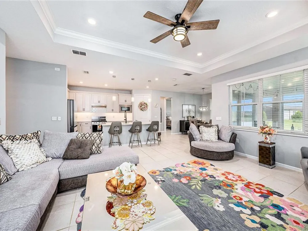 Stunning waterfront home in the premier Del Webb Bexley 55+ community! Offering a spacious open floorplan with custom neutral paint, luxury tile flooring, and high-end fixtures throughout, this is the home you have been waiting for and more. The modern kitchen is a chef’s dream, boasting upgraded appliances, 42" cabinetry with pull-out shelving, under-cabinet lighting, and an extended island with breakfast bar seating. Entertain with ease in the open-concept living and dining areas, which flow seamlessly out to a large, screened lanai—perfect for indoor/outdoor gatherings. An additional flex room with French doors provides a versatile space that can suit any of your household’s needs. Retreat to the spacious primary bedroom, complete with a luxurious en-suite bathroom featuring dual sinks and a large walk-in shower—your private oasis for starting and ending each day in serenity. Ideally located less than a mile from the expansive Del Webb amenity center, you’ll have access to multiple pools, a 19,000 sq. ft. clubhouse with fitness center and café, pickleball and tennis courts, a dog park, and countless social clubs. With close proximity to shopping, dining, medical facilities, and major highways, this home truly has it all. Don’t miss your chance—schedule your showing today!