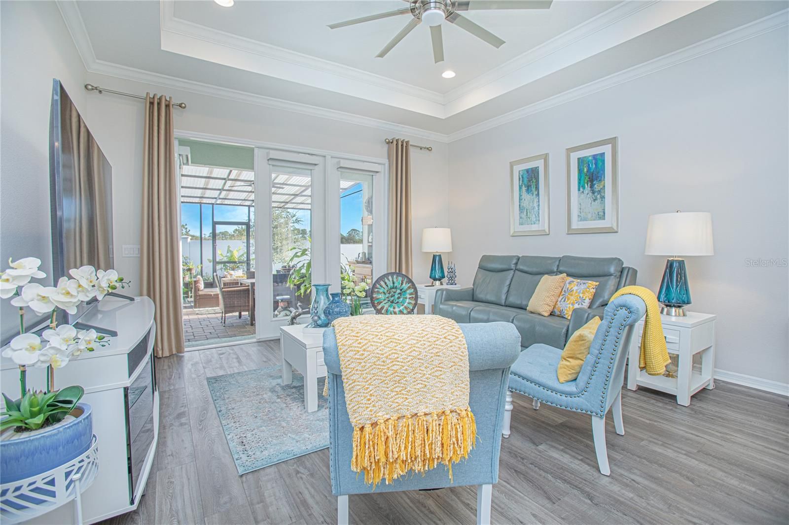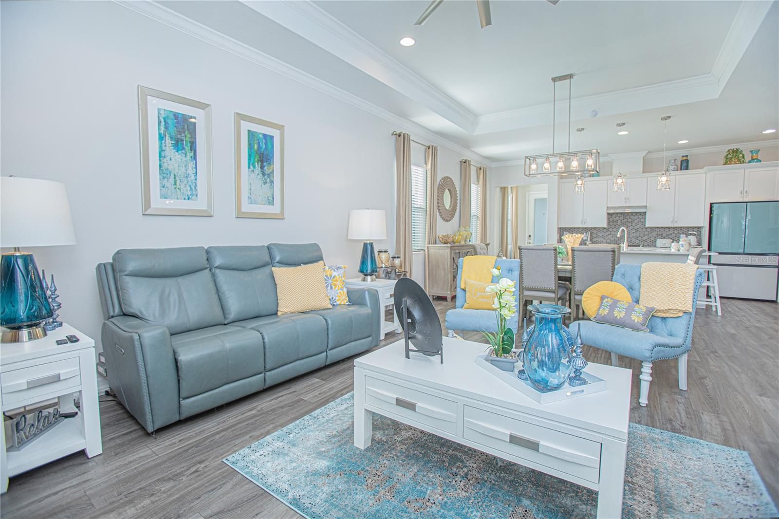 - Ceiling Fan(s), Crown Molding, Open Floorplan, Stone Counters, Thermostat, Tray Ceiling(s)