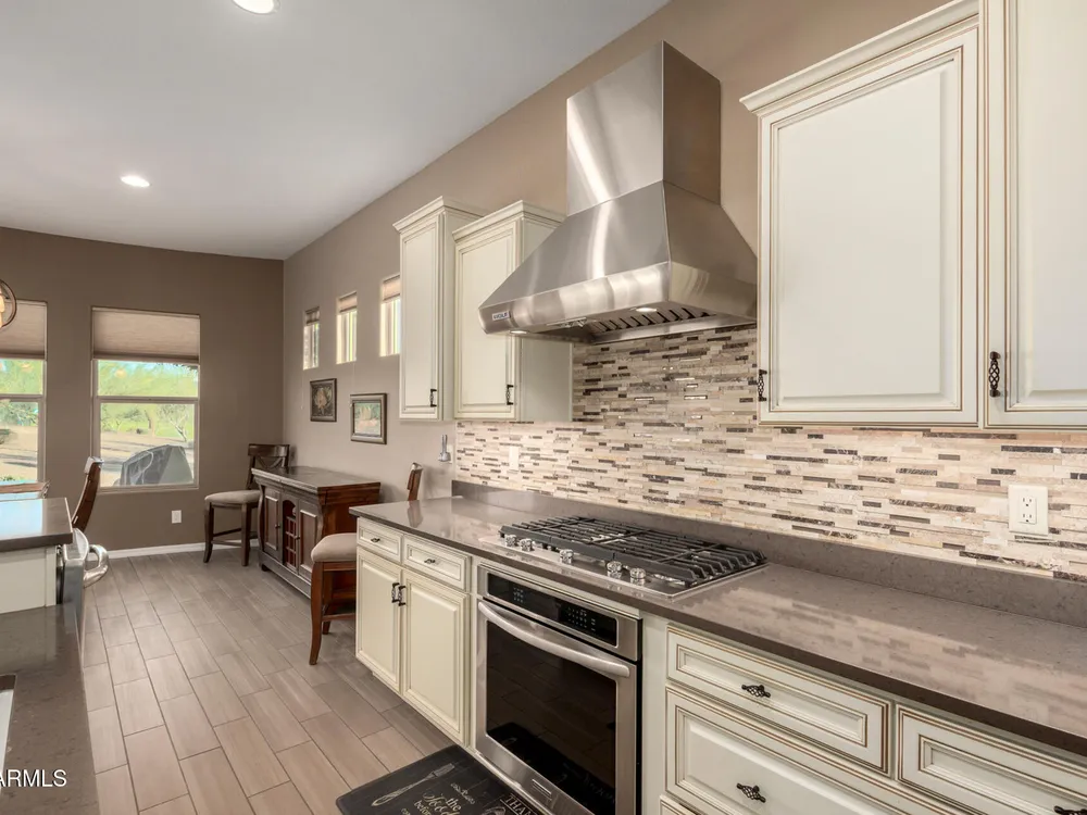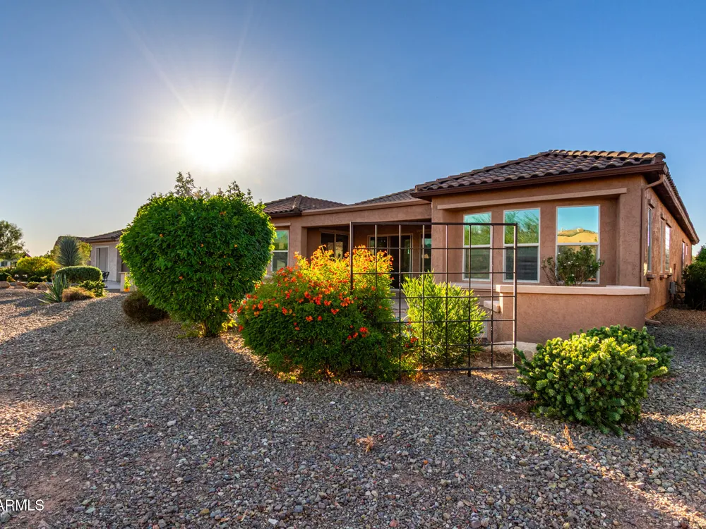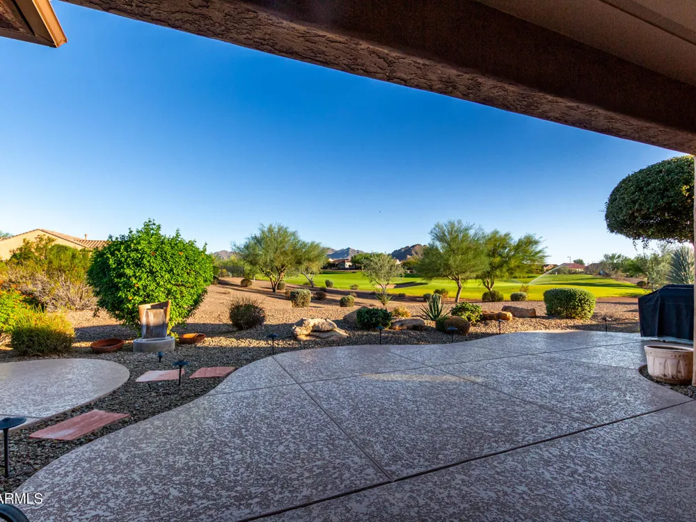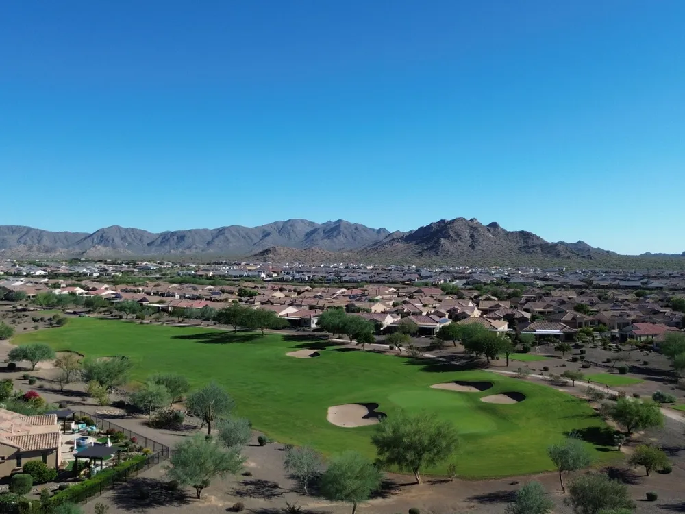 Welcome to Sun City Festival, where every day feels like a getaway and endless possibilities await. Whether you're pursuing your passions or discovering new ones, this premier 55+ Active Adult community in Phoenix's Northwest Valley offers it all. Enjoy two state-of-the-art recreation centers with resort-style pools & spas, fitness studios, outdoor patios & an indoor walking track. Tee off on the 27-hole Copper Canyon Golf Course managed by Troon Golf®, get creative in the woodshop & crafts studio, or stay active with pickleball, bocce & tennis, there's something for everyone! This spectacular golf course home embodies resort-style living at its finest. Perfectly positioned on the 2nd green of the Copper Canyon Vista Course, this one-of-a-kind Endeavor model captures unobstructed panoramic views of the lush fairways & the breathtaking White Tank Mountains. Wake up to radiant sunrises & unwind with shaded, tranquil afternoons on your extended patio. Inside, 2,473 sq ft of thoughtfully designed space offers 2 spacious bedrooms, 2.5 baths & a versatile den. The chef's kitchen shines with Coconut white cabinetry, stainless steel appliances, a Wolf vent hood & a raised dishwasher for effortless convenience. The open-concept great room invites seamless entertaining, while the oversized lot offers room to design your dream pool. With an extended 2-car garage & a separate golf cart garage, this home blends elegance, function, and the ultimate Arizona lifestyle.
