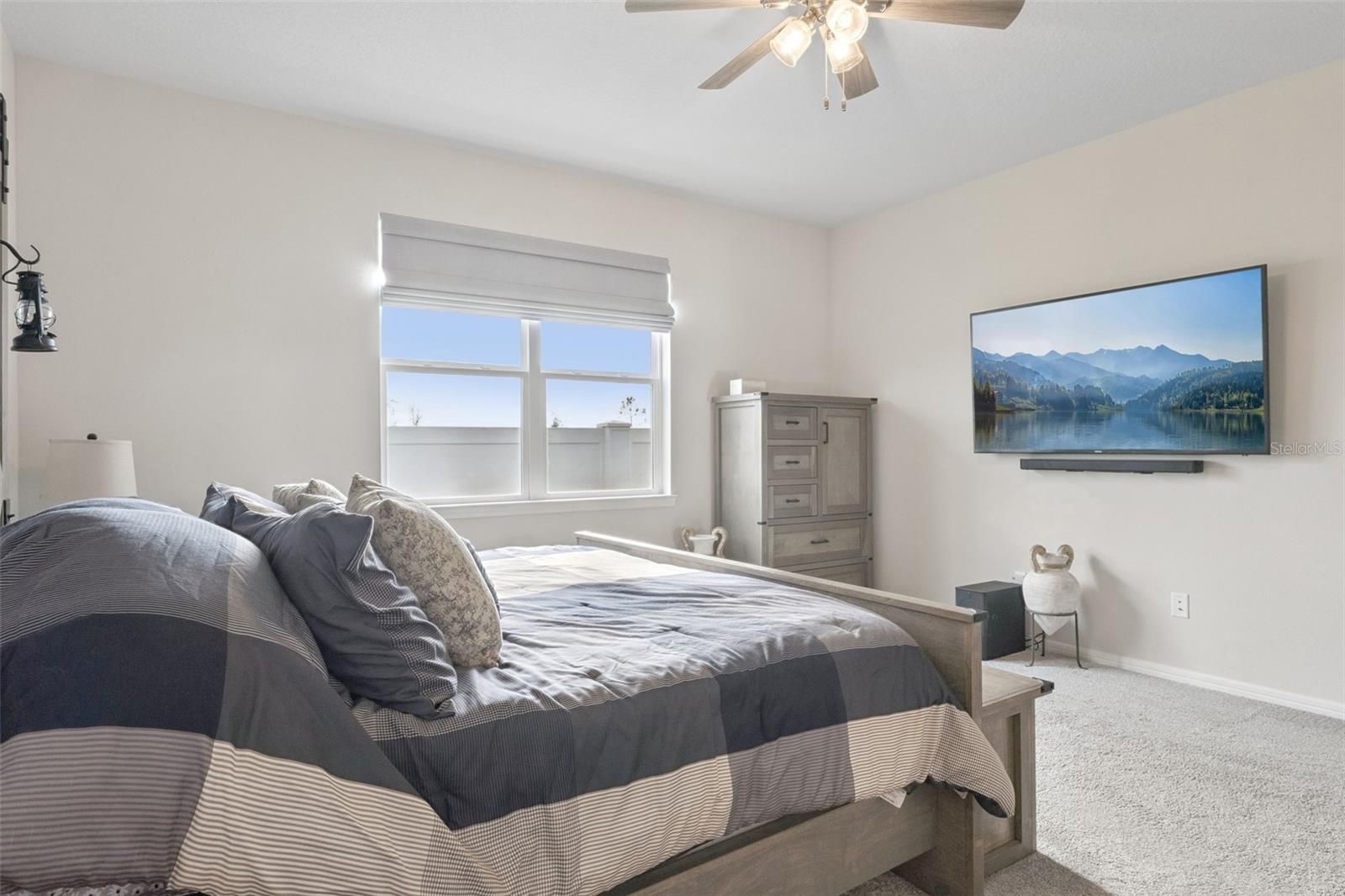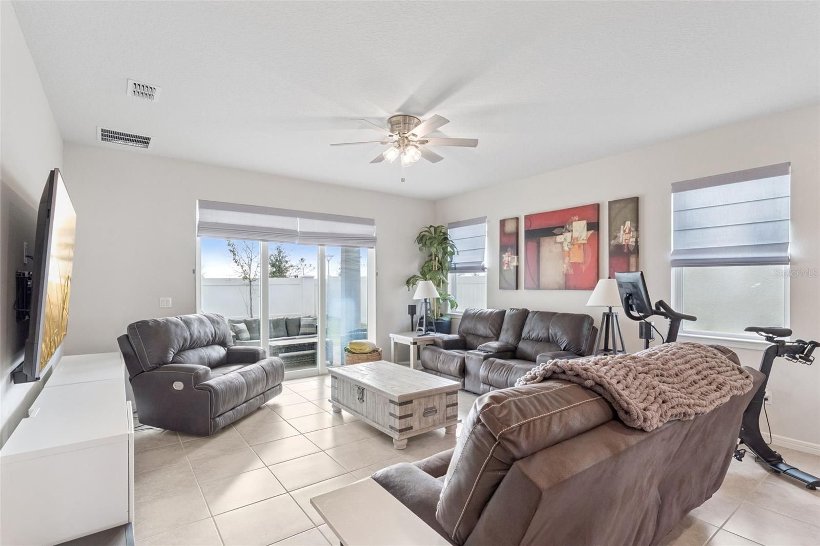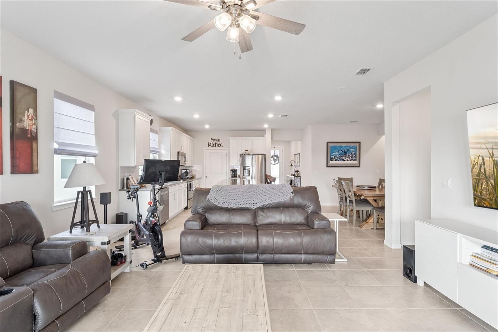 - Ceiling Fan(s), In-Wall Pest Control, Kitchen/Family Room Combo, Open Floorplan, Main Level Primary, Solid-Wood Cabinets, Split Bedrooms, Stone Counters, Thermostat, Walk-In Closet(s), Window Treatments