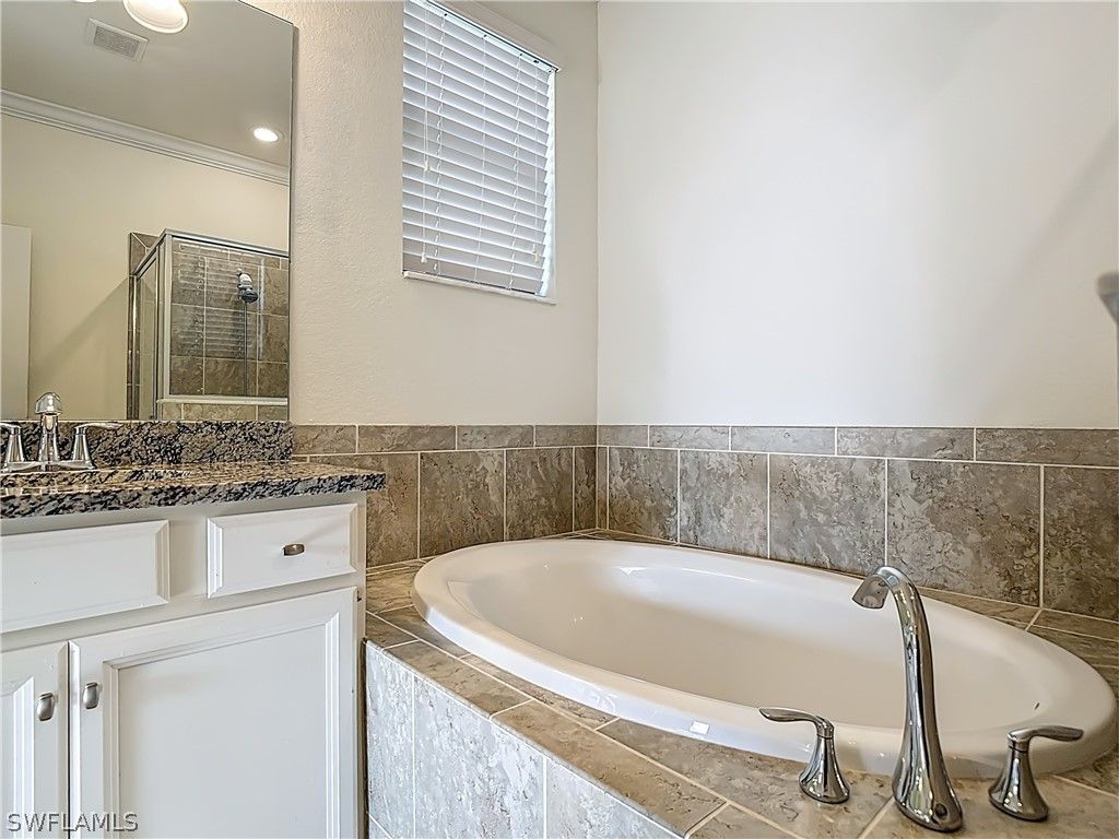 - Bathtub, Dual Sinks, Living/Dining Room, Pantry, Separate Shower, Walk-In Closet(s)