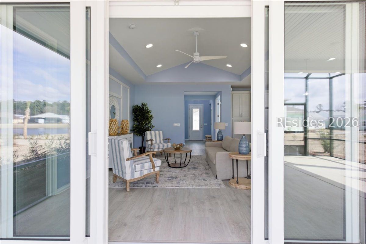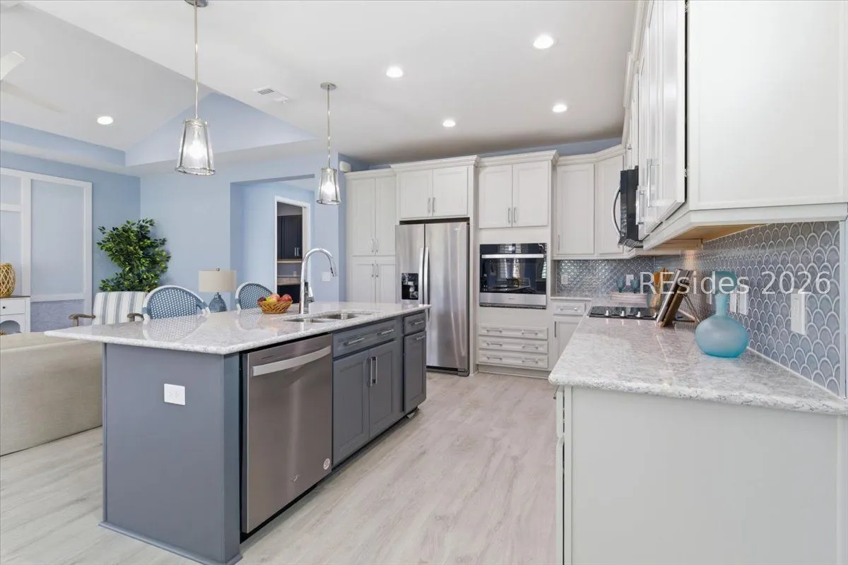 2025 Nearly Brand New Margaritaville "Coconut" model! This fresh, well appointed single family home has many upgrades you will appreciate! Luxe kitchen with 42" cabinets, stylish backsplash, quartz countertops, island, wall oven/cooktop! 8' tall doors throughout! Tile baths, XXL master shower. Recessed lights! Birdcage extension with sliding glass doors, plantation shutters, double glass doors to the den, laundry cabinetry! Refrigerator included! Very cool garage ATTIC LIFT to assist with storage.