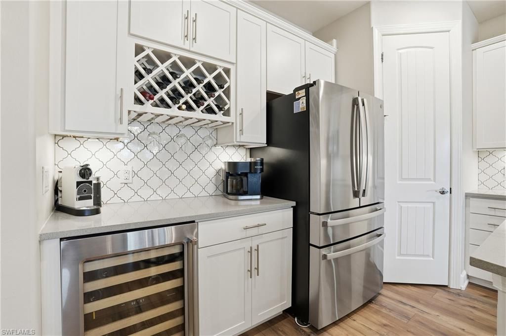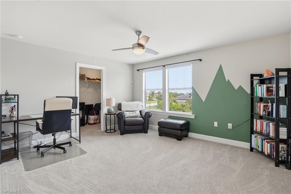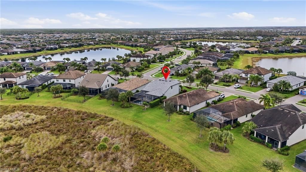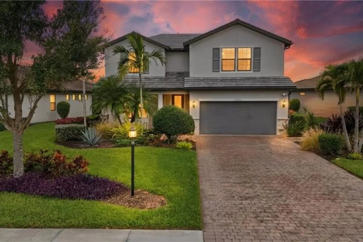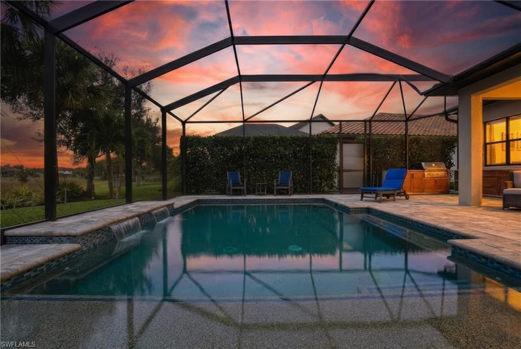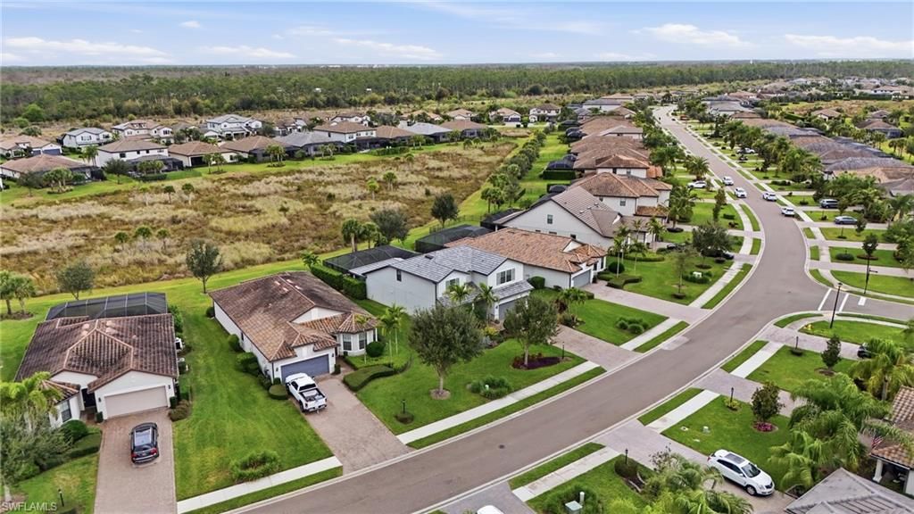 Located in the gated, resort-style community of The Place at Corkscrew, this inviting two-story home offers peaceful marsh views, west-facing sunset exposure, and well-designed indoor and outdoor living spaces. Built by Pulte Homes, the Citrus Grove floorplan provides 2,859 square feet of living space with four bedrooms, a first-floor den, an upstairs loft, and 2.5 bathrooms. The primary suite is located on the main level, while three additional bedrooms and a spacious loft upstairs offer flexibility for guests, work-from-home needs, or everyday living. A 2-car garage with a 4-foot extension adds extra storage.The interior features wood-look laminate flooring in the main living areas, white cabinetry, quartz countertops, and tray ceilings in the great room, den, loft, and primary suite. Additional highlights include a custom fireplace and TV feature wall, impact-glass front door insert, glass-enclosed primary shower, mini-split climate control in the garage, and a dedicated attic storage room.Outdoor living is easy to enjoy year-round with a custom saltwater pool featuring a lagoon-style finish, sheer descent waterfalls, LED lighting, a modular outdoor kitchen, and a covered lanai overlooking the marsh. The west-facing orientation creates a comfortable outdoor setting with beautiful sunset views.Residents enjoy a wide range of amenities, including a resort-style pool with waterslide and spa, indoor dining options, café, bourbon bar, outdoor bar, large fitness center with childwatch services, movement studio, tennis, pickleball, bocce, basketball, playground, dog park, spa services, and two manned guard gates staffed 24/7. Fencing is permitted.Conveniently located near I-75, approximately 20 minutes from Southwest Florida International Airport, and close to Miromar Outlets, Gulf Coast Town Center, and Coconut Point, this home offers a comfortable lifestyle in one of Southwest Florida’s most desirable communities.