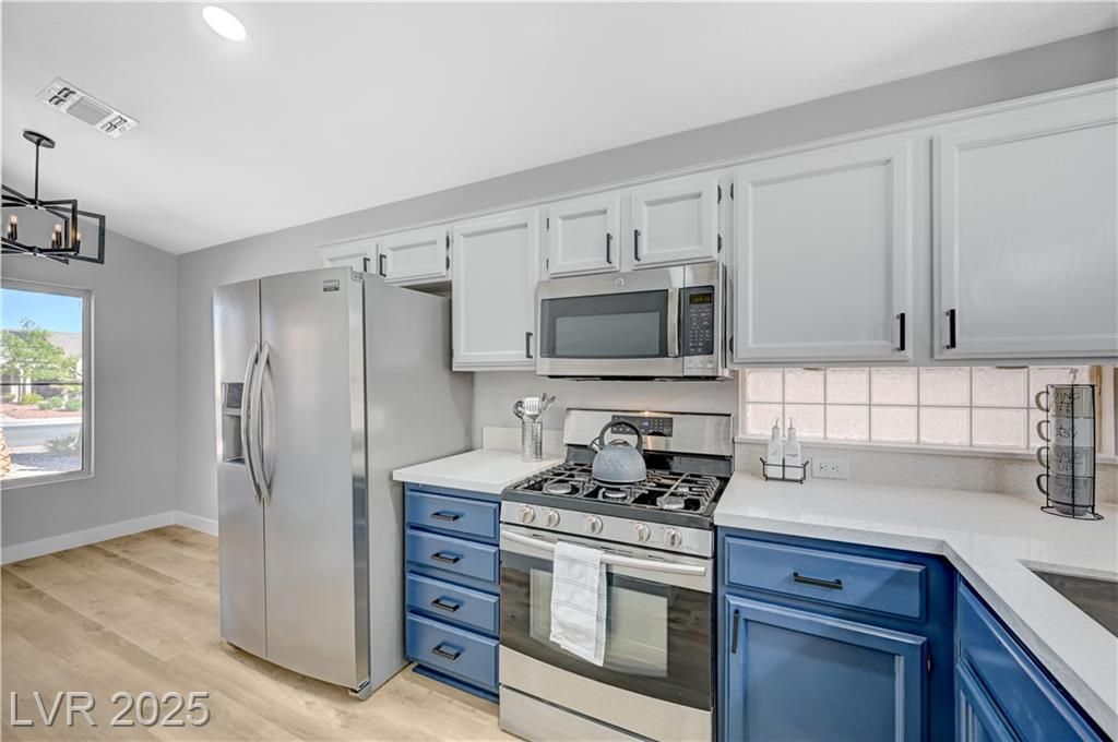 Charming Single-Story Home with Modern Comforts. Welcome to this beautifully redone 2-bedroom, 2-bathroom single-story home offering 1,230 square feet of living space. Step inside to an inviting open floor plan filled with natural light, featuring a spacious living area perfect for relaxing or entertaining guests. The kitchen boasts modern appliances, and a convenient breakfast bar that opens to the dining area. The primary suite offers a peaceful retreat with a private en-suite bathroom and generous closet space, while the second bedroom and bath provide comfort and flexibility for guests or a home office. With no stairs and an easy-flow layout, this home is perfect for those seeking comfort and convenience. Located in a quiet, desirable neighborhood close to shopping, golfing, dining, parks, and major freeways, this home combines practicality with style — ready for you to move in and make it your own! PAID OFF SOLAR, average power bill $19.00.