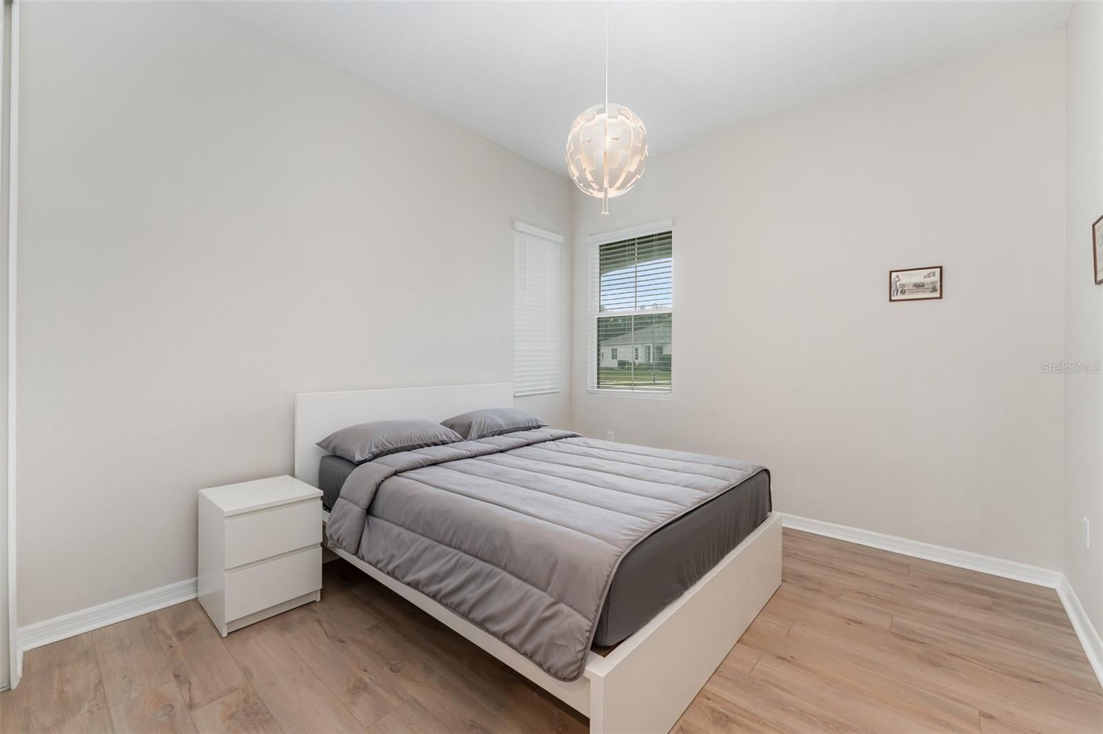 Welcome to this beautifully maintained 2-bedroom, 2-bath villa with a 2-car garage in the highly desirable Four Seasons at Orlando! Barely lived in, this home feels truly move-in ready. The open, light-filled floor plan features stylish upgrades, including luxury vinyl flooring, tray ceilings, and thoughtfully designed finishes throughout. The gourmet kitchen offers quartz countertops, modern appliances, abundant cabinetry, and a spacious island perfect for everyday living or entertaining. The primary suite serves as a private retreat with dual sinks, a walk-in shower, and a generous walk-in closet. A versatile second bedroom works well for guests, hobbies, or a home office. Step outside to the open lanai—an inviting space for morning coffee, evening relaxation, or entertaining friends. As a resident of Four Seasons, you’ll have access to a vibrant 55+ community designed around active living. Spend your days at the beautifully appointed clubhouse, take a dip in the resort-style pools, stay active with tennis, pickleball, bocce, or the fitness center, and enjoy the walking paths that wind through the neighborhood. The community also connects to the scenic Mystic Dunes Golf Course. With lawn care and exterior maintenance included in the HOA, you can focus on enjoying life instead of yard work. All of this is just minutes from Celebration, world-class attractions, shopping, dining, and top-rated healthcare, making this villa an ideal blend of convenience and lifestyle.