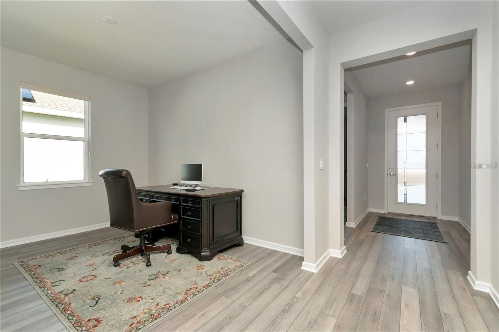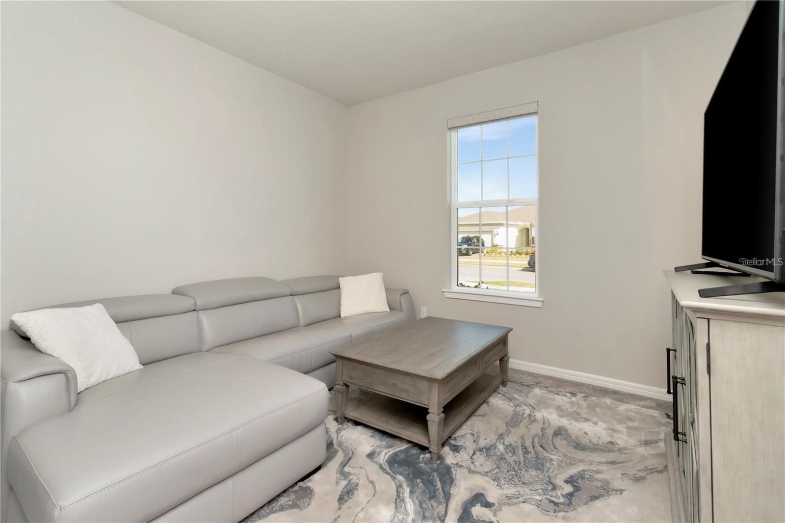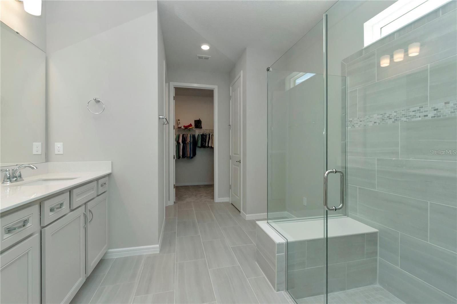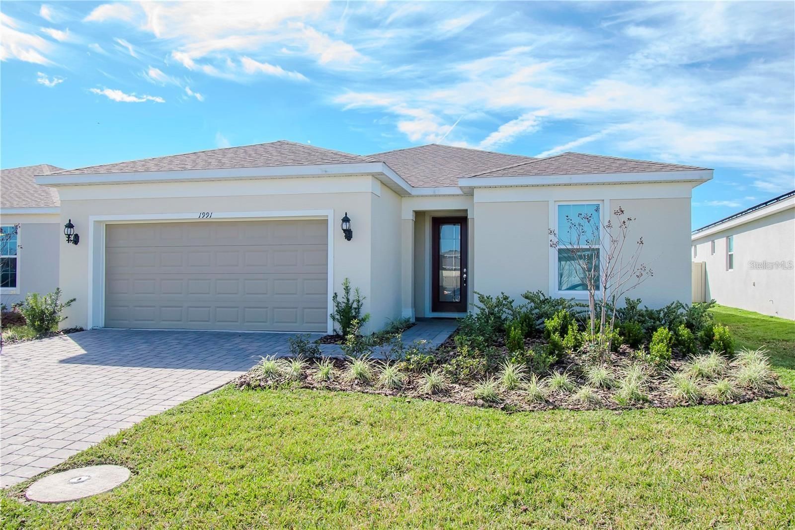 Prepare for the next exciting chapter of your life in the BRAND-NEW 55+ gated community of Tohoqua Reserve in Kissimmee. Built by Pulte Homes in 2023, this TURN-KEY move-in ready residence features the coveted Mystique floor plan, enhanced with numerous custom upgrades, and is situated on a homesite with no rear neighbors. This spacious home spans 1,889 square feet of heated living space and includes 3 bedrooms, 2 bathrooms, a great room, and a bonus/flex room, all designed with an open-concept layout. The exterior showcases a professionally curated Florida Mediterranean aesthetic, complete with a lush green lawn, landscaping, outdoor lighting, and stunning palm trees. As you step inside, the decorative designer leaded glass-inlay on the front door opens to an impressive foyer, featuring NEW vinyl flooring that seamlessly flows throughout the great room, dining room, kitchen, and café. For the culinary enthusiast, the kitchen is a delight, boasting 42” wood Glacier Gray cabinets with crown molding, a coordinating wood canopy hood, light gray beveled subway-style tile backsplash, Quartz countertops, a center working island with a stainless sink, a walk-in pantry, and a suite of stainless appliances, including a built-in wall oven and microwave. Pendant lighting over the breakfast bar and recessed lighting add to the kitchen's charm. Adjacent to the kitchen is the café area, bathed in natural light from strategically placed windows and sliding glass doors, providing a lovely view. The kitchen seamlessly flows into the spacious great room, making it an ideal space for gatherings and relaxation. The primary suite is a luxurious retreat, featuring a generously sized walk-in closet and an ensuite bath with a double vanity in Glacier Gray, Blanco Quartz countertops with rectangle undermount sinks, a stunning walk-in tiled shower, private water closet, and linen closet. The split bedroom floor plan ensures privacy for family and guests, with the secondary bathroom mirroring the Glacier Gray vanity with Quartz counter and rectangle undermount sink, along with a tiled tub shower. Both bathrooms boast Heather Gray porcelain tile floors, as does the laundry room. The bedroom(s) offers stain-resistant Ornamental Gate carpet, while the bonus/flex room features luxury vinyl plank floors. The garage floor has an upgraded epoxy finish. Step outside to the covered lanai patio, adorned with brick pavers and surrounded by a luxurious green lawn. Tohoqua Reserve offers a range of amenities for both indoor and outdoor enthusiasts, including a clubhouse with meeting rooms, space for social events, a fitness center, a resort-style pool, sports courts, fire pits, a dog park, miles of outdoor fitness trails, and a Village Center featuring restaurants, shops, a farmers' market, and more. The location provides easy access to major roadways, including US-192 and the Florida Turnpike, as well as proximity to the Orlando International Airport, Orlando's renowned amusement parks, outlet malls, medical facilities, sporting events, and much more. Don't miss out on this opportunity to own a model-perfect home extensively upgraded in Tohoqua Reserve. Why wait to build when you can make this exceptional residence yours today? Schedule your appointment without delay!