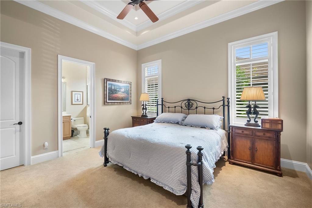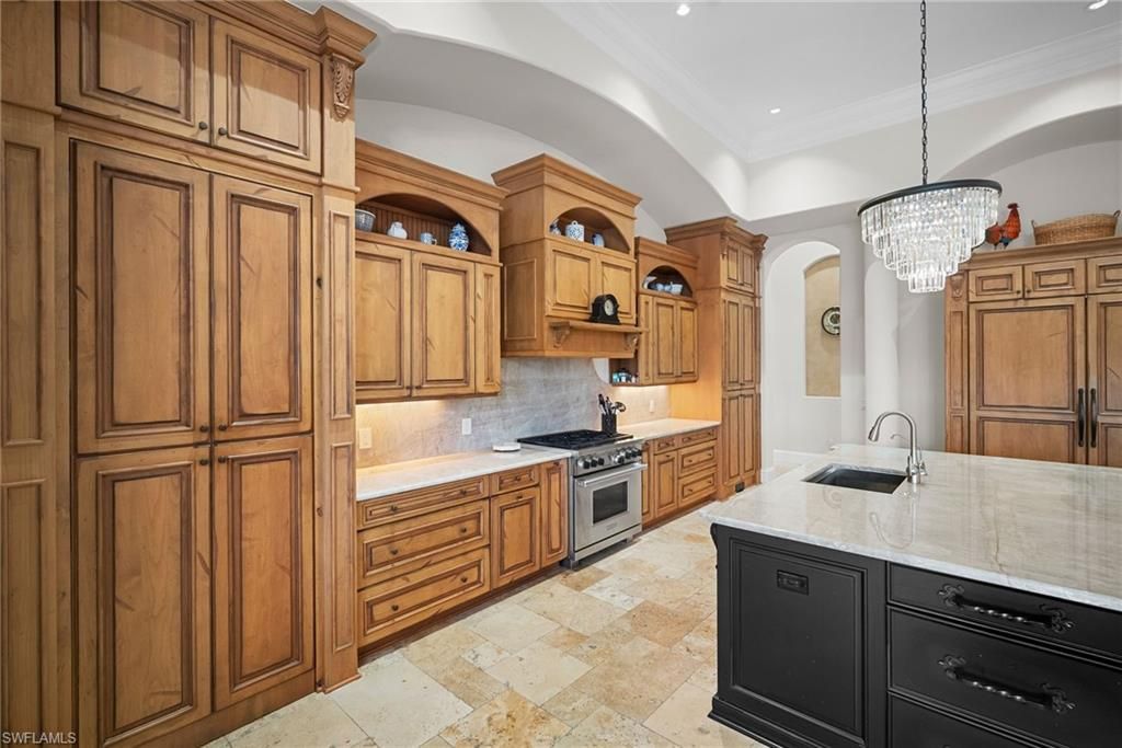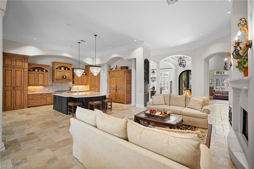 PLS WATCH ATTACHED VIDEO!!This extraordinary estate presents a rare opportunity to own a true masterpiece of luxury and architectural design, perfectly positioned on one of the largest and most coveted lots in the community. Markward Crossing is a gated community within the gated community of Grandezza with 92 residences. As you drive up you will be greeted by a 3 tier fountain and the massive elevation would appear to be a 2 story home. The 4 br plus den/4.5 bathrooms and the tremendous volume of the ceilings will WOW YOU! Every detail reflects exceptional craftsmanship, with an impressive 5,539 SqFt of refined living space.Upon entering through the grand double doors, you are welcomed into an expansive living and dining area that immediately reveals breathtaking panoramic views of the 5th hole, par-3 golf course, and sparkling water —unmistakably one of the finest lots and views in the entire community. This serene and picturesque backdrop creates the perfect setting for both everyday living and elegant entertaining.Designed for the culinary enthusiast, the chef-inspired kitchen features high-end, branded appliances, a generous walk-in pantry, and seamless flow for hosting gatherings. Enhancing the home’s entertainment appeal is a separate wine bar complete with wine cooler, refrigerator, and sink.The luxurious primary suite is a private sanctuary, offering an intimate sitting area with stunning golf course views. Custom-designed his-and-hers walk-in closets include built-in cabinetry, dressers, and wardrobes. The spa-like primary bath delivers an indulgent experience with dual vanities, a private water closet with bidet, an oversized steam shower, and a soaking tub.The spacious and versatile floor plan includes a fourth bedroom with en-suite bath—currently used as a den—which could easily serve as a second primary suite, along with 4.5 bathrooms and an additional flex lounge area. Step outside and enjoy exceptional outdoor living with an oversized saltwater pool and hot tub equipped with an outdoor kitchen, fireplace and unobstructed expansive picture framed pool cage to fully immerse yourself in the beauty of this setting!Grandezza offers an unparalleled array of amenities catering to every lifestyle. The newly renovated clubhouse serves as a vibrant social hub with both casual and fine dining options. Sports enthusiasts will appreciate the tennis and pickleball courts, along with the private 18-hole championship golf course.For the car enthusiast, the expansive, climate-controlled garages feature 15-foot ceilings, accommodating car lifts and the potential to house up to six vehicles, along with ample storage.Every inch of this meticulously updated residence was designed by renowned architect Brian Huff with a Lucarelli signature, blending timeless elegance with modern luxury.This exceptional home is truly one of Grandezza’s crown jewels. Don’t miss the opportunity to make it yours!!!!