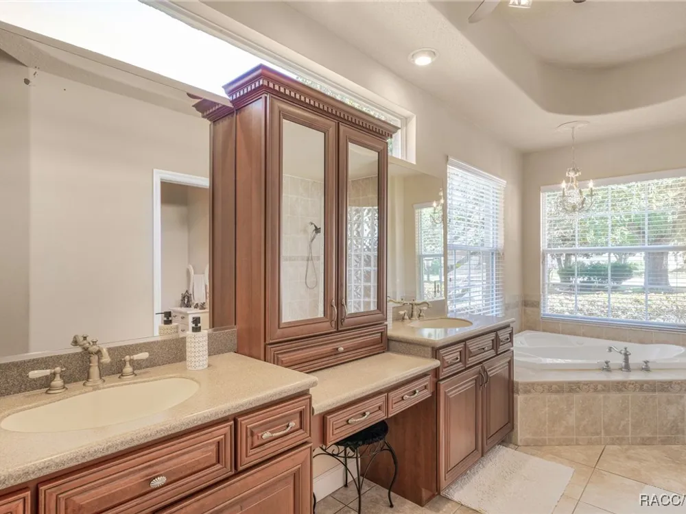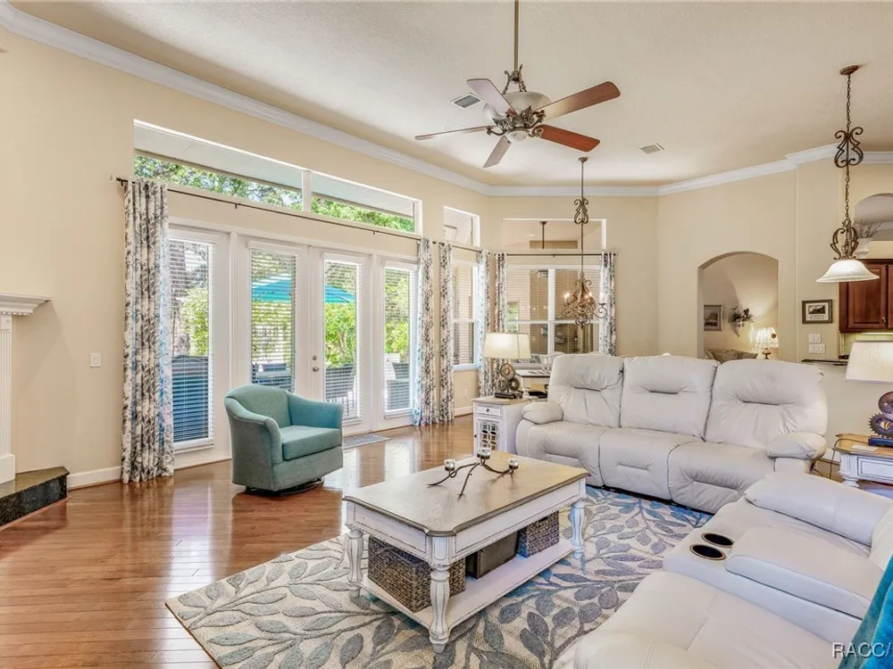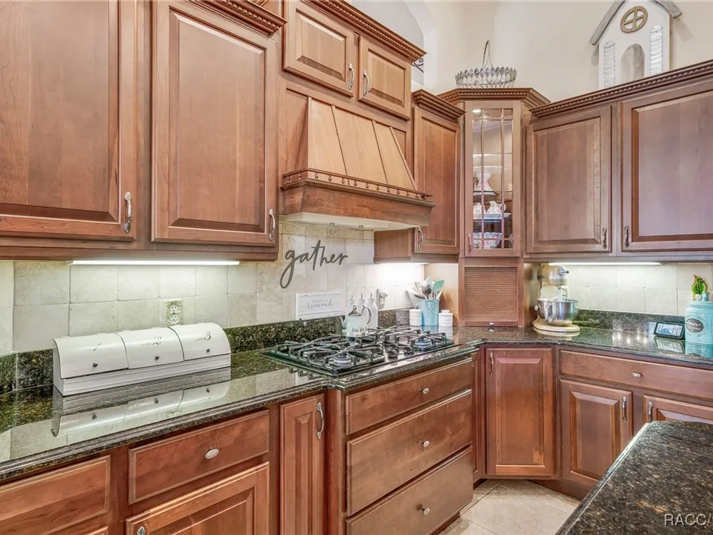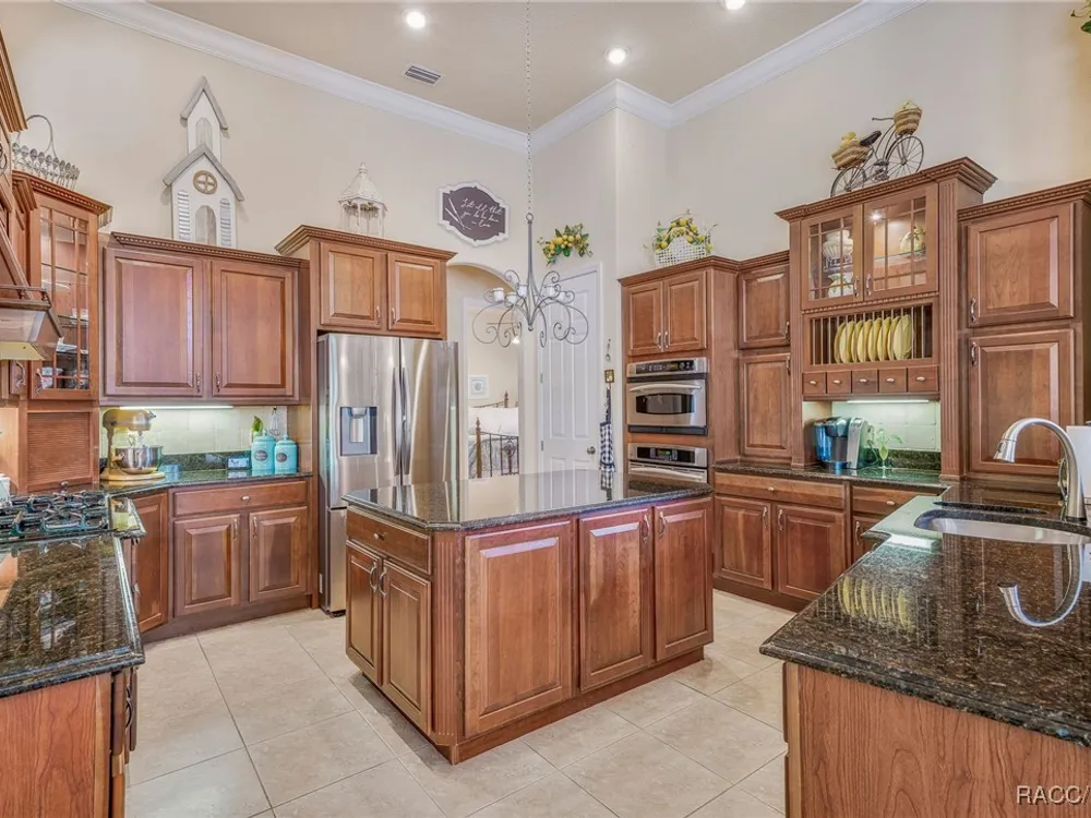 From the moment you step on the paver clad walkway leading to the front door you feel something special is about to unfold before you. The warmth of the hardwood floor greets you; the finish of crown molding ceilings impresses you, and the rounded corners and arches over every passageway and wall opening surprises you! The first light of day spills through the transom windows and fills you with joy to meet the challenges of every new day. But in Terra Vista your challenges are abundant! Such as, how many holes of golf to play, whether to play tennis or pickleball, or which Olympic size swimming pool to enjoy. Not to mention the fitness center and spa or the activity center with multiple cultural offerings throughout the year. This is indeed the life you have imagined and the house you have always dreamed of calling home. No detail has been overlooked and no expense spared to create this one-of-a-kind custom home perfectly located on a cul-de-sac lot where the trees are filled with songbirds and provide a natural barrier between your neighbors. The dream kitchen doesn’t disappoint either! Gorgeous cherry cabinets topped with granite; top of the line stainless steel appliances including a microwave that will satisfy that grilled cheese craving like you’ve never experienced before! It’s all open to the breakfast area and family room with gas fireplace and abundantly filled with light. The owner’s retreat has all the amenities you are looking for, separate walk-in closets with built-ins, big enough for casual relaxation and direct access to the garden patio. The bathroom offers dual sinks divided with cabinetry, a spacious walk-in shower, a therapeutic tub and of course the water closet! Additional bedrooms share a guest bath with dual sinks and down the gallery hall you will find a dedicated craft room and laundry room before exiting into the massive 3-car garage! Your future friends are already here enjoying an abundant life, come on, what are you waiting for?!