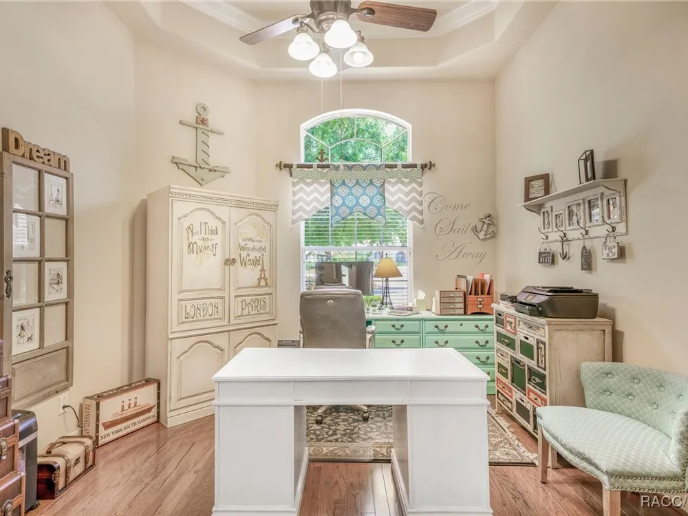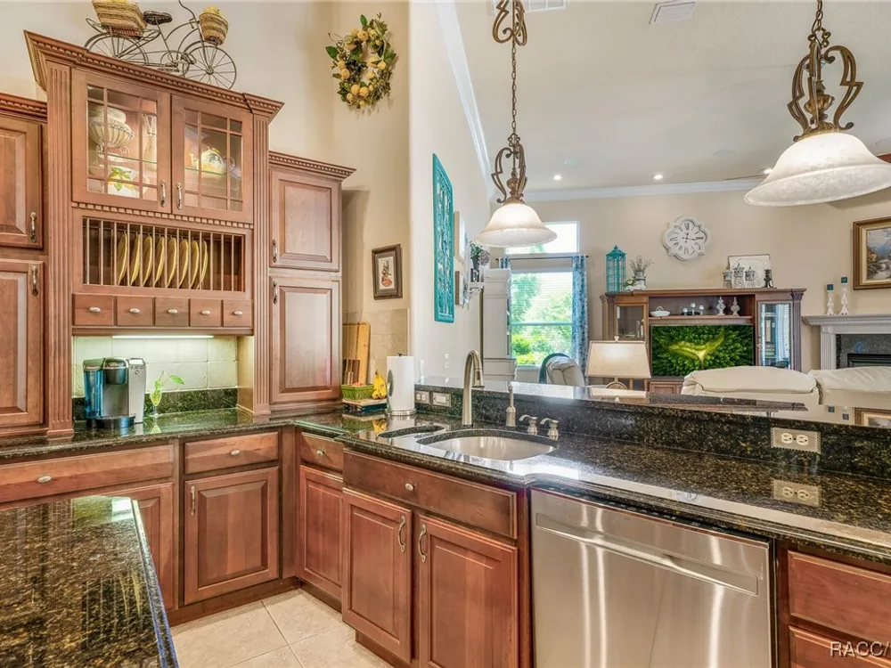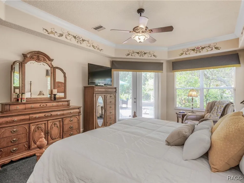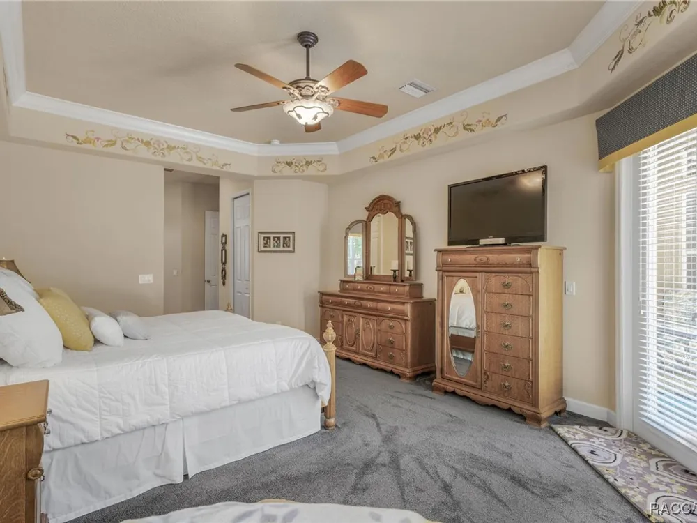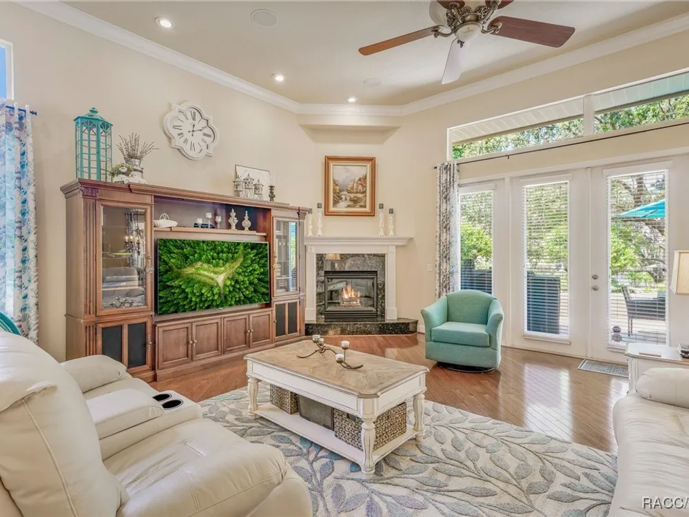 From the moment you step on the paver clad walkway leading to the front door you feel something special is about to unfold before you. The warmth of the hardwood floor greets you; the finish of crown molding ceilings impresses you, and the rounded corners and arches over every passageway and wall opening surprises you! The first light of day spills through the transom windows and fills you with joy to meet the challenges of every new day. But in Terra Vista your challenges are abundant! Such as, how many holes of golf to play, whether to play tennis or pickleball, or which Olympic size swimming pool to enjoy. Not to mention the fitness center and spa or the activity center with multiple cultural offerings throughout the year. This is indeed the life you have imagined and the house you have always dreamed of calling home. No detail has been overlooked and no expense spared to create this one-of-a-kind custom home perfectly located on a cul-de-sac lot where the trees are filled with songbirds and provide a natural barrier between your neighbors. The dream kitchen doesn’t disappoint either! Gorgeous cherry cabinets topped with granite; top of the line stainless steel appliances including a microwave that will satisfy that grilled cheese craving like you’ve never experienced before! It’s all open to the breakfast area and family room with gas fireplace and abundantly filled with light. The owner’s retreat has all the amenities you are looking for, separate walk-in closets with built-ins, big enough for casual relaxation and direct access to the garden patio. The bathroom offers dual sinks divided with cabinetry, a spacious walk-in shower, a therapeutic tub and of course the water closet! Additional bedrooms share a guest bath with dual sinks and down the gallery hall you will find a dedicated craft room and laundry room before exiting into the massive 3-car garage! Your future friends are already here enjoying an abundant life, come on, what are you waiting for?!
