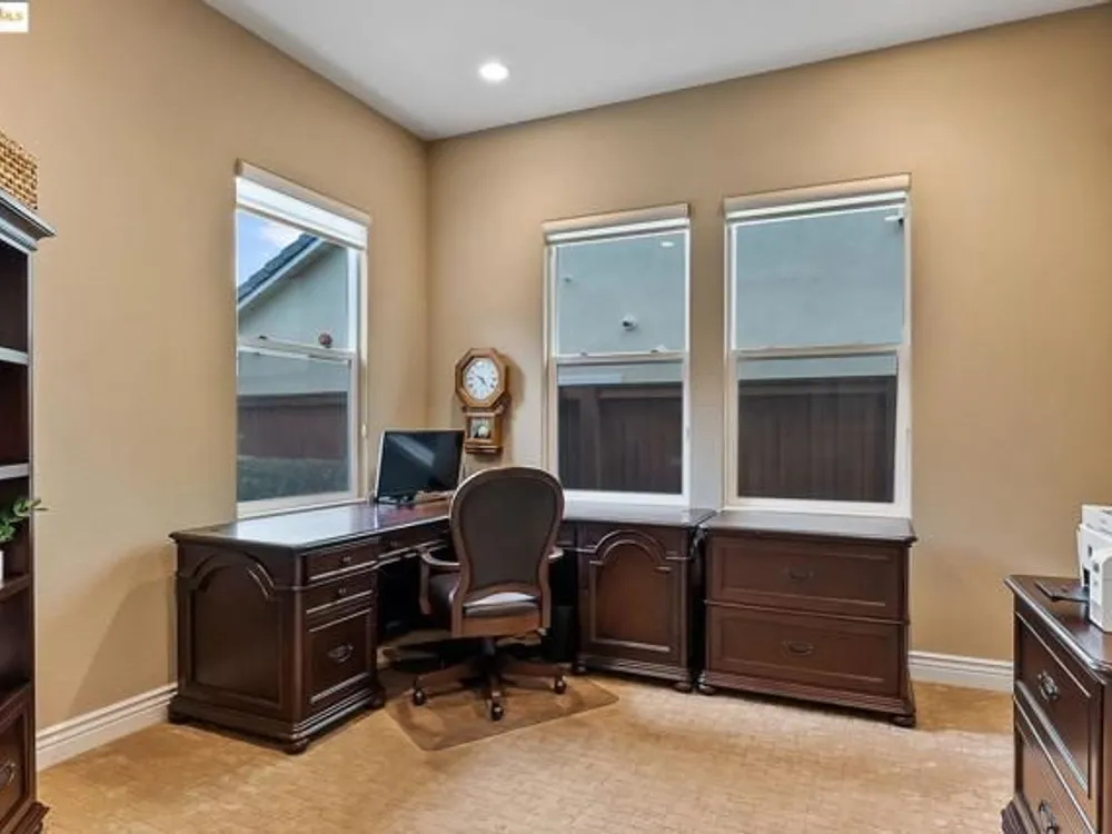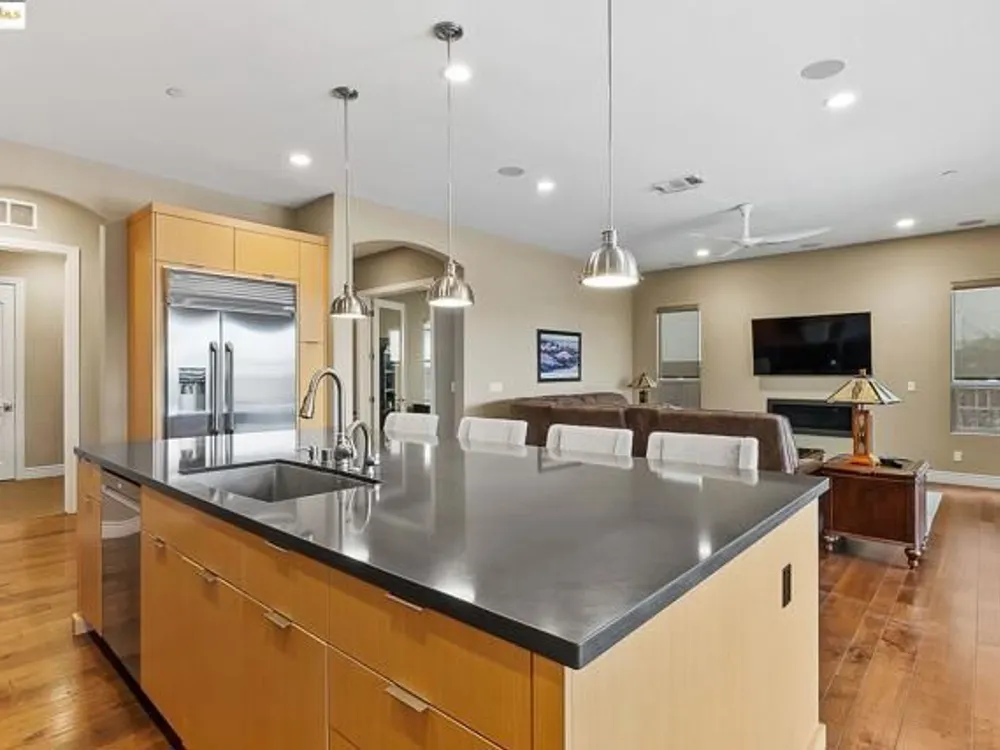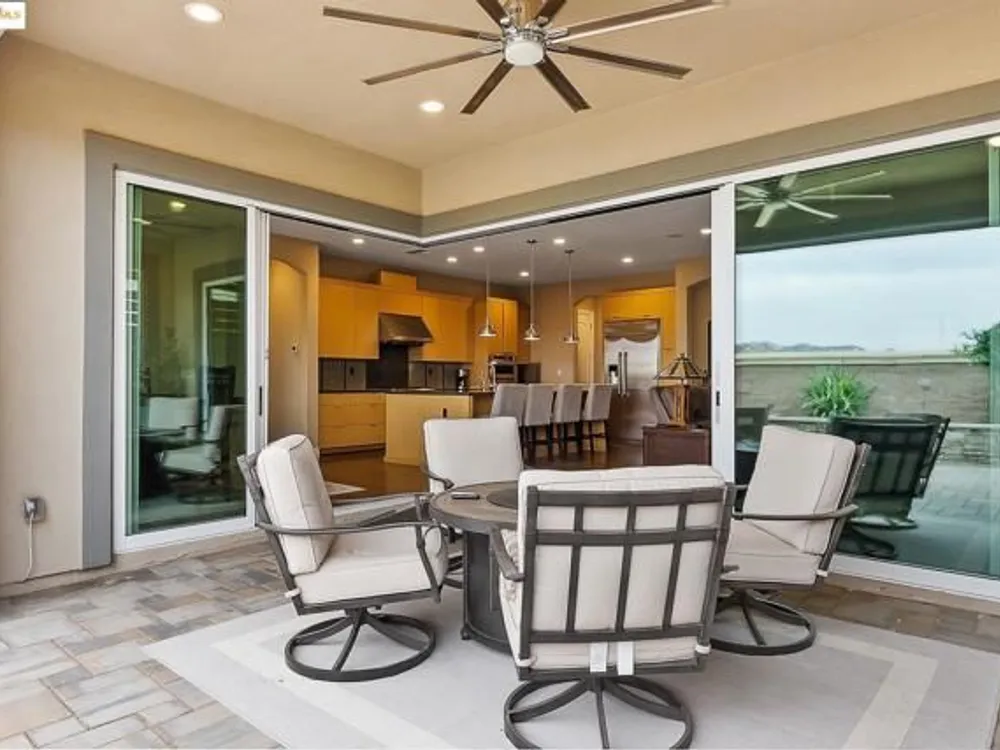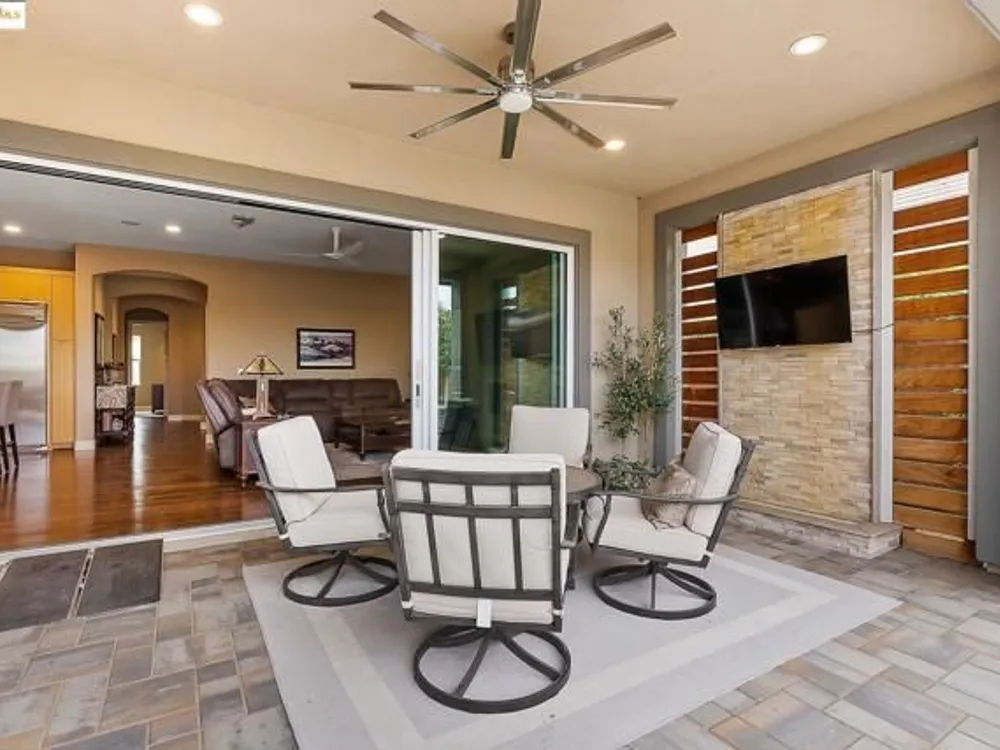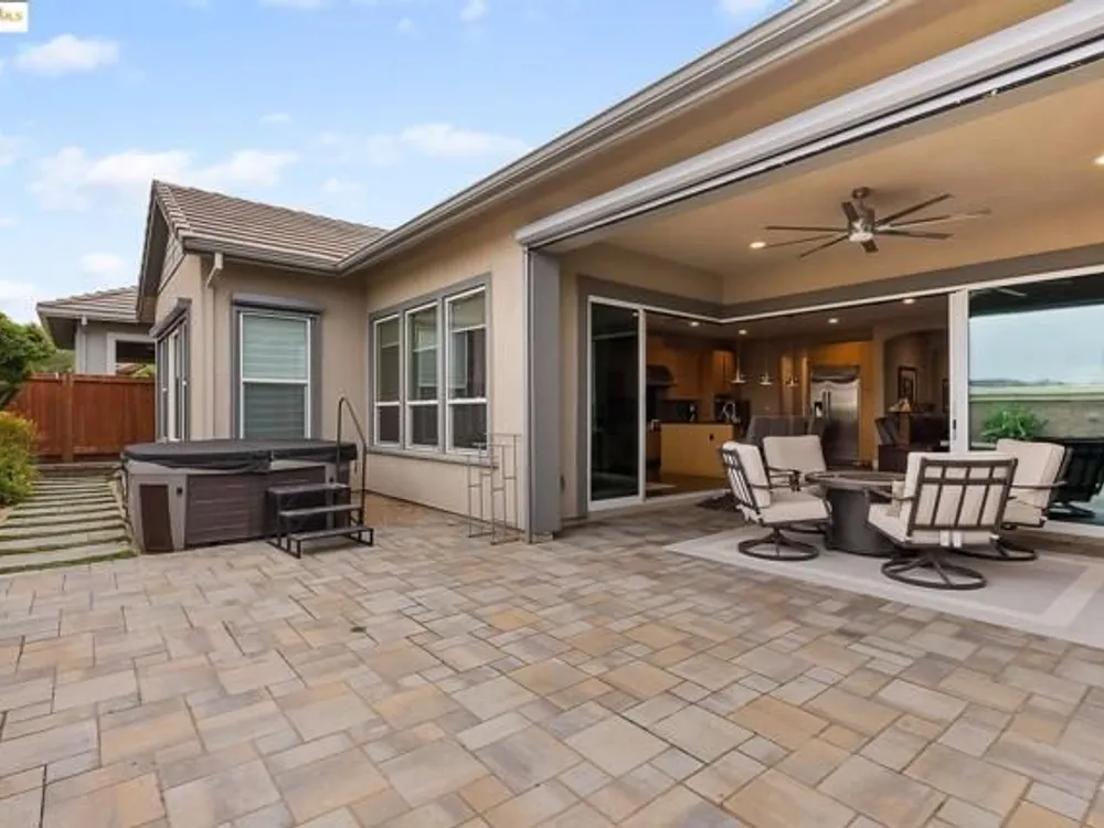 Stunning fully updated single-story home in Trilogy, offering 2 bedrooms, 2.5 baths, plus a private office across 2,000+ sq. ft. of stylish living. Designed for comfort and function, this home features stacking sliding doors, dual walk-in closets in the primary suite, and automatic remote-control window coverings. The chef’s kitchen impresses with Monogram luxury appliances, built-in refrigerator, Blanco granite composite sink, Cambria quartz countertops, dual pantries, large island with pendant lighting, upgraded tall cabinets, and full backsplash. The primary suite offers spa-inspired finishes including heated bathroom floors, frameless shower entry, and gorgeous tile. Additional highlights include a mahogany front door, cozy gas fireplace, Haiku smart ceiling fans with temp sensors, tandem 3-car garage with epoxy flooring and storage shelving, and washer/dryer included. Relax or entertain in the California Room with retractable electric screens. Trilogy HOA provides world-class amenities, all surrounded by vineyards, and located near shopping and John Muir medical facilities. A true turnkey gem!