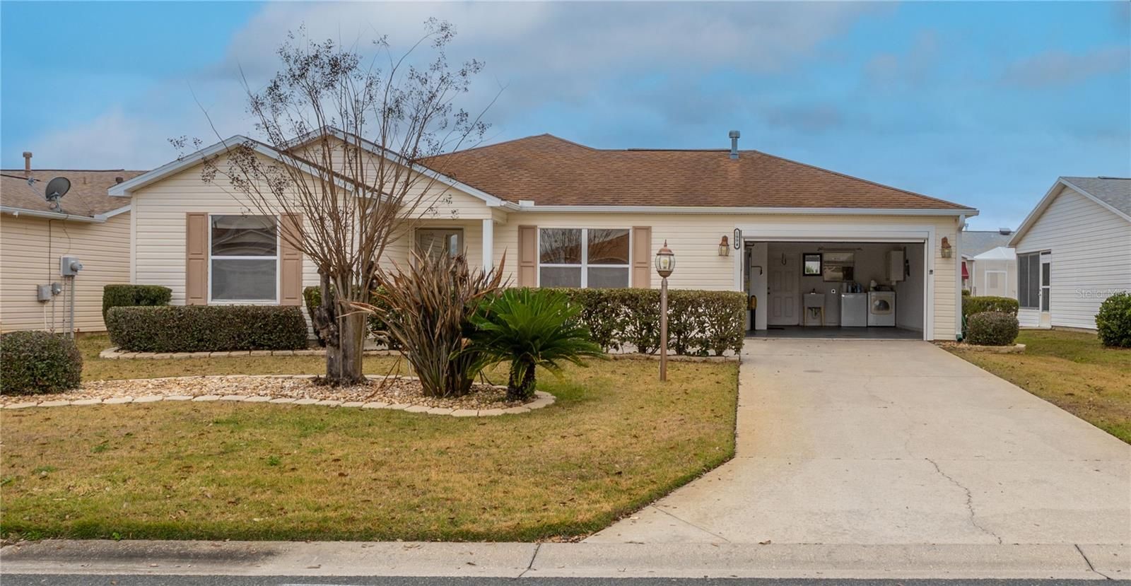 Welcome to the lifestyle you've been waiting for in The Villages, Central Florida's premier active adult community! Located in the sought-after Village of Liberty Park, this beautifully maintained 2 bedroom, 2 bath home offers 1,142 sq ft of comfortable living space with 1,808 total sq ft under roof. Built in 2005 and situated on a .129-acre lot, this home features a spacious open kitchen perfect for entertaining, tiled flooring throughout the main living areas and kitchen, and luxury vinyl plank flooring in both bedrooms for warmth and durability. Enjoy year-round relaxation in the large enclosed lanai under heat and air, highlighted by attractive terrazzo-style tile - an ideal flex space for a sitting room, hobby area, or additional entertaining space. The 2-car garage includes an electric roll-down screen, allowing for airflow and added comfort while working or relaxing in the garage. Living in Liberty Park means enjoying the unmatched amenities that make The Villages famous golf cart accessibility, resort-style pools, clubhouses, fitness centers, recreation centers, and endless social opportunities. Conveniently located near shopping, restaurants, entertainment, medical offices, and hospitals, everything you need is just minutes away. Experience the perfect blend of comfort, convenience, and vibrant community living!