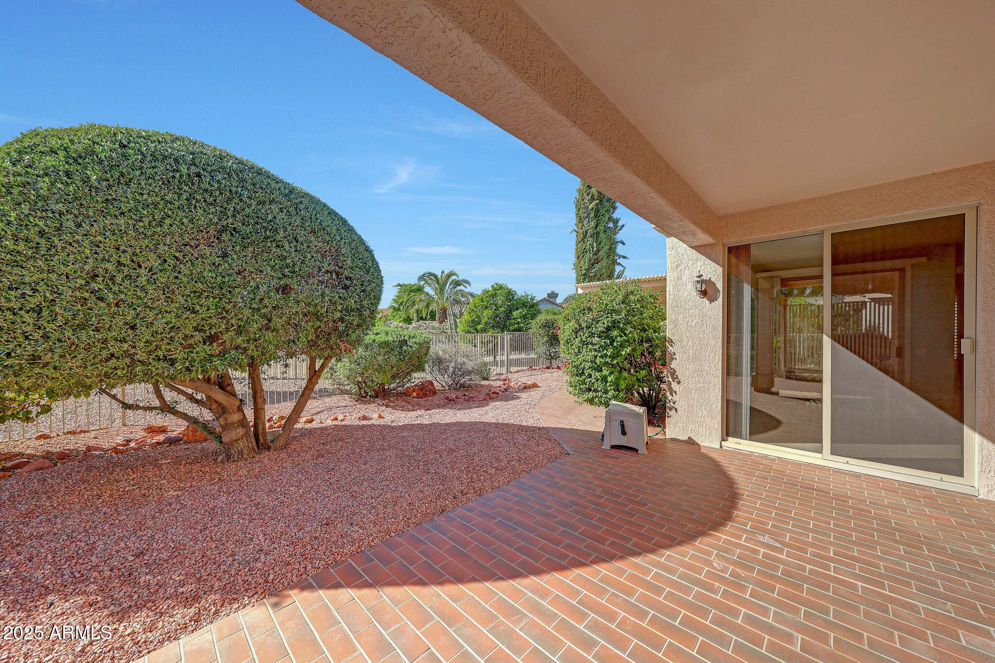Paid Solar & Updated Kitchen This Jasmine has a lot to offer. Faux Stone Front Accents with private courtyard. Lush landscaping front & back with a fenced in yard. Paid Solar, New Trane HVAC System installed in 2023 with a ten year warranty that transfers to buyer. The Kitchen has been Updated 2021 to include Professionally Painted Cabinets, Quartz Counters Tops, New SS Vent Hood, Newer SS Appliances and Electric Cook Top. The Main Living Area has Cherry LP Flooring including the large Den with French Doors. Shutters on most windows except the Pation Doors. Family Room has tiled flooring and Gas Fireplace. There is plenty of opportunity for you to use your designing talents. Landscape watering system has been updated. Garage Cabients and Golf Cart bump out!