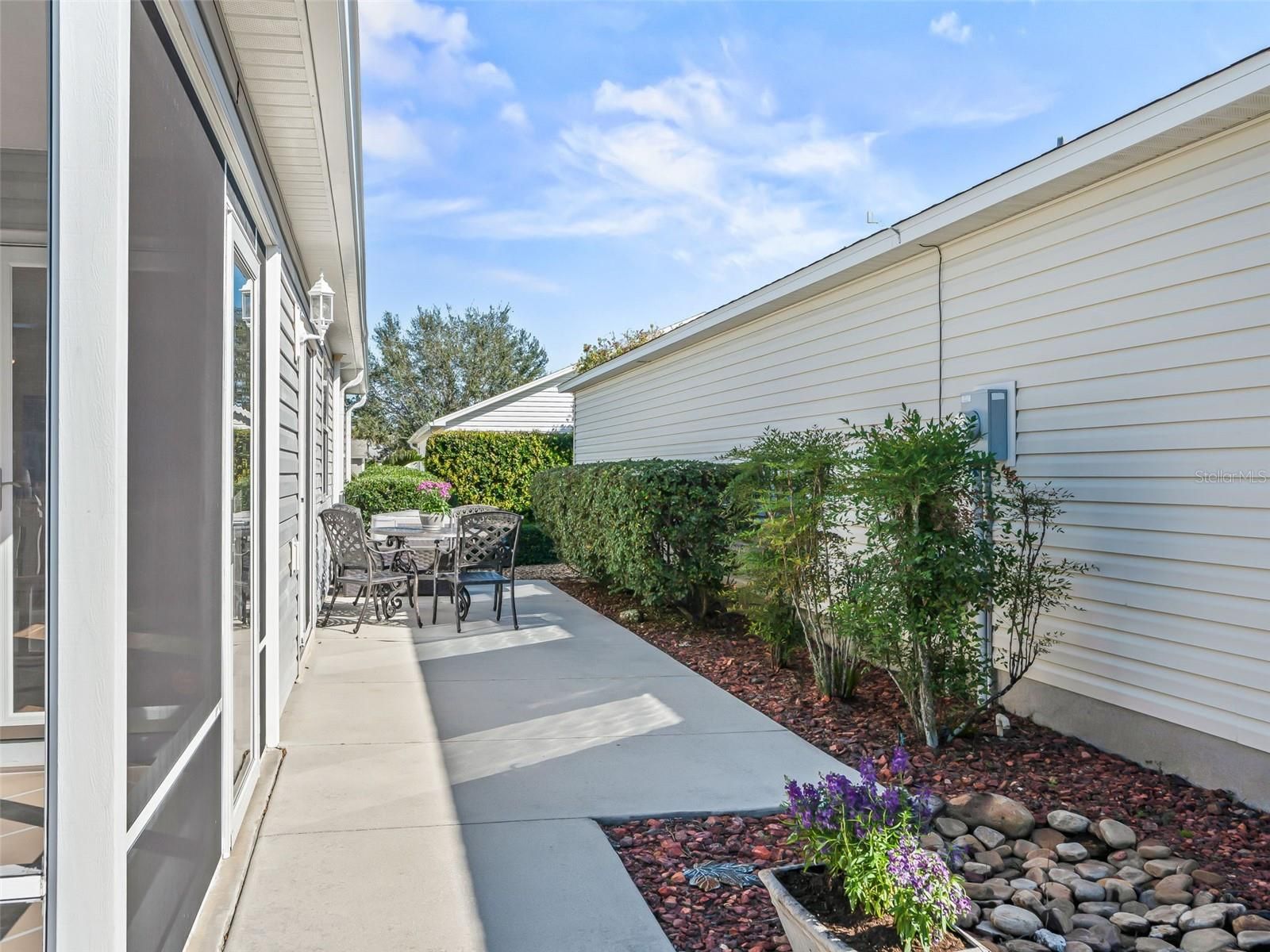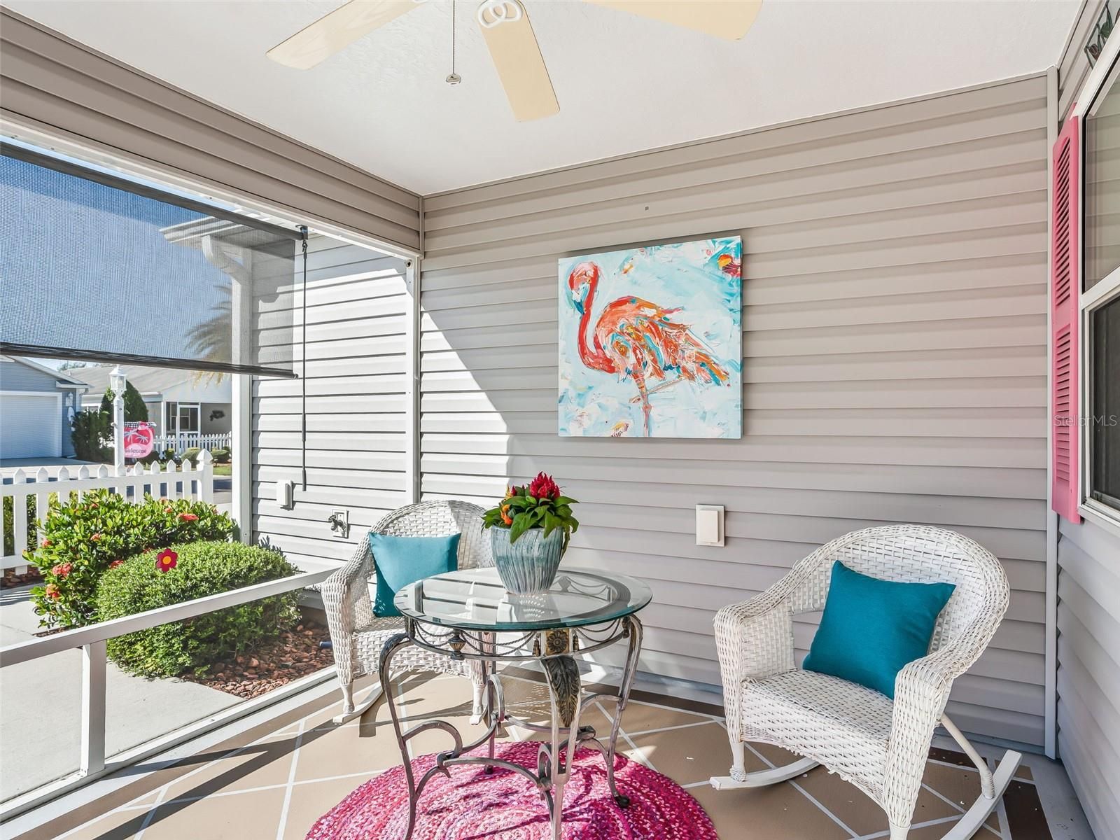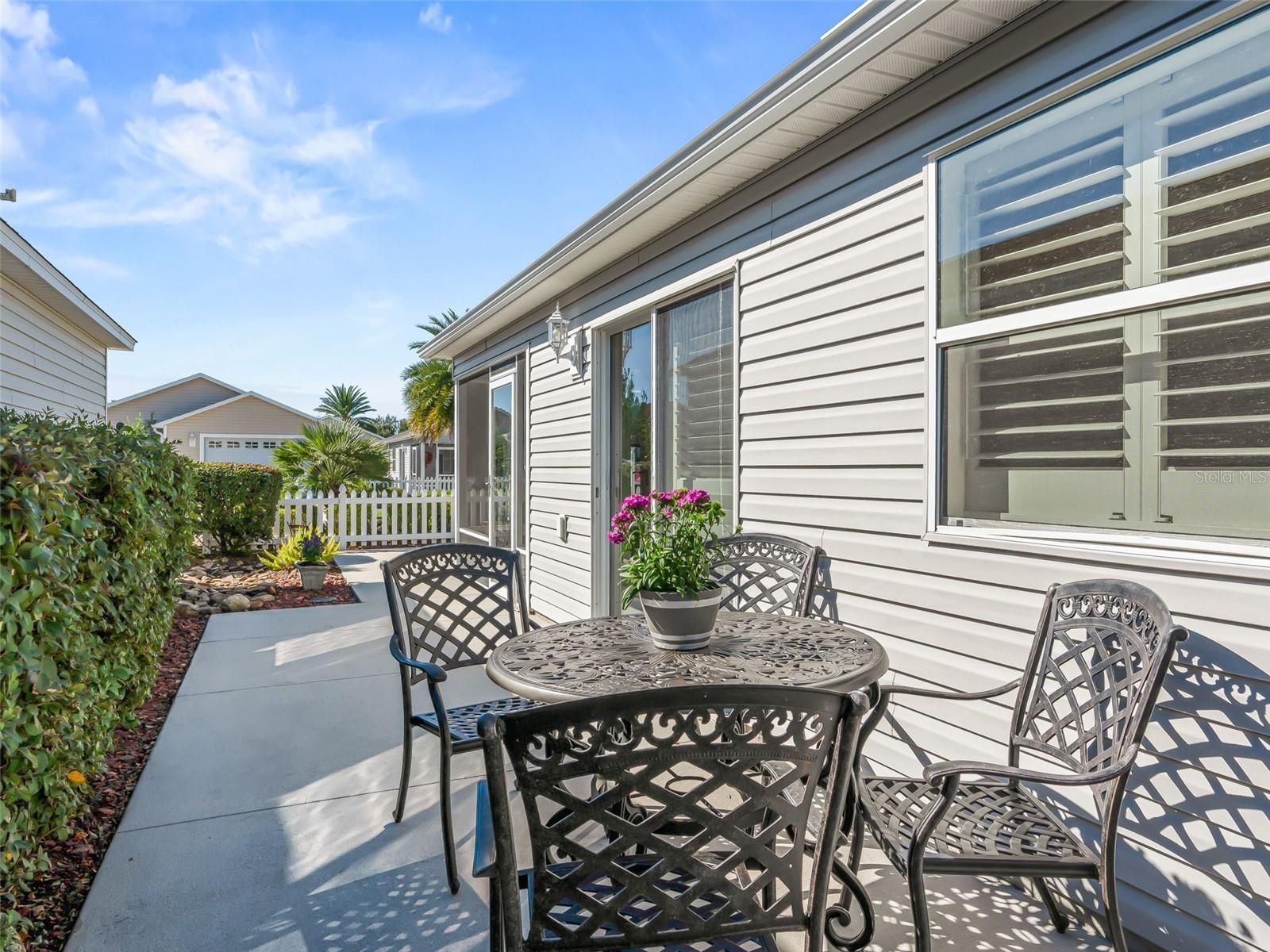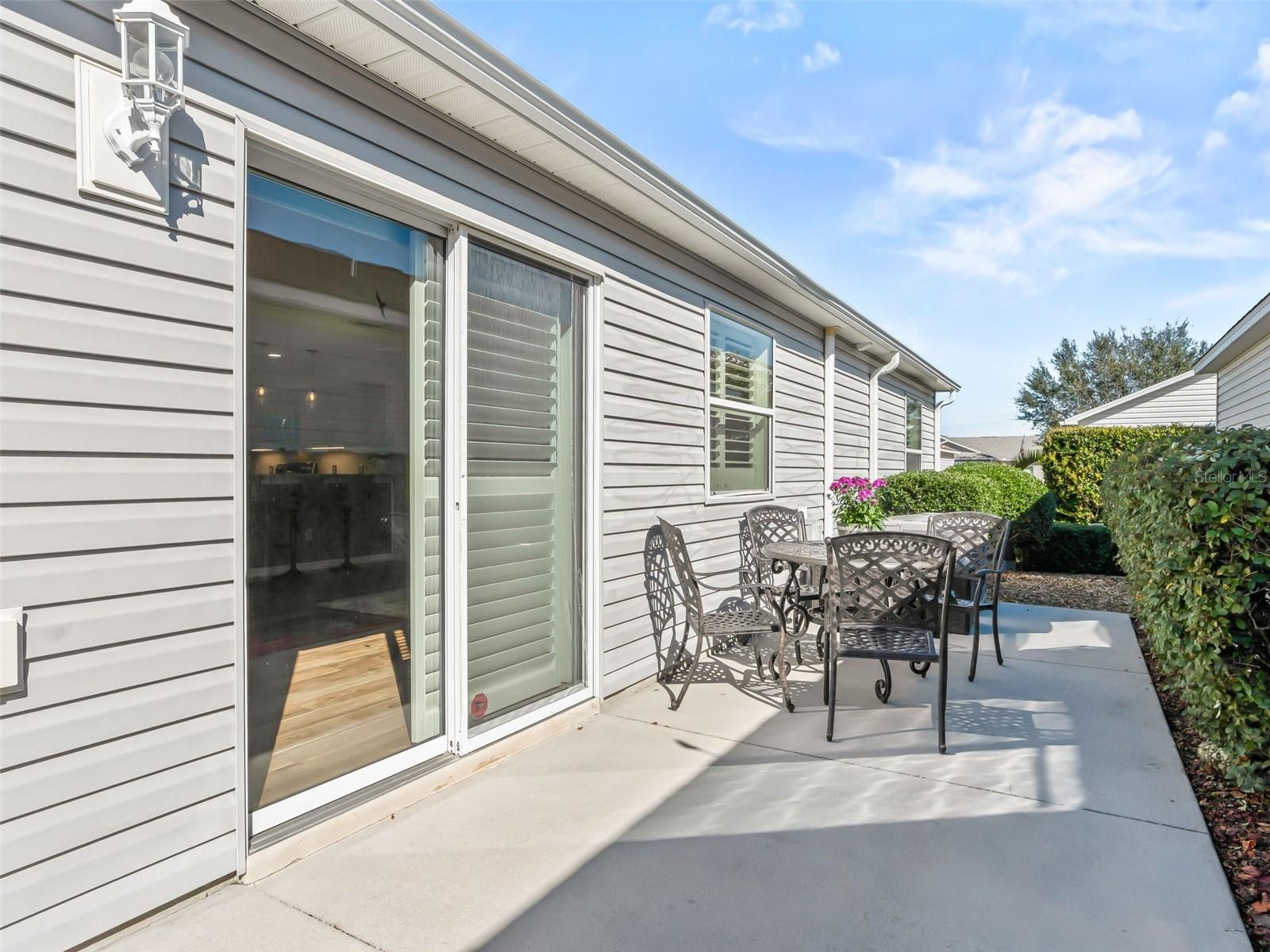 *EXCEPTIONAL* Absolutely beautiful villa in The Villages of St. James – Sawgrass Villas! PRIME LOCATION! Comes PARTIALLY FURNISHED with a TRANSFERABLE HOME WARRANTY. NO BOND & NO LAWN MAINTENANCE! Don’t wait to buy this gorgeous villa — it won’t last long! Meticulously maintained 2/2 COLONY PATIO VILLA conveniently located between Lake Sumter Landing & Brownwood Paddock Squares, close to all the shopping and dining you could ever imagine! MOVE-IN READY with GRANITE counters in the kitchen and both bathrooms, PLANTATION SHUTTERS, and NEWER APPLIANCES — the range is a cook’s dream with DOUBLE OVENS & AIR FRYER! FRESHLY PAINTED WALLS AND CEILINGS in a NEUTRAL COLOR PALETTE, making the home feel BRIGHT AND INVITING with an abundance of NATURAL LIGHT! UPGRADED LIGHTING plus a SOLAR TUBE adds even more light throughout. OPEN FLOOR PLAN with LUXURY VINYL FLOORING & TILE – NO CARPET! The 1½-CAR GARAGE holds both your car and golf cart. Enjoy your morning coffee on the SCREENED PORCH or SOUTH-FACING PATIO. COME SEE THIS HOME TODAY, COME FALL IN LOVE!!