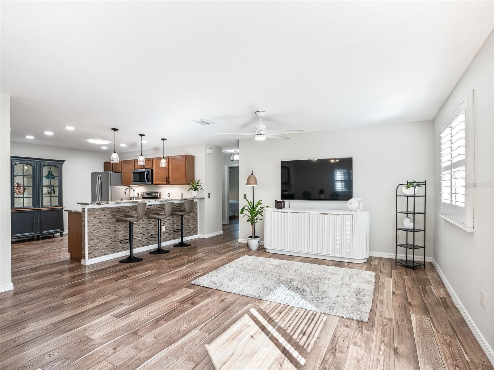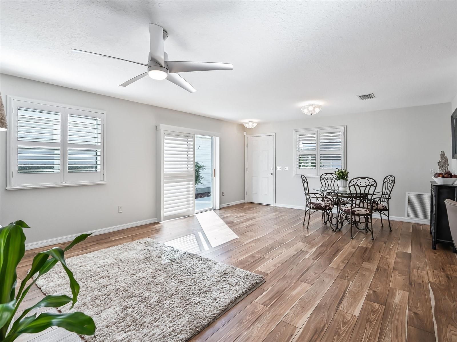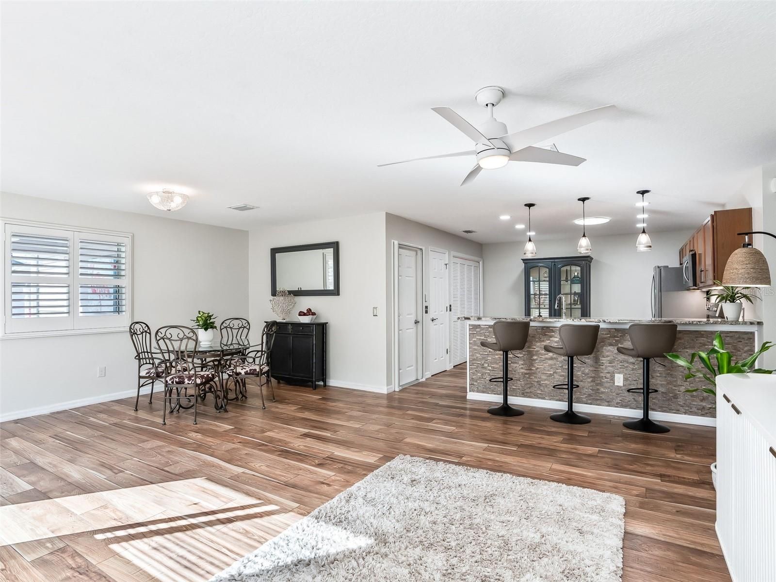 - Ceiling Fan(s), Eat-in Kitchen, Open Floorplan, Main Level Primary, Stone Counters, Thermostat, Walk-In Closet(s), Window Treatments
