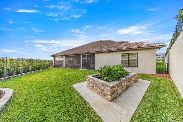 Looking for a NEW home without the hassle of building it? The owners did all the work for you. This is a spectacular custom built, 4/3.5, split ranch open floor plan. This home sits inside the double-gated community of Hall’s Reserve of Terra Vista This home is ready to move into. The on-site amenities in this community are amazing; 3, 18-hole golf courses, two fitness centers including the newest 55,000 sq. ft. center within a 5-minute walk and an entirely new sports complex under construction 6-minutes away with 24 pickle ball courts and outdoor recreation complex under construction), indoor & outdoor pools, and numerous clubs and activities for residents. This Hudson-style 2025 home is less than 6-months old.an outdoor kitchen, plumbed for natural gas/ready to go) in addition to many incremental upgrades added by Owners. Ultra-premium custom trim and finish work throughout the home with upgraded ceilings throughout. Gourmet kitchen is equipped with two split French–door ovens (w/ convection and air fryer features), warming drawer, a 6-burner gas range top, double wide refrigerator, dishwasher and water softener. Granite countertops everywhere throughout the home including the garage sink vanity along with custom cabinetry throughout the home. Entry door is a double-wide, elegant, custom, American-made, wrought iron-door. Home’s trim package includes solid core doors throughout, upgraded crown molding in every room with a stunning coffered ceiling in the Great Room complemented with a stone fireplace floor to ceiling with a built-in fireplace insert in the Great Room living area for chilly winter evenings. Separate formal Dining Room, with beautifully trimmed wainscot with custom built buffet and refrigerated wine cooler. Home comes with a very spacious, high-end laundry room that is loaded with custom cabinetry, travertine flooring/backsplash, granite countertops, farmhouse porcelain sink and built-in ironing board. The home is finished with plantation shutters throughout the home. Oversized three-car garage plus a golf-cart bay with an extended length bay for boat storage or larger vehicle as well. Owners added a storage area (or workshop) at ground level for space additive to the large 3.5-car garage with stained and special coating for aesthetics and traction. Home’s driveway and lanai built with beautifully adorned pavers and a spacious wide-entry complementing the home’s elegant appeal. Owners have invested in a professional, heavy landscaping package for immediate impact rounding out a stunning curb presentation of the home. you will have a spacious garage with ground level storage in this home. Located 6-minutes from convenient shopping and restaurants and 6-minutes from the recently approved Tampa General Hospital construction and 8-minutes from the new on-ramp for the Suncoast Parkway direct to the Tampa area and the Tampa airport. This is a one-of-a-kind custom home built with too many upgrades to count and a must see for planned retirement and resort-style living. ...