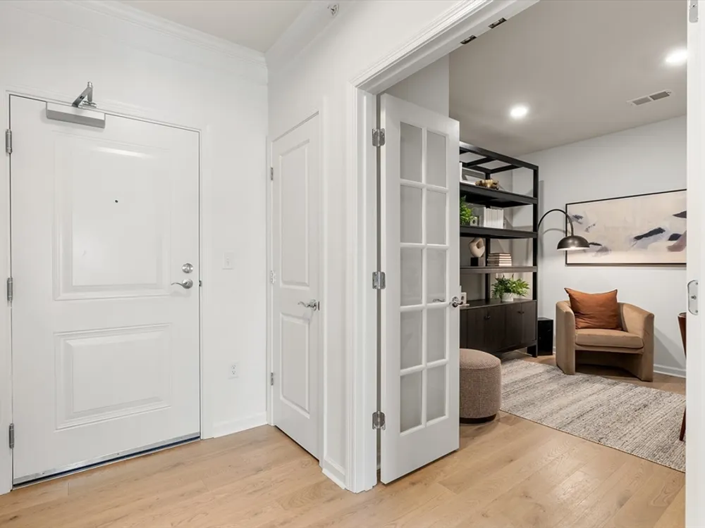 Ready for fall 2025 move-in, the brand-new Jameson offers low-maintenance convenience, an open, light-filled layout and deeded garage parking space. This one-bedroom, one-bath home features a flexible room you can personalize, plus a kitchen with abundant cabinet space, stainless steel appliances, a large island, and gleaming hardwood floors. Unwind in the bright gathering room or step out to your private east-facing balcony. The owner’s suite includes a walk-in closet and spa-inspired bath with a walk-in shower. A laundry room and coat closet provide everyday ease. Enjoy an 11,500 SF clubhouse, heated pool, pickleball and bocce courts, and scenic walking trails around Lake Chauncy.