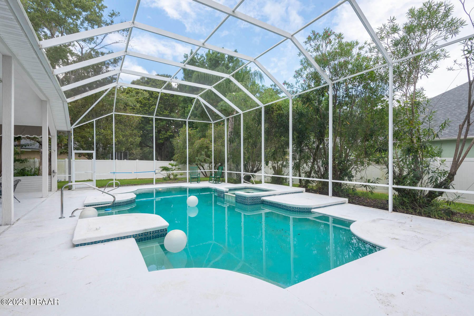Welcome to this stunning 4 bedroom, 3.5 bathroom home with a 3 car garage, nestled on almost half acre on a cul-de-sac in the highly sought after gated community of Breakaway Trails. The lot backs up to the private & protected nature preserve! Breathtaking view from the family, living, master bedroom of your outdoor oasis. Enjoy cookouts, family gatherings or sun bathing to the sounds of the relaxing waterfall from the in ground spa and oversized screened pool. Imagine sipping your morning coffee or favorite beverage by the built in fire pit overlooking the pool and landscaped grounds under the oversized covered lanai. This stunning residence features: Bright, open split floor plan with high ceilings, huge entertaining kitchen with custom built in pantry. The gourmet kitchen comes granite countertops, two ovens, wine fridge, extra mini fridge, huge kitchen island with wet bar perfect for holidays and family gatherings. The oversized glass sliders, windows and transoms offe panoramic views from the living, family & owners suite. More bonus features: California closets, Plantation Shutters, Hunter Douglas Blinds, two water heaters, two acs, spacious attic, blown insulation, concrete construction, hip roof (insurance savings) garden tub, vanity area, double sinks, separate huge walk in tile shower, 3 car garage, built ins in garage, oversized laundry with sink & cabinets, 2019 roof, solar. Breakaway Trails has a low HOA fees & offers 2 guard gates, tennis courts, pickleball courts, playground, basketball courts, ball field, club room, community pool, sidewalks and gorgeous landscaping. Close to I 95, shopping, churches, restaurants, hospitals, grocery stores and less than 15 drive to the beach. Don't miss this rare chance to own a solid built dream home in Ormond Beach. What are you waiting for?