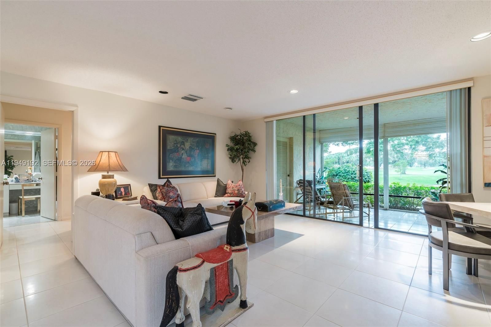 Beautiful, bright first-floor corner unit with an open floor plan and panoramic lake and golf course views from a huge screened-in lanai. Lovingly maintained by its original owner — Mrs. Clean lived here — this home is in impeccable condition for its age, reflecting pride of ownership throughout. Offered as-is at an exceptional value, this residence also presents a rare opportunity to update and customize finishes to your taste, transforming a true blank canvas into your own personal masterpiece. The layout features 2 bedrooms, 2 baths, plus a den/convertible 3rd bedroom, with sweeping vistas from nearly every room. The screened-in lanai is the perfect setting for morning coffee, sunset cocktails, or al fresco dining, all while enjoying tranquil water and fairway views. Additional highlights include a large private side patio ideal for grilling and outdoor entertaining, an eat-in kitchen, and convenient access to the nearby community pool and clubhouse. Located in Hunters Run Country Club, a mandatory buy-in, amenities-rich community offering three championship 18-hole golf courses, tennis and pickleball courts, multiple dining venues, resort-style pools, a fitness center, spa & salon, and a vibrant social calendar. Priced for immediate sale — the best-priced unit in Hunters Run. Live the ultimate country club lifestyle. Schedule your private showing today — this immaculate home will not last.