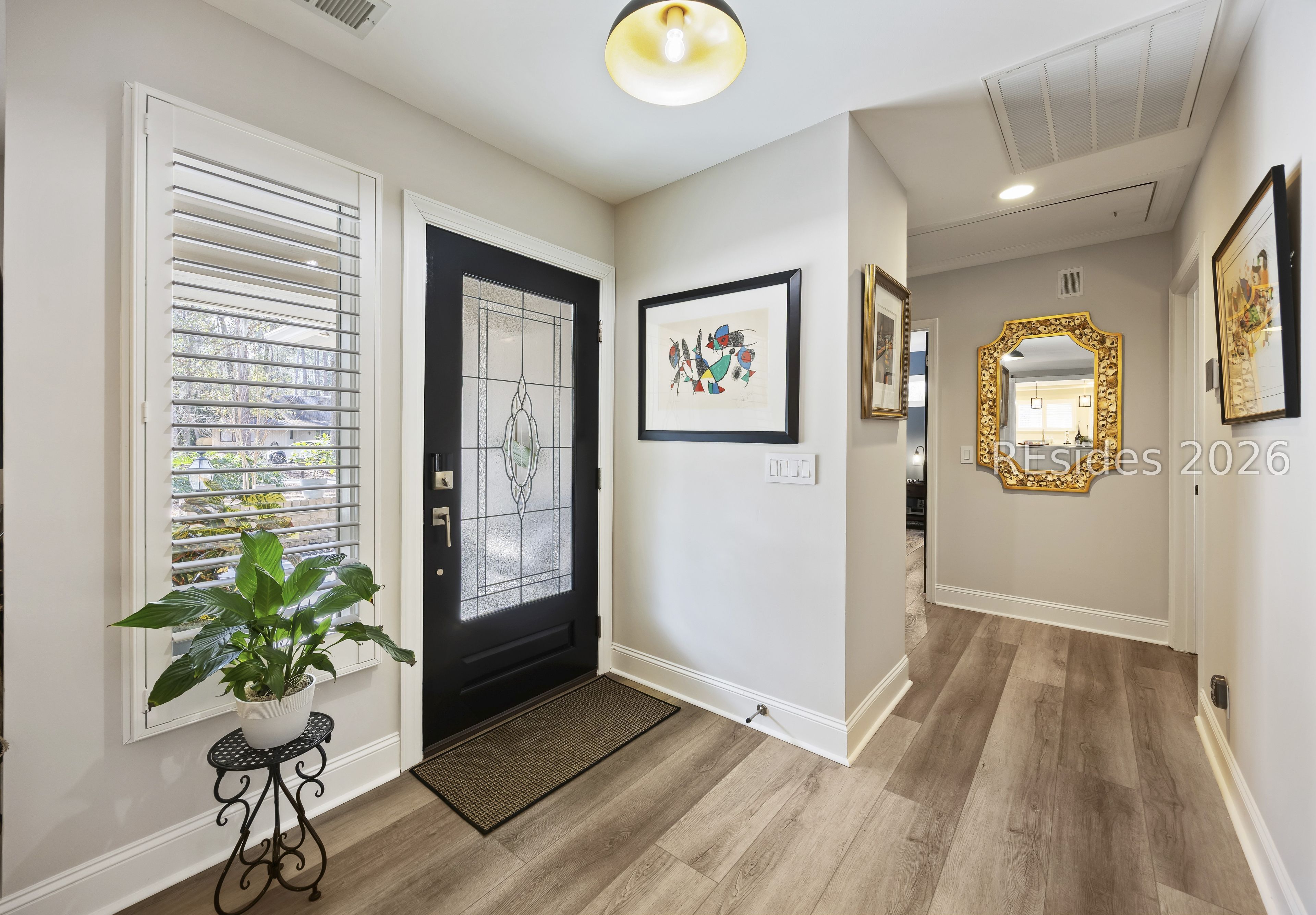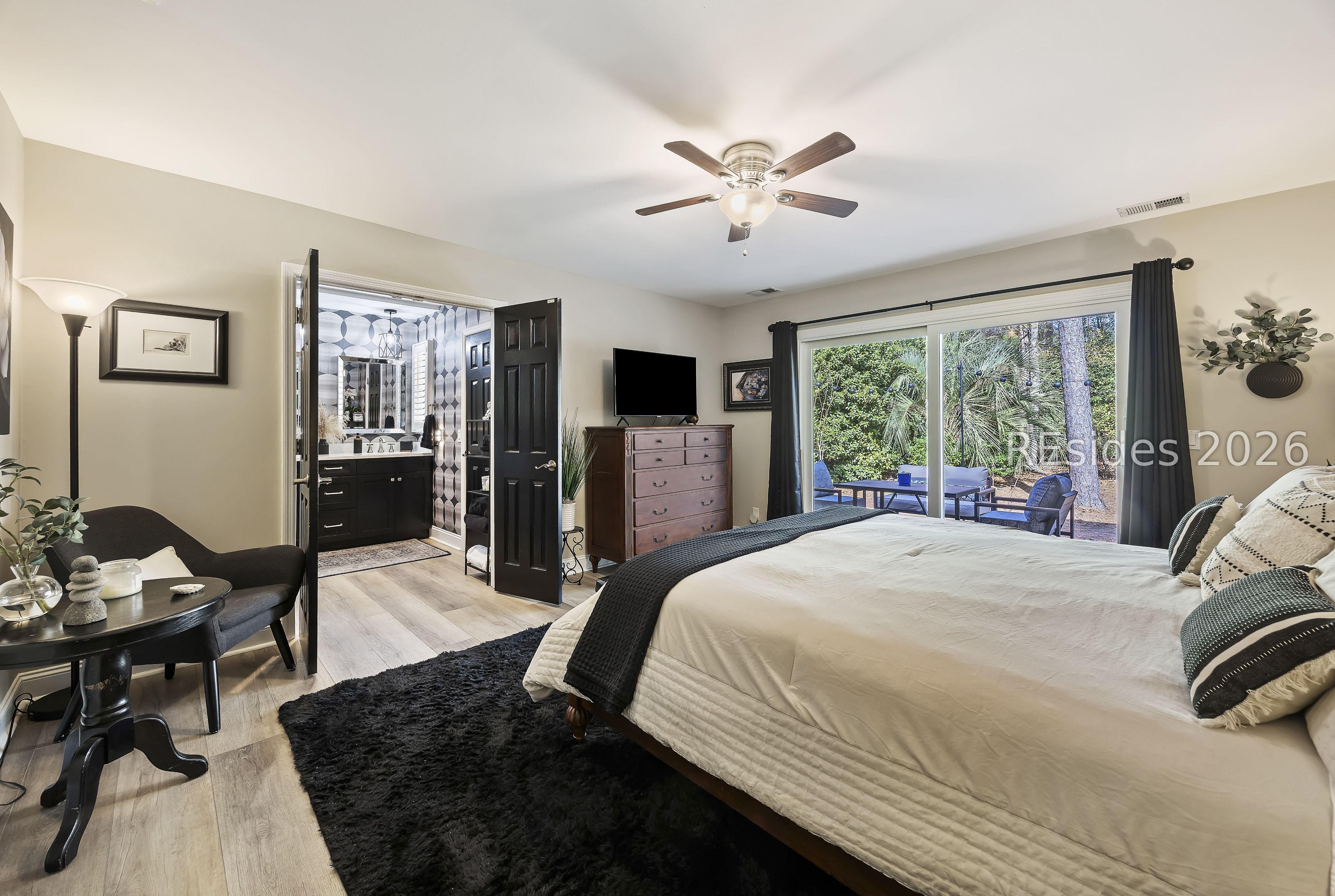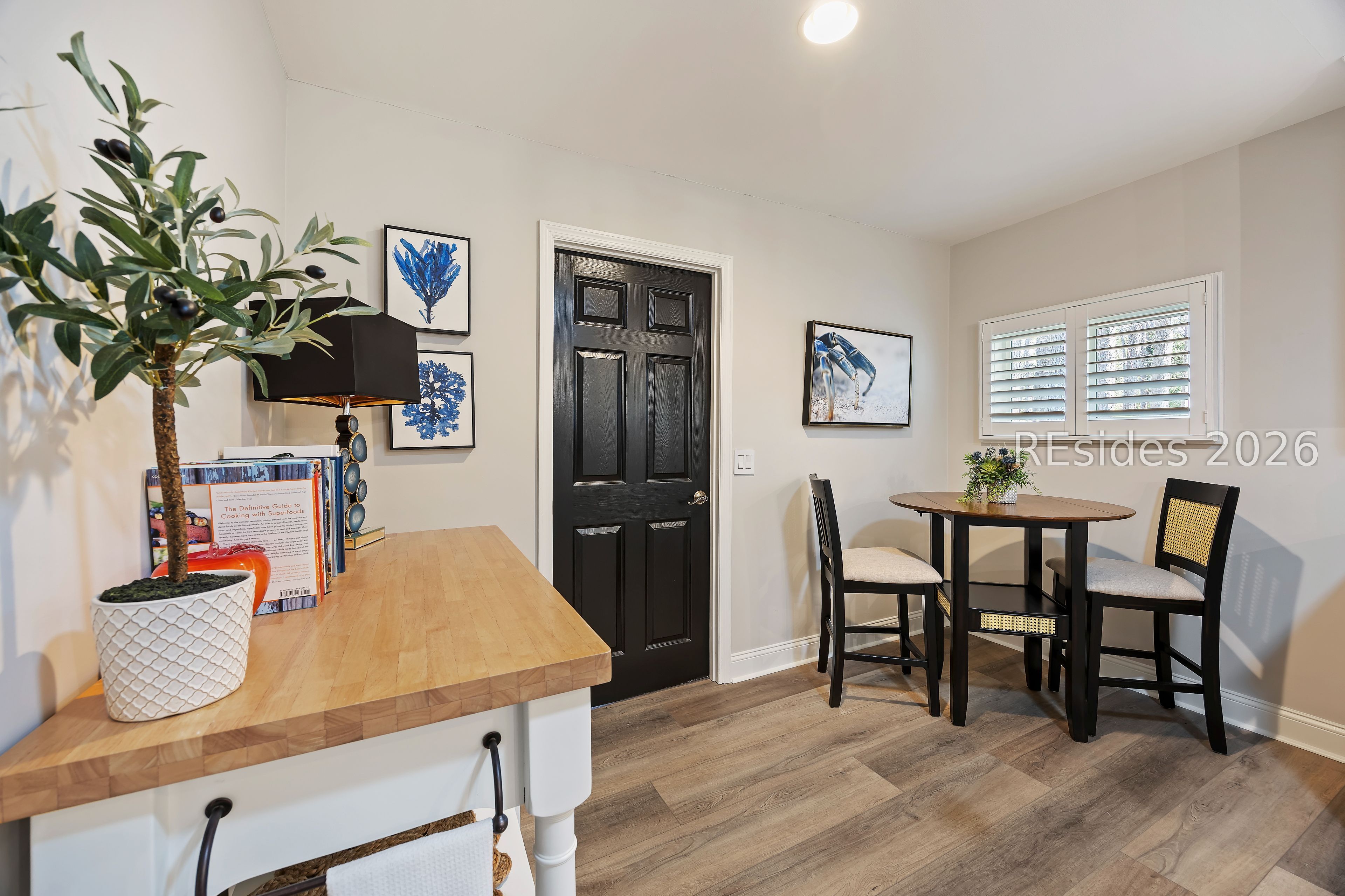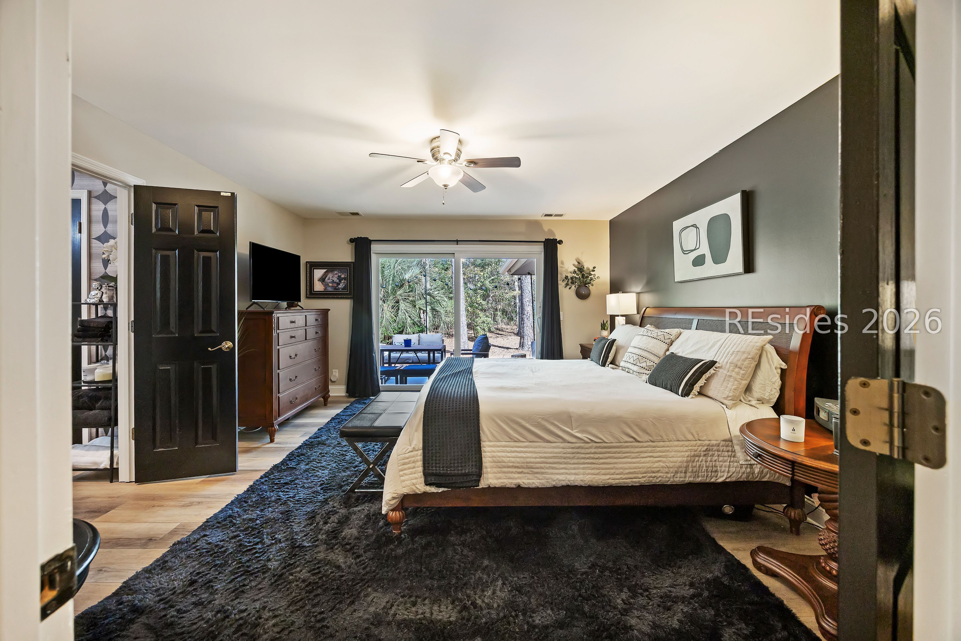 Welcome to 2 Fish Hawk! This eclectic, mid-century coastal cottage offers single-level living on an oversized lot with a peaceful wooded view. As you enter the home through the quaint front courtyard, the Mahogany front door opens to the spacious living area with cathedral ceilings and a wood burning fireplace. The updated kitchen features quartz countertops, newer cabinets, an extended island, coffee/wine bar and new appliances (refrigerator, convection oven/induction range and dishwasher). The designer inspired primary suite boasts a luxurious tiled shower, walk-in closet and a slider door that opens to its own private patio. The adjacent guest bedroom is spacious and opens to the updated 2nd bathroom. The 3rd bedroom (currently used as an office) is off of the kitchen with a private door to the large screened porch that looks out over the private natural setting. The .446 acre lot provides ample room for expansion and plenty of space for a pool. Additional recent upgrades include a 3-ton variable speed HVAC system, new 200 amp electrical panel, new lighting fixtures, solar tubes, interior paint, plantation shutters, a whole house water purifier/softener, and epoxy flooring in the oversized 1-car garage. Centrally located in amenity rich Hilton Head Plantation, within close proximity to both Spring Lake and Dolphin Head, this beautiful home is a "box checker", indeed. Most furnishings are available/negotiable. Hurry, don't wait on this one.