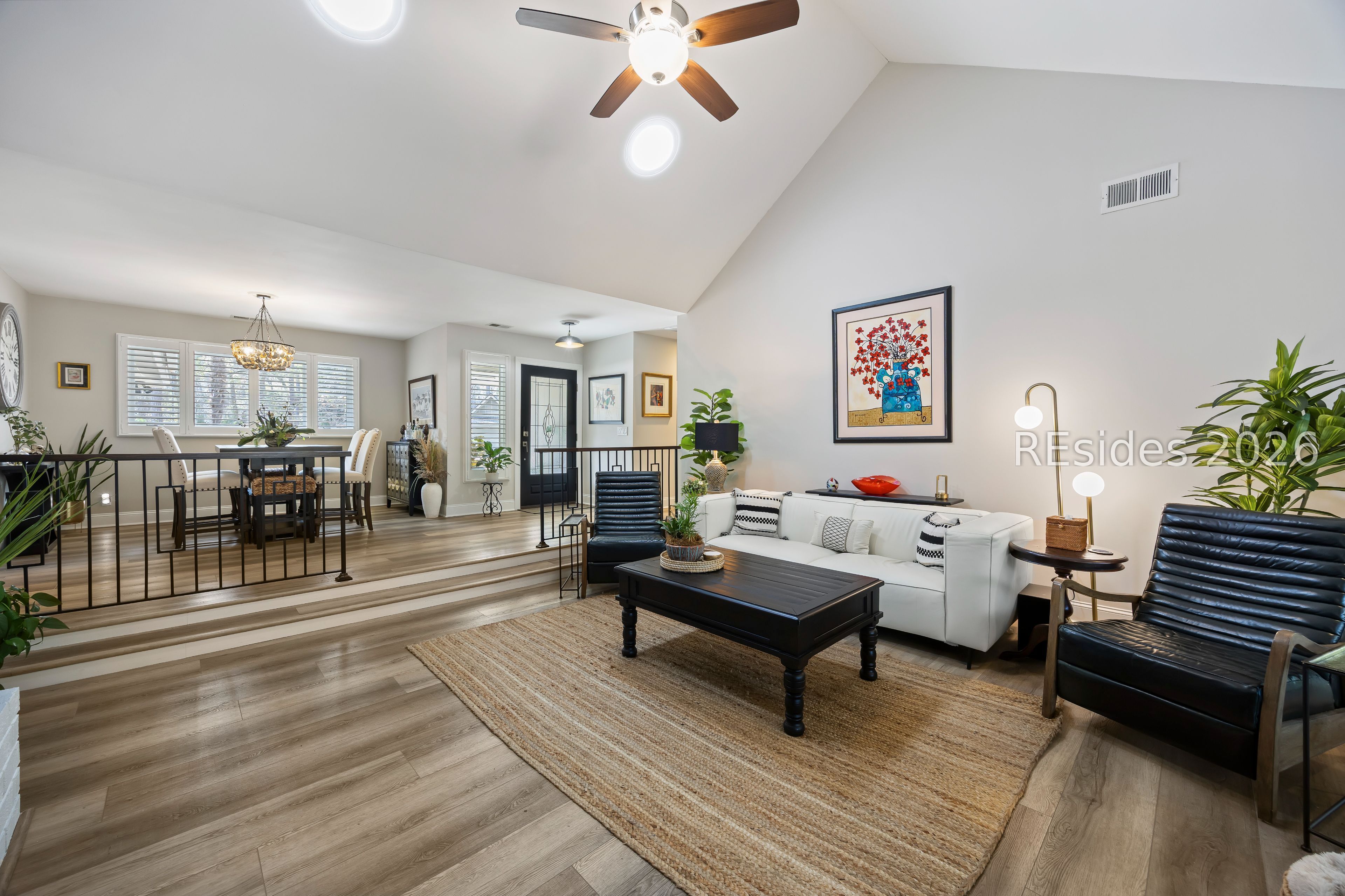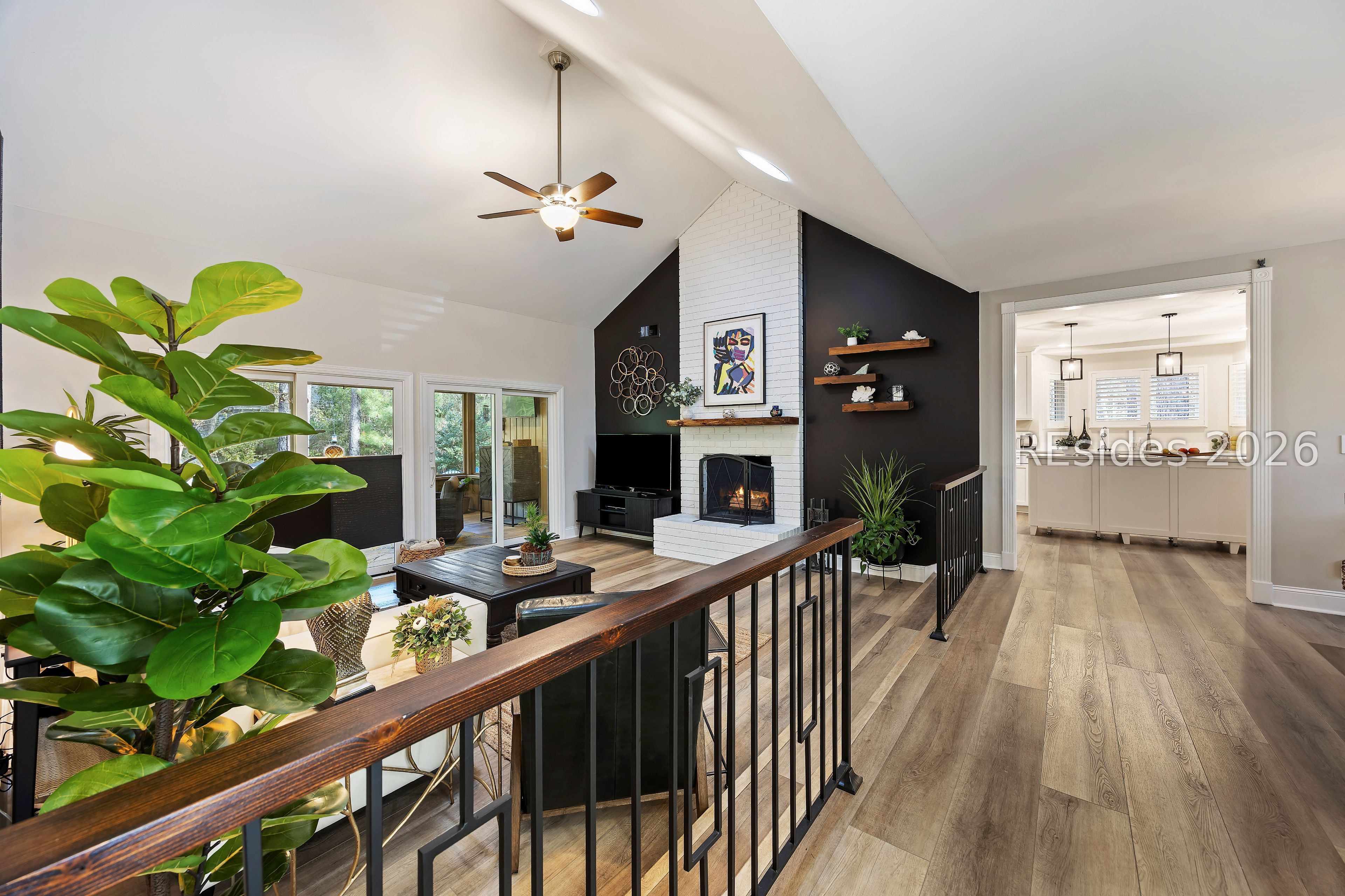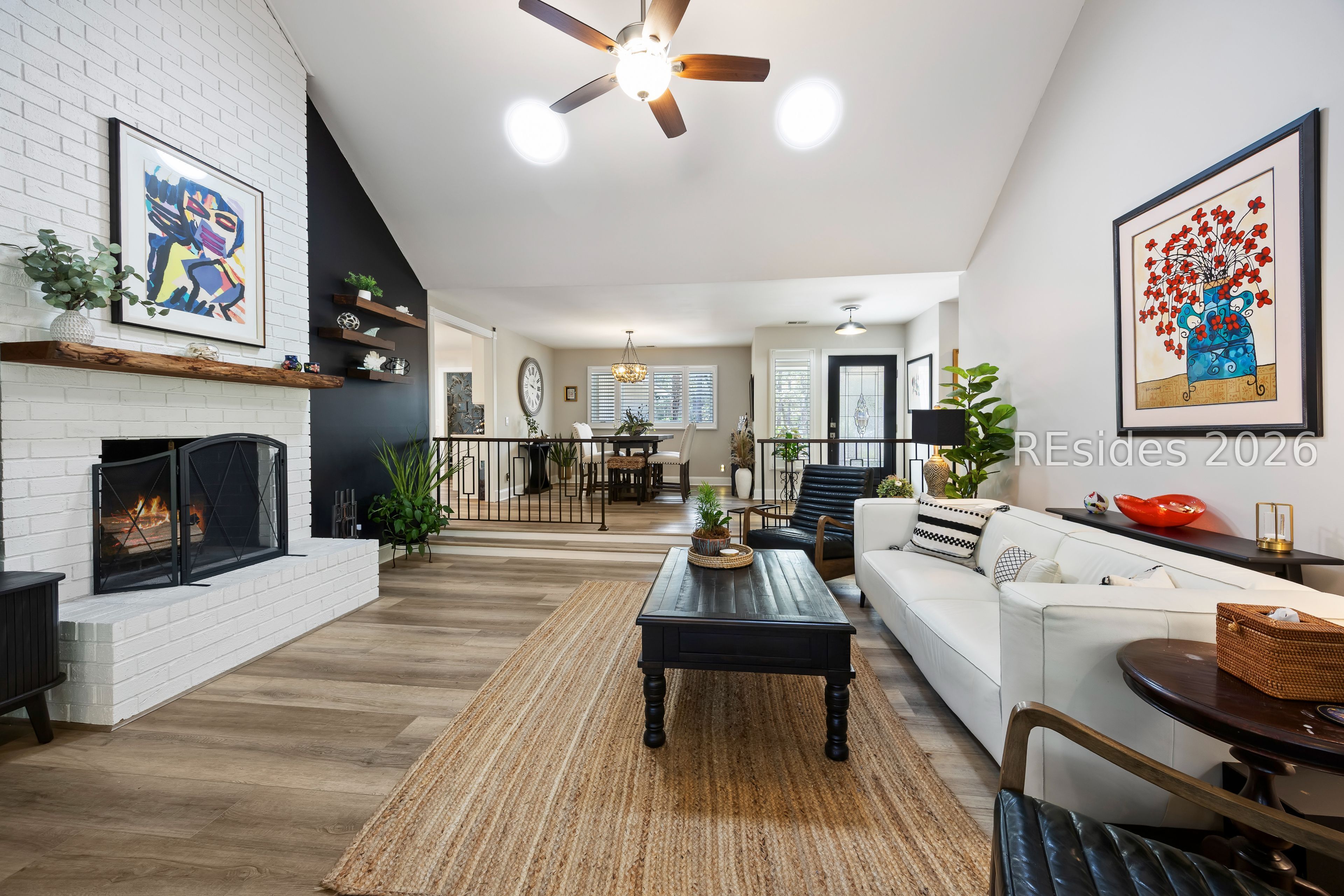 - Attic Access, Built-in Features, Ceiling Fan(s), Cathedral Ceiling(s), Fireplace, High Ceilings, Main Level Primary, New Paint, Pull Down Attic Stairs, Smooth Ceilings, Sunken Living Room, Vaulted Ceiling(s), Window Treatments, Solar Tube(s)