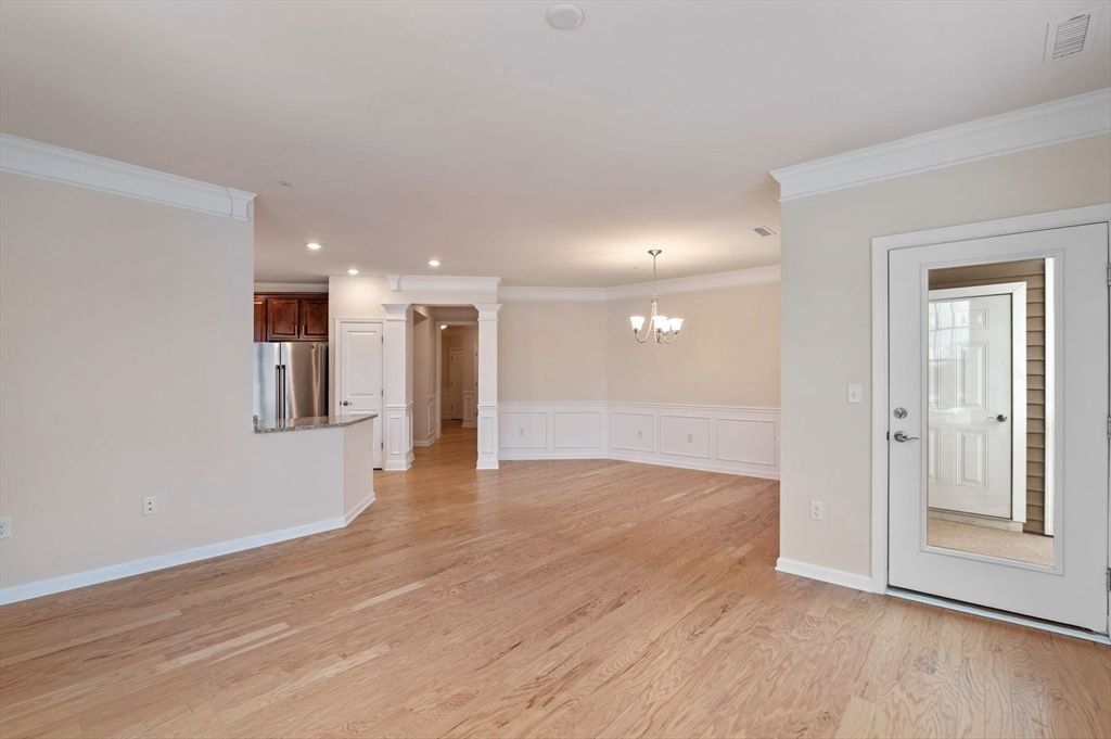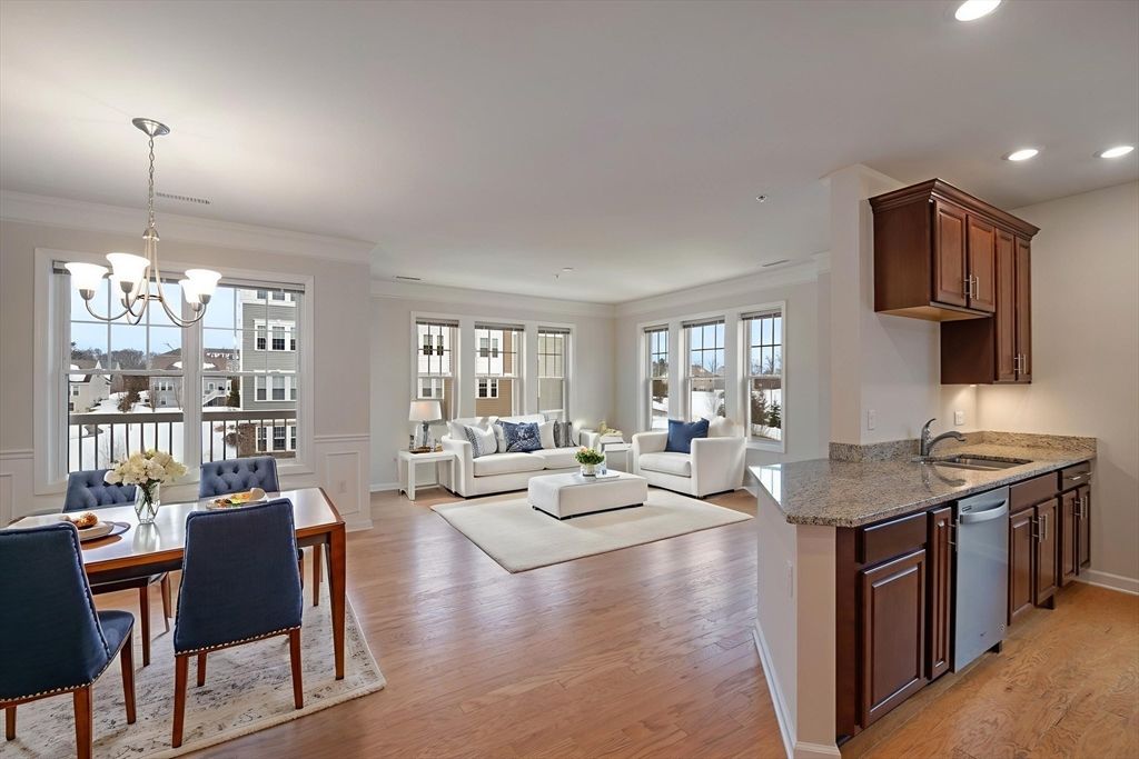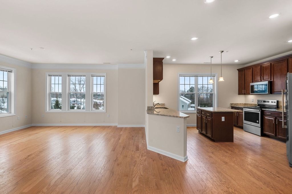 Welcome to Riverside Woods, Andover's premier 62+ community offering comfort, convenience, and low maintenance living. This beautifully maintained two bedroom, two bath residence has been freshly painted throughout and is truly move-in ready. The open concept kitchen features granite countertops, stainless steel appliances, and a spacious island that flows seamlessly into the sun filled living and dining areas. Enjoy peaceful mornings or evenings on your private balcony. The primary suite offers a walk-in closet and private bath, complemented by a well proportioned second bedroom and full guest bath. Additional highlights include central air, natural gas heat, in-unit laundry, elevator access, clubhouse, fitness center, and walking trails all just minutes to shopping, dining, and major routes.