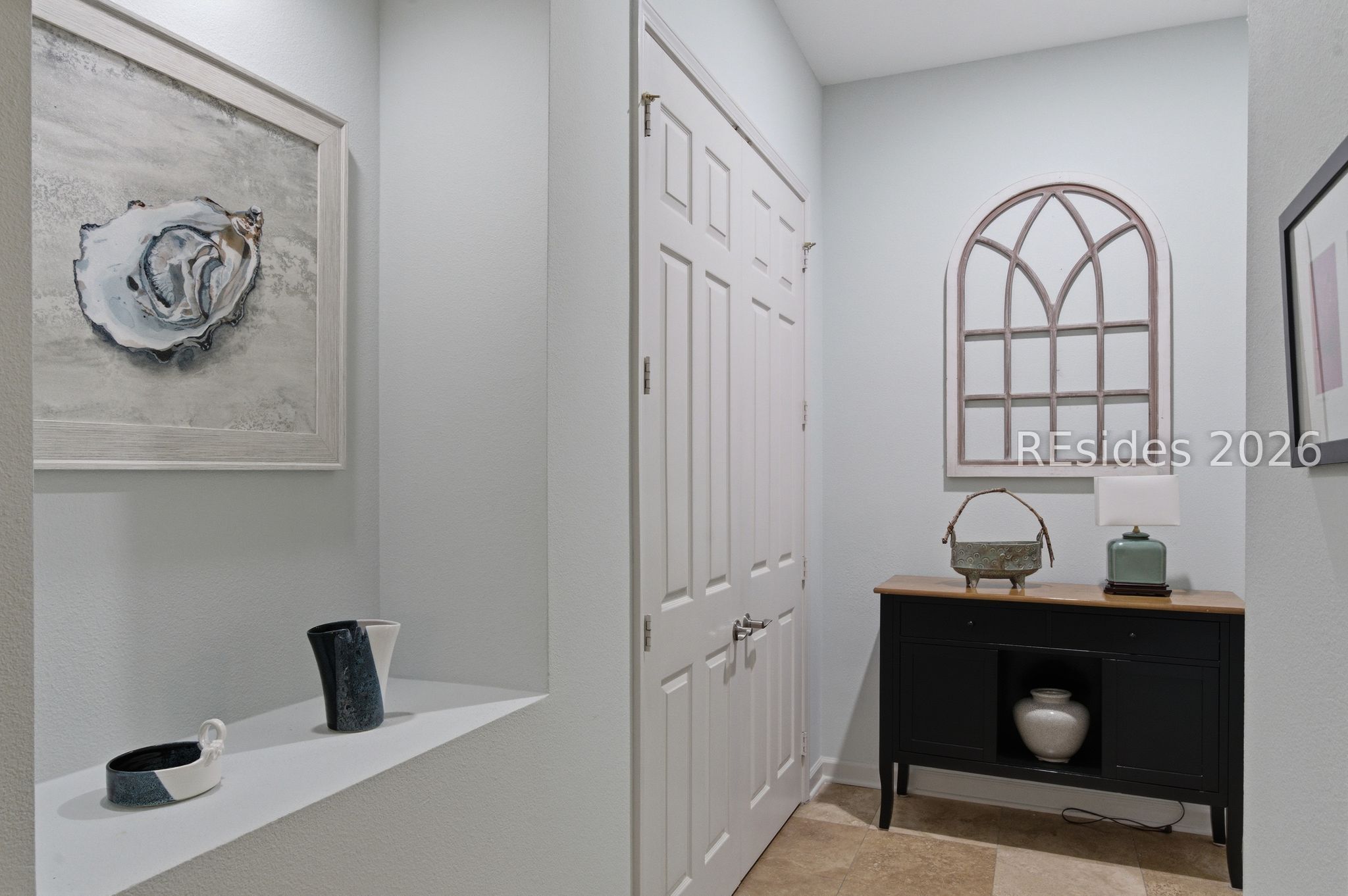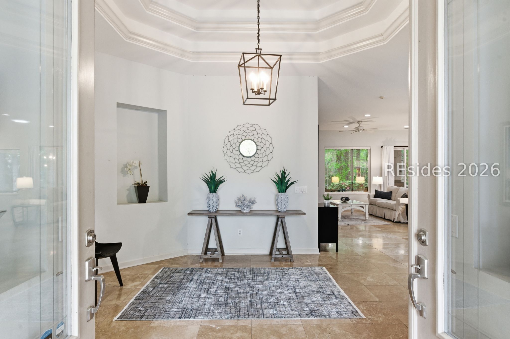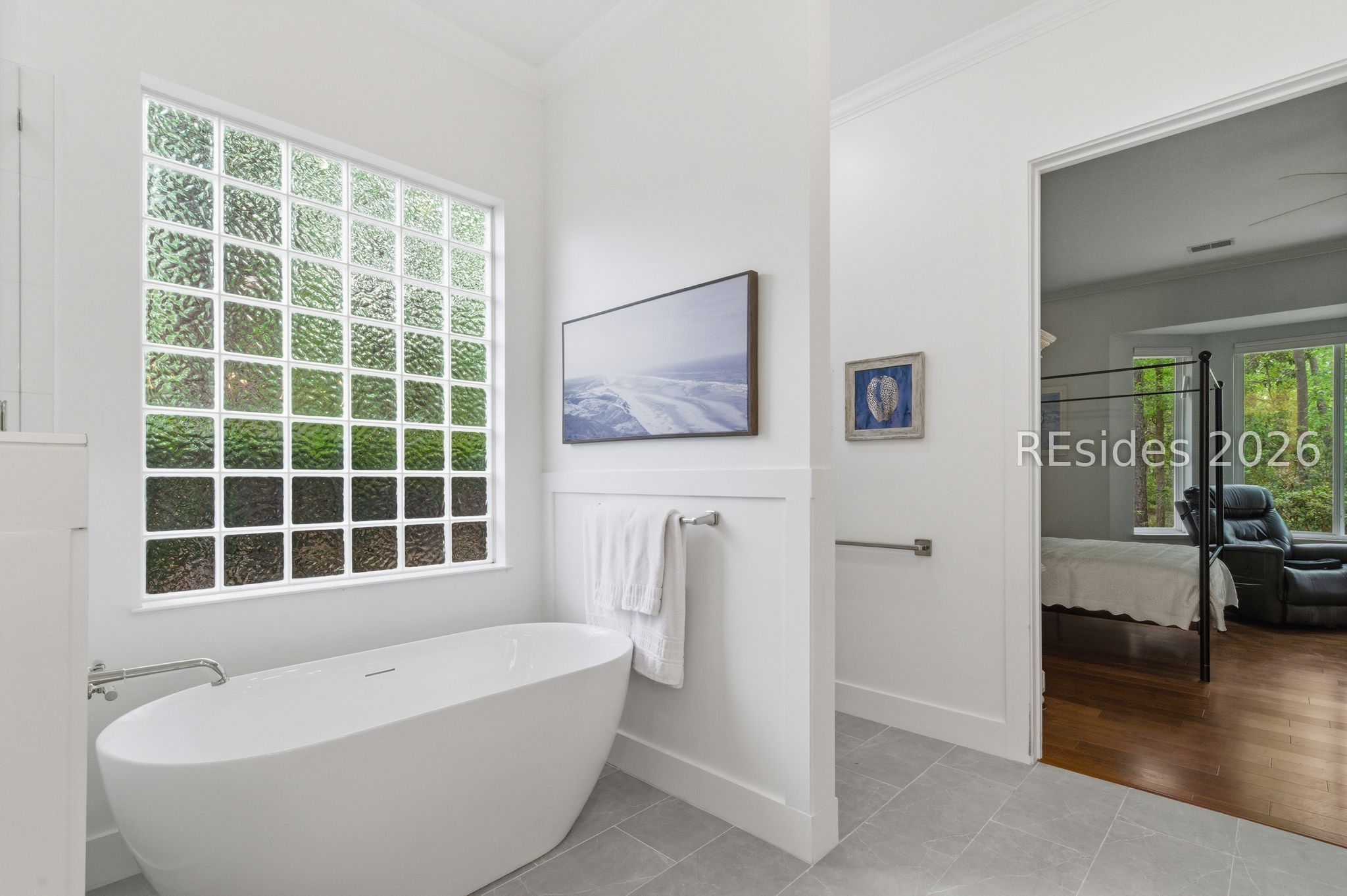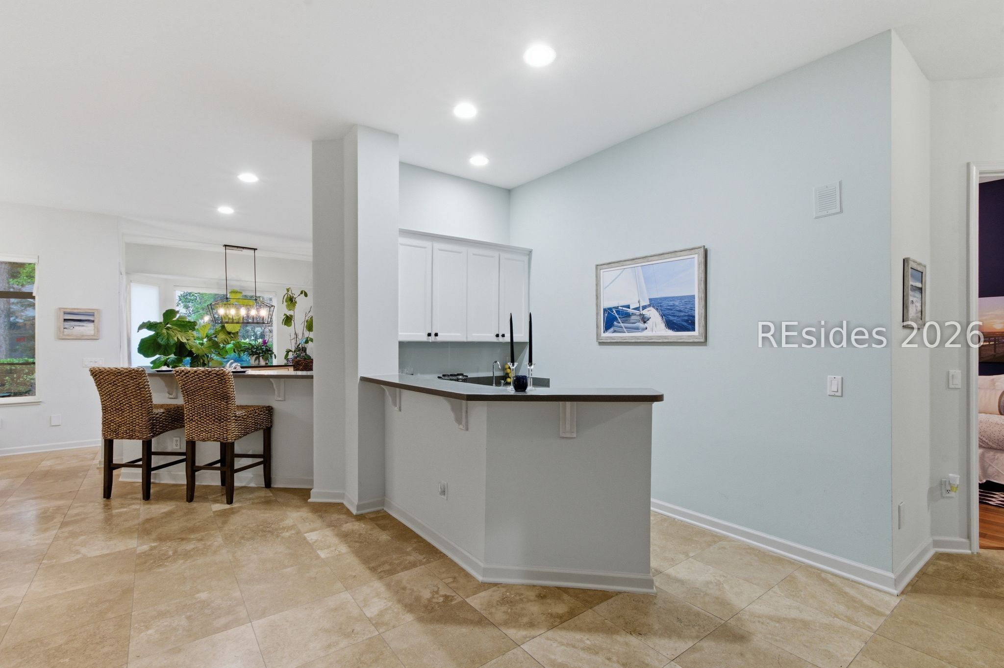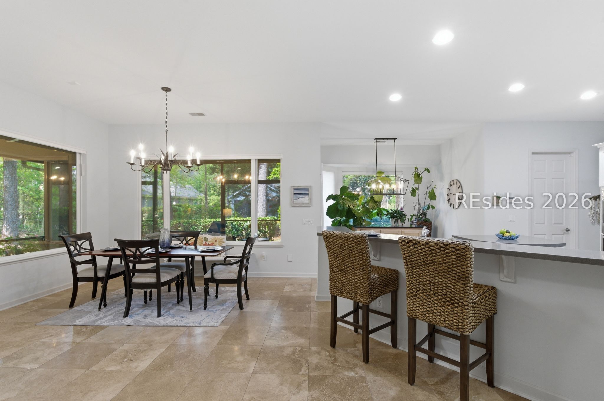 Tucked away on a quiet cul-de-sac in the highly sought-after Riverbend community of Sun City, this 2500 sqft home offers the perfect blend of natural privacy and effortless Lowcountry living! Beautiful curb appeal with welcoming courtyard entry. The spacious floor plan offers a seamless flow between living, dining, and kitchen areas to create a warm, connected feel that is perfect for entertaining. Eat in kitchen boasts stainless steel appliances, gas cooktop and double ovens. Plantation shutters, 10 foot ceilings and timeless travertine flooring enhance the beauty of this home. Primary suite has wood floors and totally remodeled bathroom ($80,000 remodel ADA compliant). Ensuite Guest room with wood floors. Large den/office or 3rd bedroom with wood floors, closet and doors offers additional flex space. Relax on the wrap around screened porch while overlooking nature preserve. Spacious 2 car garage plus golf cart bay enhance this property's appeal. Excellent value in Riverbend!!!