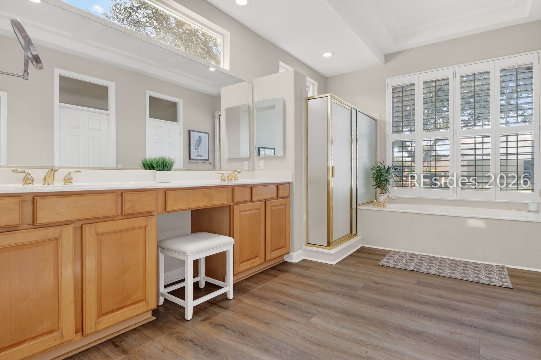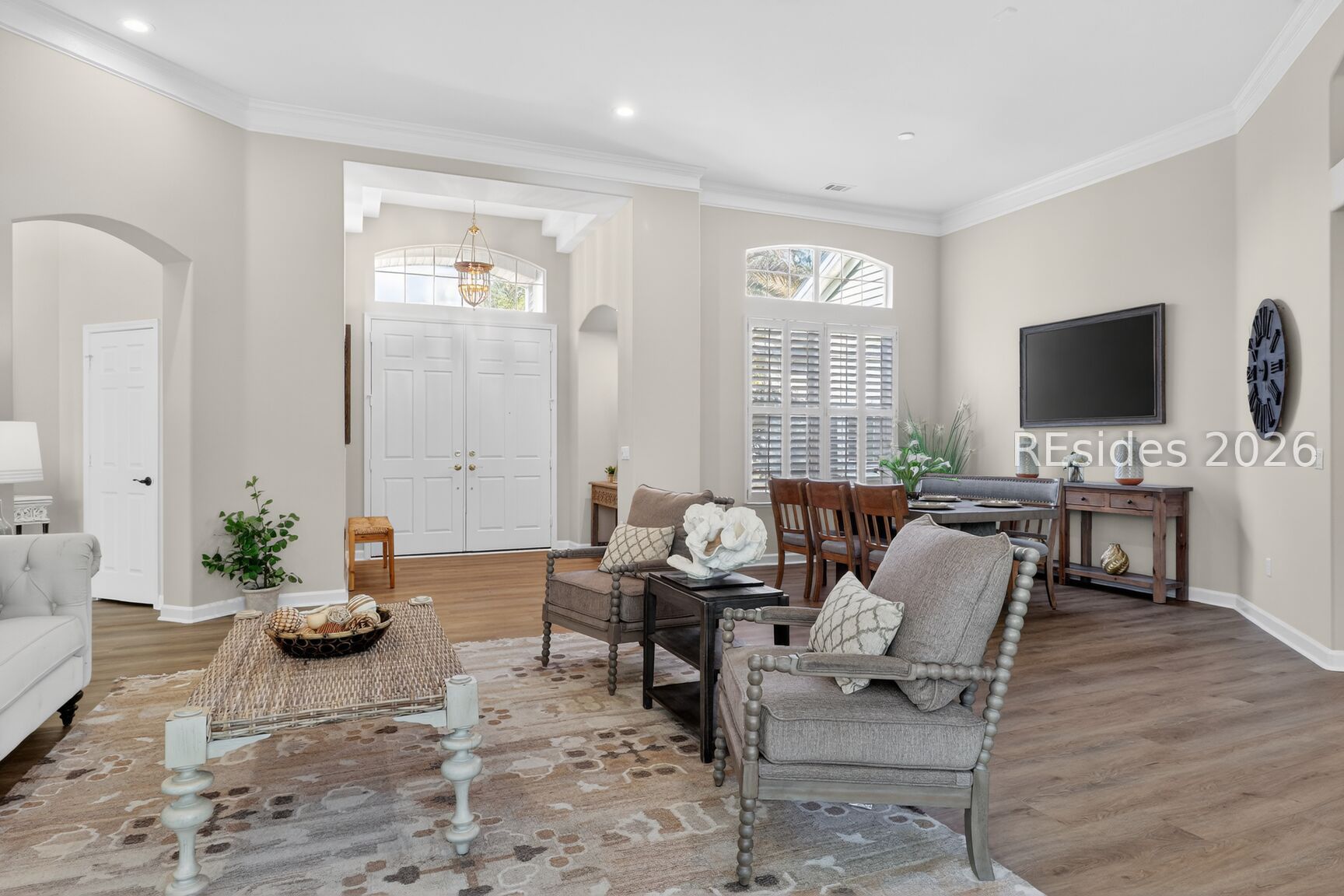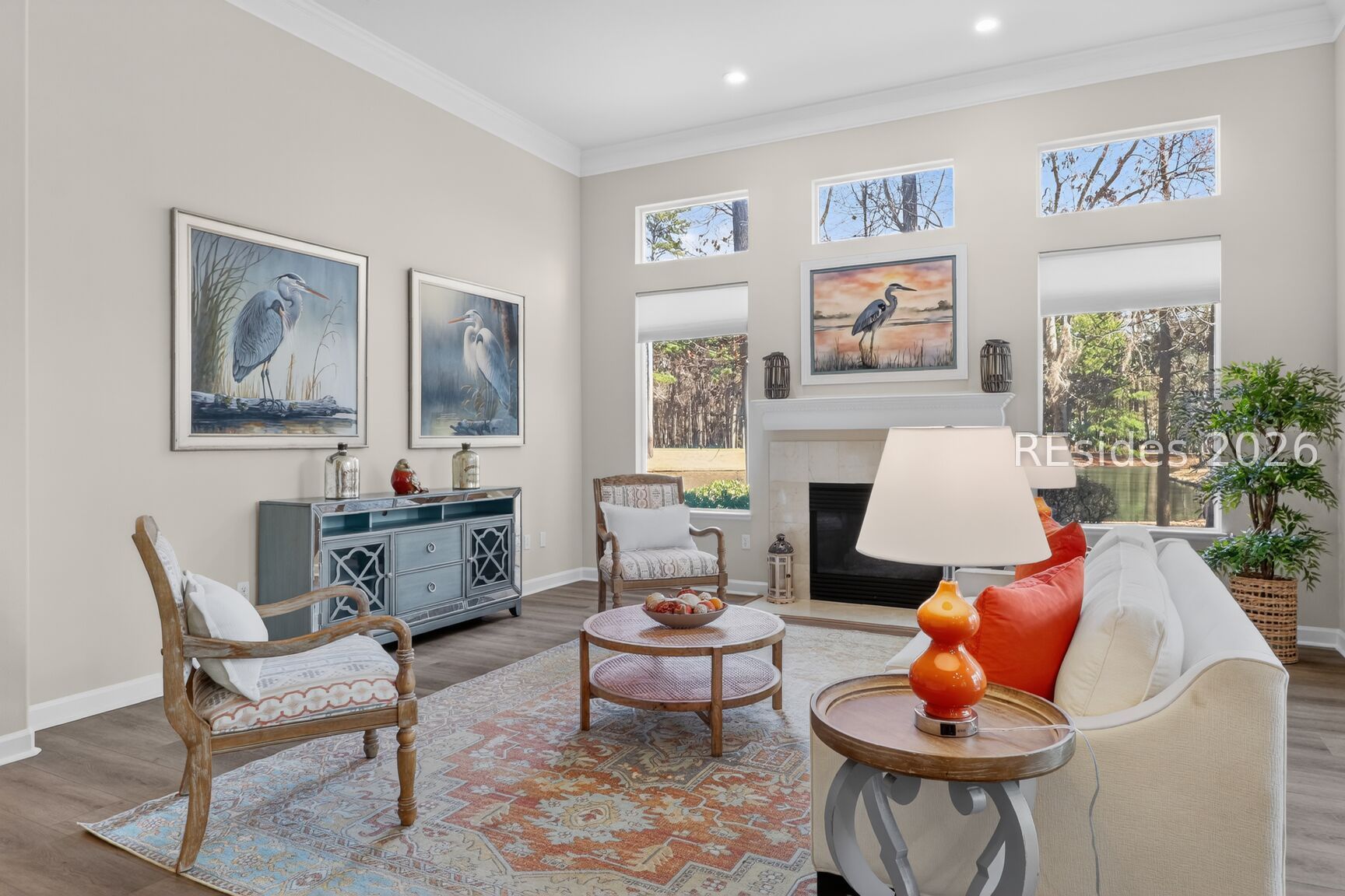 Welcome to the sought after Monroe Rutledge model in Sun City Hilton Head, a beautifully updated Del Webb estate home offering refined Lowcountry living with spectacular lagoon and golf course views. This elegant residence features soaring 12-foot ceilings and a thoughtfully designed layout perfect for both entertaining and everyday comfort. A formal living room and dining area greet you upon entry, creating an impressive space for hosting gatherings. Just off the kitchen, a more relaxed gathering room with a cozy fireplace provides the perfect setting to unwind while enjoying serene views of the lagoon and golf course. Freshly painted throughout, the home showcases brand-new luxury vinyl plank flooring and updated hardware, delivering a modern, move-in-ready feel. Natural light fills the living spaces, highlighting the home's open flow and stunning backyard vistas. Step outside to the expansive screened porch, where you can enjoy morning coffee or evening time overlooking one of the best views in Sun City. The corner lot location on a quiet cul-de-sac street offers both privacy and curb appeal. The spacious primary suite serves as a private retreat, complete with a large bedroom and ensuite bath. A comfortable guest bedroom and full bath provide accommodation for visitors, while a dedicated private office is ideal for working from home or pursuing hobbies. An additional powder room adds convenience for guests. The indoor laundry room offers everyday practicality. Car enthusiasts and golf lovers alike will appreciate the extended two-car garage plus an attached golf cart garage. Ideally located close to multiple gates and the many amenities that make Sun City Hilton Head one of the region's most sought-after active adult communities, this exceptional home combines space, style, and breathtaking views in a premier setting. Don't miss this one, this is a rare opportunity to own one of the most sought-after floor plans and locations Sun City has to offer. Sun City Hilton Head is currently undergoing a $50 million expansion. This new phase features a state-of-the-art amenity center, & a 41,000-42,000+ sq ft Clubhouse. A Two-Story Fitness Center has 15,000+ sq. ft. facility with an indoor walking track & a multi-sports court. There is a15,000 sq. ft. pool, featuring a lazy river, swim-up bar, Baja sun deck, & poolside cabanas + Indoor four-lane lap pool12 outdoor & 4 indoor pickleball courts, 3 outdoor & 2 indoor tennis courts and so much more!