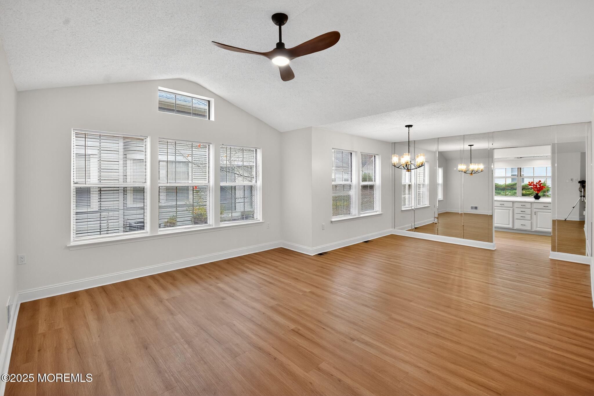 Welcome to a beautifully renovated Devon model ranch in desirable Winding Ways. This freshly painted 2-BDR, 2-BA home blends comfort w/thoughtful updates throughout-a true move-in-ready standout. Step into the expansive living room featuring vaulted ceiling & formal dining area. The spacious EIK offers ample cabinetry, brand-new Quartz counters/backsplash, & a new sliding door to outdoor patio. The primary suite includes a large WIC w/cedar attic storage & a fully renovated en-suite bath. Both bathrooms are completely upgraded w/new showers, tub, stylish floor/wall tile, & sleek modern vanities. Highlights include new LVP floors, new HWH, newer roof (2019), & a freshly painted 2 car garage w/epoxy floors. Enjoy easy living in one of the areas most desirable & affordable-55+gated community