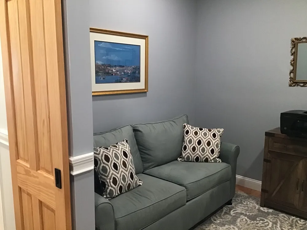 NEW TO MARKET - Welcome to Sawyer’s Reach, Plymouth’s premier 55+ community! This top-floor condominium offers 1,368 sq. ft. of modern coastal living filled with light, comfort, and style. The open-concept smart home design includes 2 bedrooms, 2 full baths, and a spacious living/dining area perfect for entertaining. A versatile den/home office with dual barn doors provides privacy when needed. The kitchen showcases upgraded finishes, natural gas cooking, and an oversized island, while the primary suite features a walk-in closet and private bath. Step out to your private balcony or enjoy the convenience of garage parking. With too many upgrades to list, this home is truly move-in ready. Community amenities include a clubhouse, fitness center, outdoor heated pool, and rooftop deck with grill and fire pit offering stunning views. Ideally located just minutes to Colony Place shopping, dining, and area beaches—experience luxury, location, and low-maintenance 55+ living at its best!