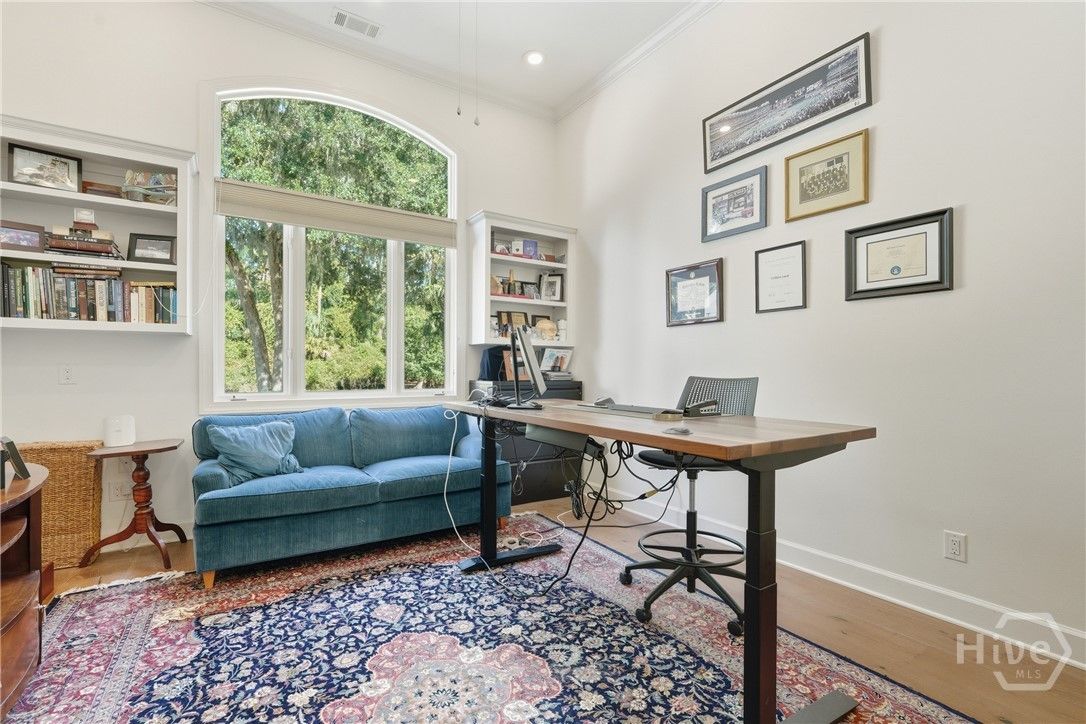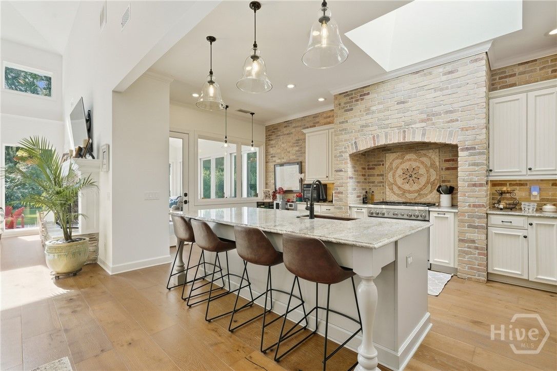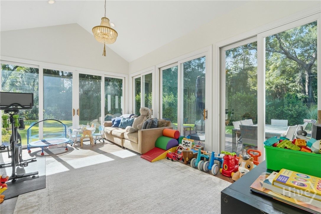 Back on market at no fault of seller. Located close to Landings Harbor Marina, this exceptional single-level home is set amid lush landscaping with a private backyard oasis. The soaring ceilings allow natural light to flow into the great room/dining/kitchen combination. The gourmet kitchen features a brick accent wall & island. A sunroom is a wonderful flex space that can be used as a playroom, studio or office. There are 4 bedrooms each adjoining a full bath as well as an office which can also function as a bedroom. The owners’ suite has a double vanity, soaking tub & separate shower & large walk-in closet. Relax & entertain in the breathtaking backyard with a new Trex deck, screened porch & patio area. Additional features include wood floors throughout living areas & 2 car plus golf cart bay garage. Updates include New exterior paint, New front door, some new windows & newer roof, water softener, 2 newer HVAC units & extensive tree work. Some amenities require additional membership.