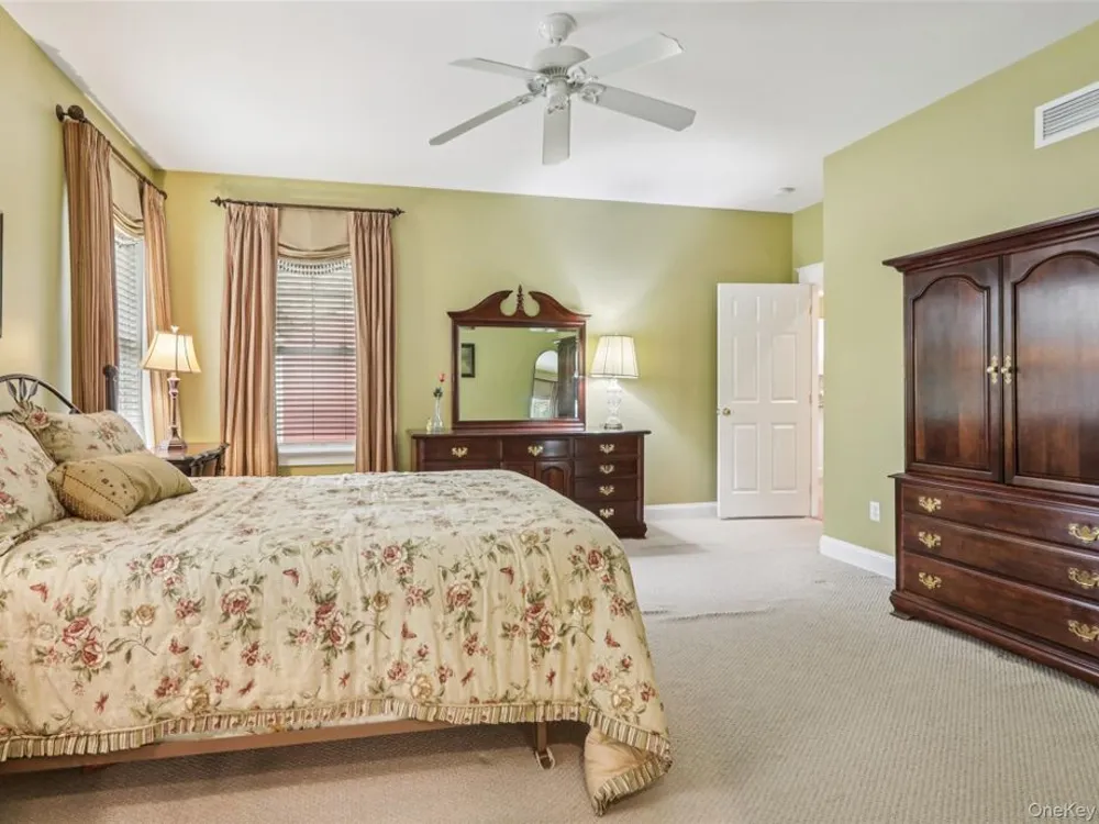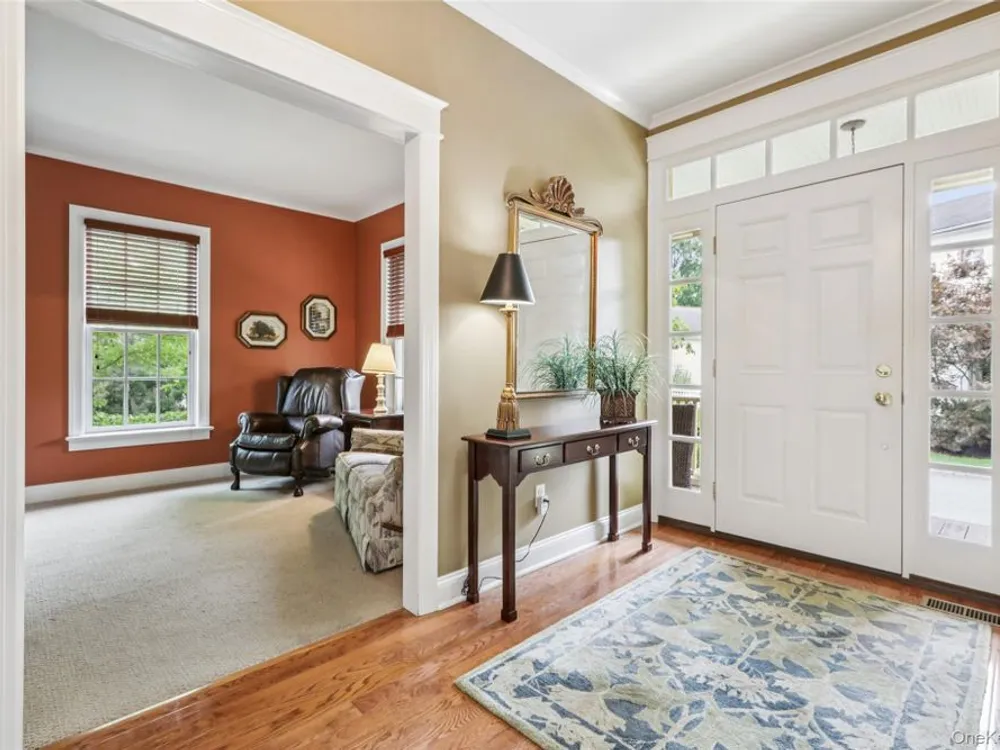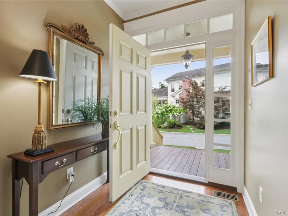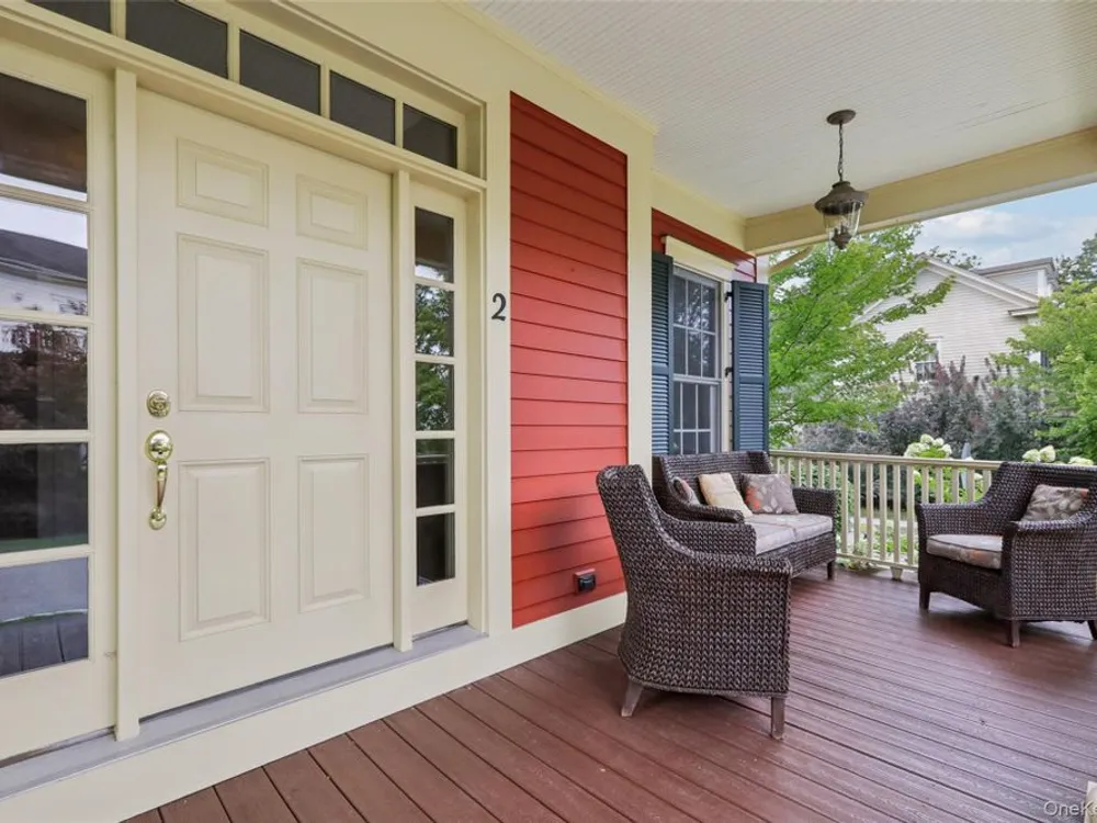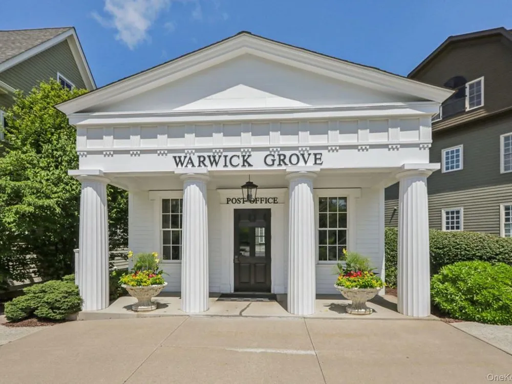 Warwick Grove is truly a way of life! This unique combination of architecturally pleasing homes, close-knit community, and park-like grounds comes unparalleled. Located on a corner lot, with front porch views of a small park, this home has so much to offer! Step inside and experience the Foyer with soaring ceilings, elegant crown moldings, and gleaming hardwood floors that instantly make a statement. To your right, the Study provides a peaceful sanctuary. Flowing from here, the Living Room beckons with a cozy, flickering gas fireplace-the perfect spot to unwind or entertain. The open Dining Area adjoins the Kitchen, creating an easy flow for entertaining. French doors invite you outdoors where a patio awaits—an extension of your living space, fabulous for gatherings or simply relaxing. Inside again, the Kitchen shows off granite countertops, a breakfast counter, and a farmhouse sink that overlooks the Dining Area - designed for daily meals and casual conversation. Your Owner’s Suite is a true retreat, featuring two generous walk-in closets and a luxurious Master Bath complete with dual vanities, a soaking tub, and a walk-in shower. For convenience, the first floor also includes a stylish powder room and a Laundry Room. Head upstairs to find a flexible loft space - perfect as an extra lounge, home office, or as a guest quarters with an additional bedroom, a full bath, and ample storage space. Additional highlights: wiring for a sound system on the first floor and a sprinkler system outdoors. This home blends charm and sophistication with modern functionality—welcoming you to your next chapter. Warwick Grove amenities include the Neighborhood Center, with a Living Room, Library, Game Room, Massage Room, Gym, Fitness Center, and a Catering Hall with a full Kitchen, as well as a heated outdoor pool, a community garden, and a Postal Center. Just down the street you will find Warwick’s “Best Small Library in America”. The historic town of Warwick awaits you, with its charming shops, delectable restaurants, scenic parks, inviting breweries, and wineries. For those who commute to the city, you'll appreciate the convenience of being close to a commuter parking lot and a bus route to bustling New York City. Comfort, convenience, and natural beauty come together to create the perfect place to call home.