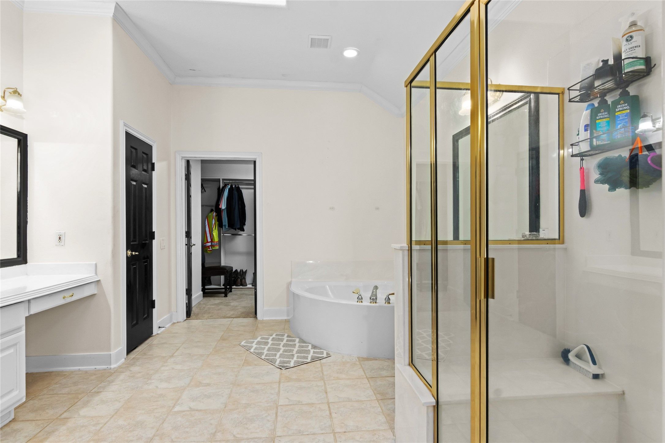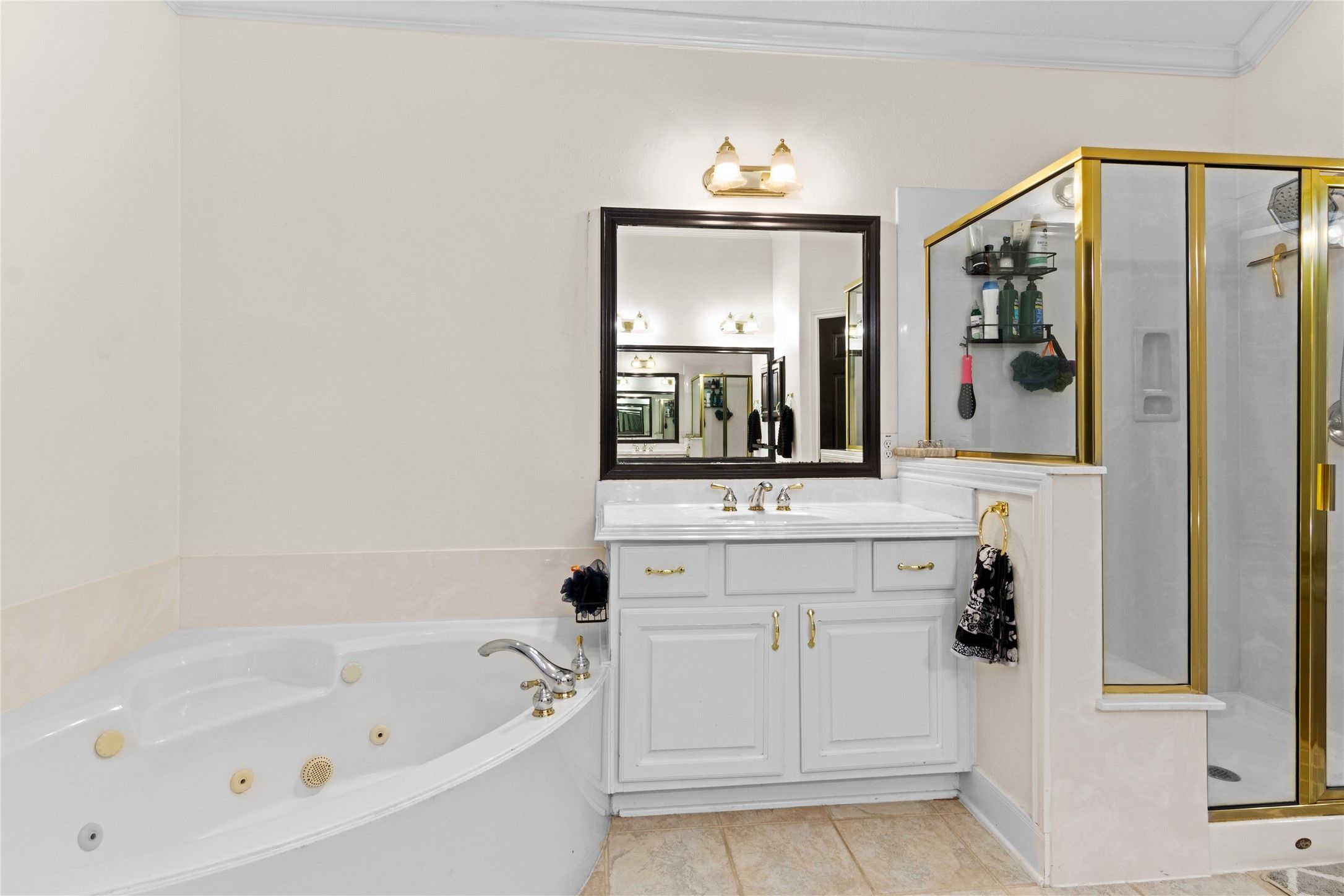 - Breakfast Bar, High Ceilings, Jetted Tub, Kitchen/Family Room Combo, Bath in Primary Bedroom, Separate Shower, Tub Shower, Window Treatments, Ceiling Fan(s)