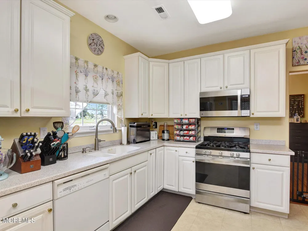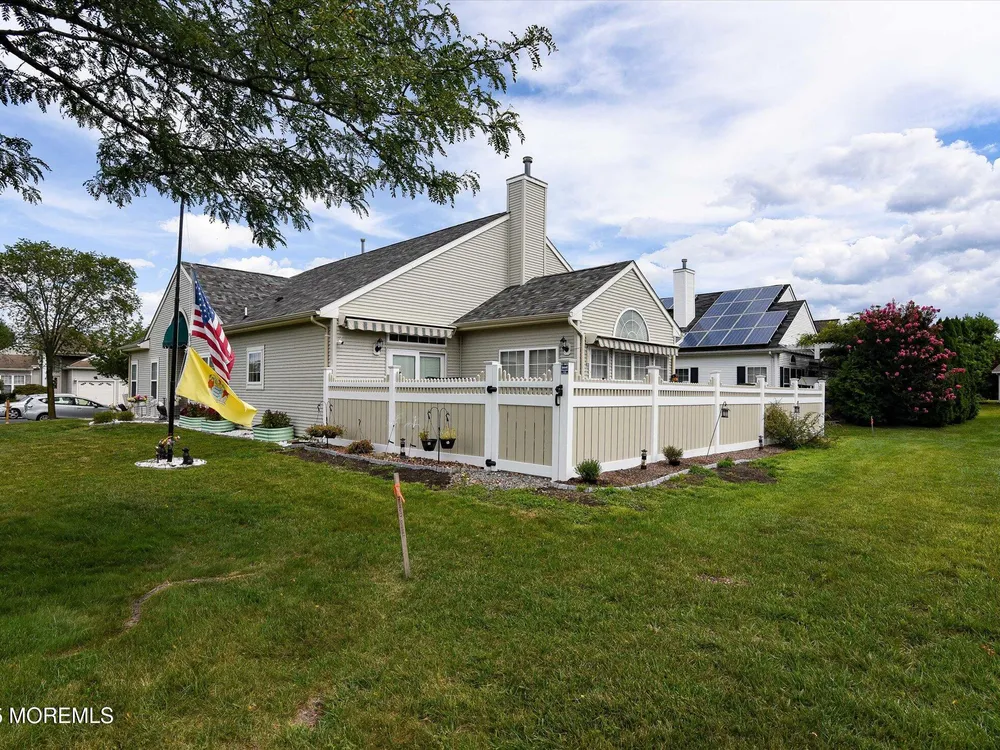 This immaculate Byron model is move-in ready and packed with recent upgrades, including a five-year-old roof, new HVAC system, and a New privacy fence surrounding the patio—offering peace of mind and modern comfort from day one. Step into the elegant foyer with a soaring ceiling that sets the tone for the rest of this bright, open, and beautifully maintained home. The formal dining room is generously sized, perfect for hosting holiday gatherings or casual dinners with friends. The spacious kitchen is a chef's dream, featuring white cabinetry, sleek countertops, stainless steel appliances, and a large pantry for all your storage needs. From the kitchen, sliding glass doors open to a fenced-in patio, ideal for relaxing or entertaining in total privacy. Natural light pours into the temperature-controlled sunroom, where floor-to-ceiling windows create a warm and inviting space year-round. A two-sided gas fireplace connects the sunroom to the adjacent den, making it a cozy retreat during cooler months. This thoughtfully designed home offers two large bedrooms, both with walk-in closets, and a flexible bonus room that can be used as an office, guest room, or hobby space. The bright and open layout flows effortlessly throughout, creating a perfect balance of comfort and style. Located in the prestigious Renaissance community, residents enjoy access to resort-style amenities including an 18-hole golf course, tennis courts, indoor and outdoor pools, a 30,000 sq. ft. clubhouse, and a vibrant calendar of social activitiesall within a gated, secure setting. Don't miss your chance to own this exceptional home in one of the Jersey Shore's most desirable 55+ communities. Come see it today and make it yours!