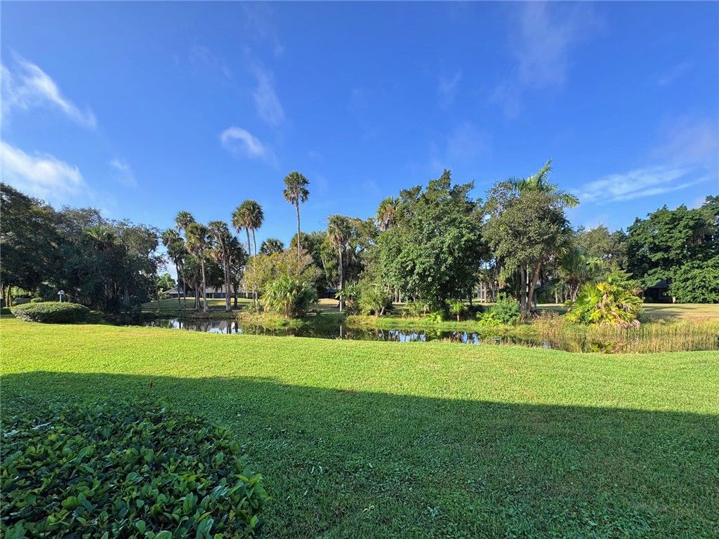 Enjoy picturesque & serene lake and golf views from this Furnished 2/2 1st floor condo with coveted IN UNIT Washer/Dryer. Impact windows and a new roof offers peace of mind for years to come. Primary suite with updated bathroom and walk-in closet. Large enclosed patio with tile flooring and tons of natural light. Active 55+ community features a pool, clubhouse, fitness center, billiards, tennis, shuffleboard, and much more. Golf memberships available and a full social calendar with community events. Only minutes to Vero's best beaches, shopping and dining. Don't miss it!