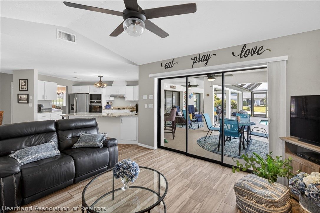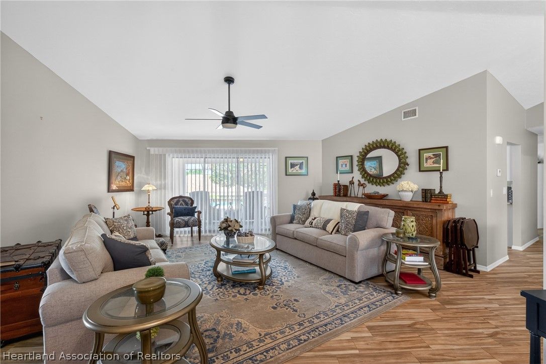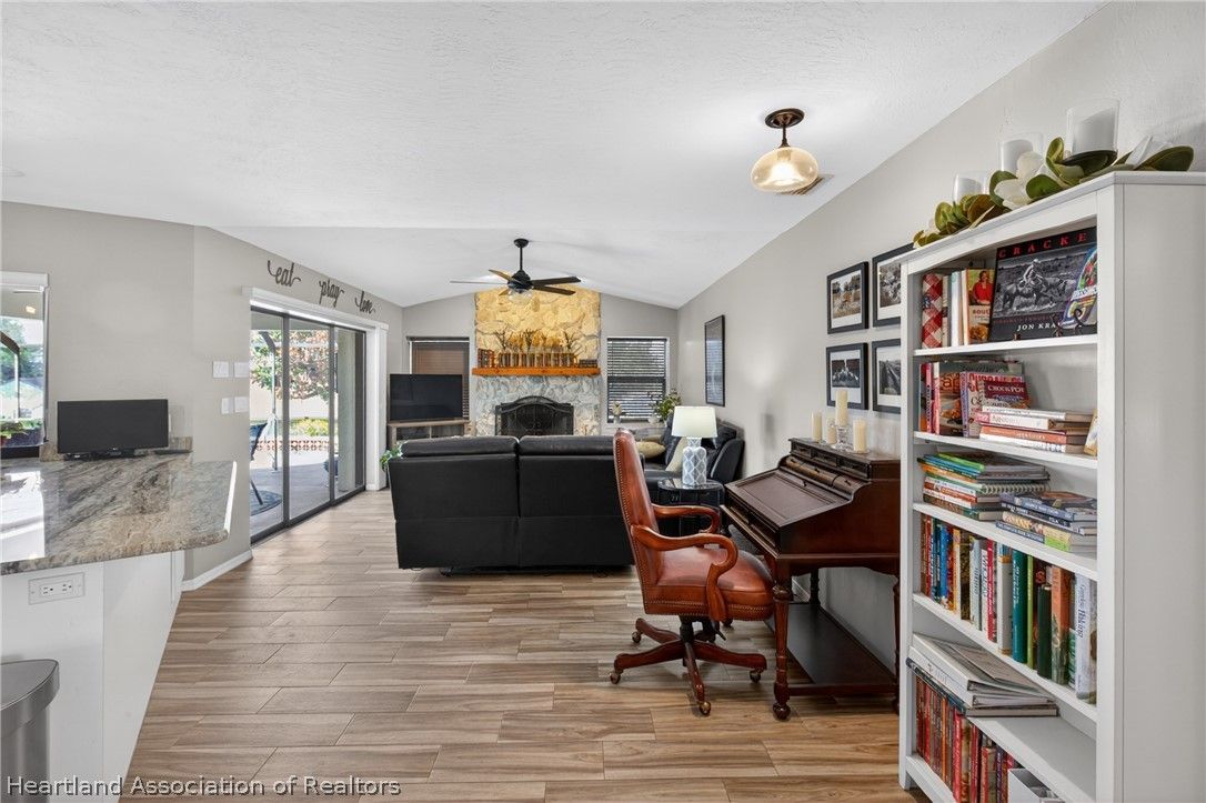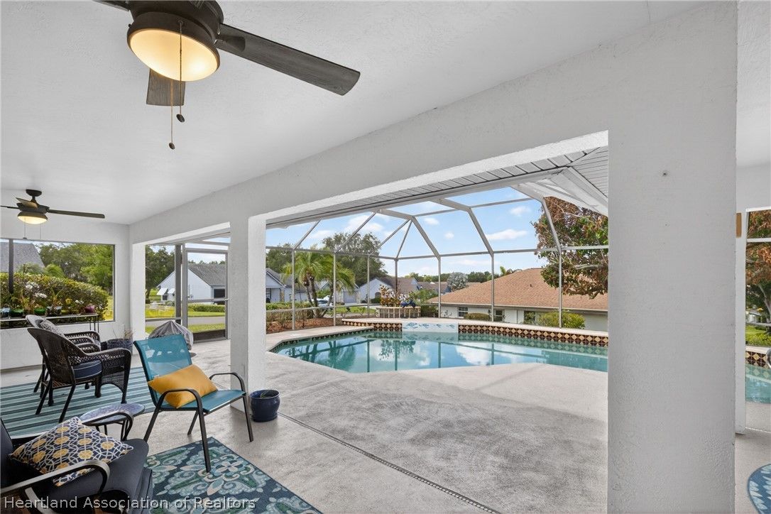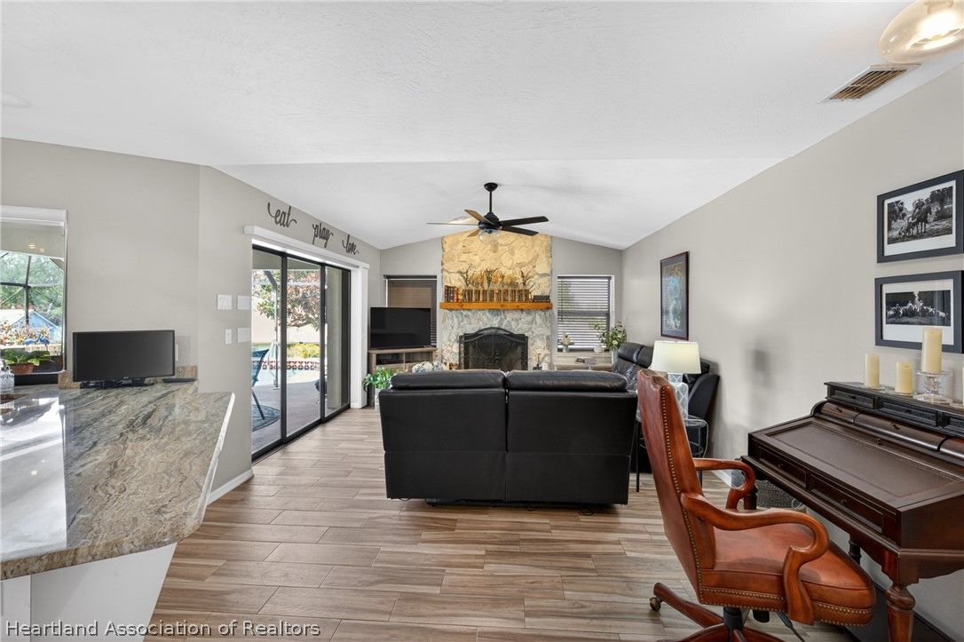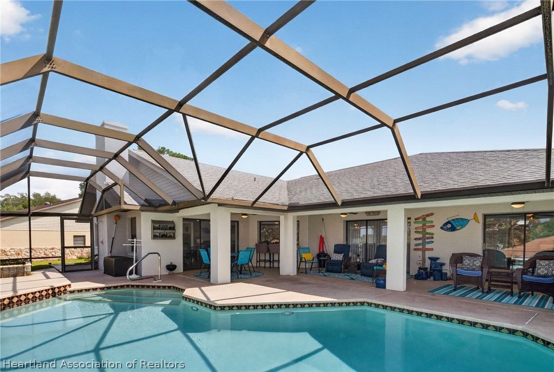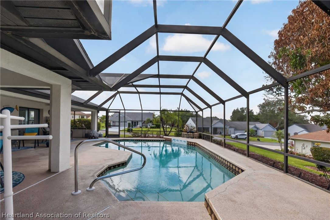 A beautiful, well-maintained, 3 bedroom/2 bath home on a large corner lot. Appreciate the flooring both practical and chic, as well as the cathedral ceilings, modern kitchen, and cozy fireplace in the home. Outside the home you will absolutely love the heated pool, in a screened-in porch, with a scenic view any time of day. This house sits on an open lot which gives you the perfect space to create amazing memories with your neighbors, family, and friends. You would be missing out if you didn't take the opportunity to come appreciate this beautiful home for what it is!
