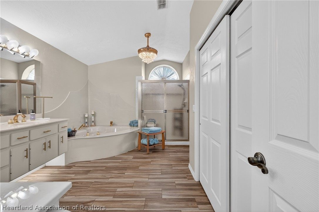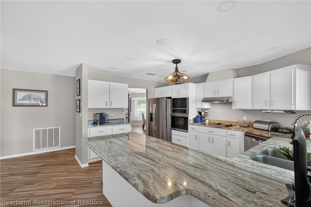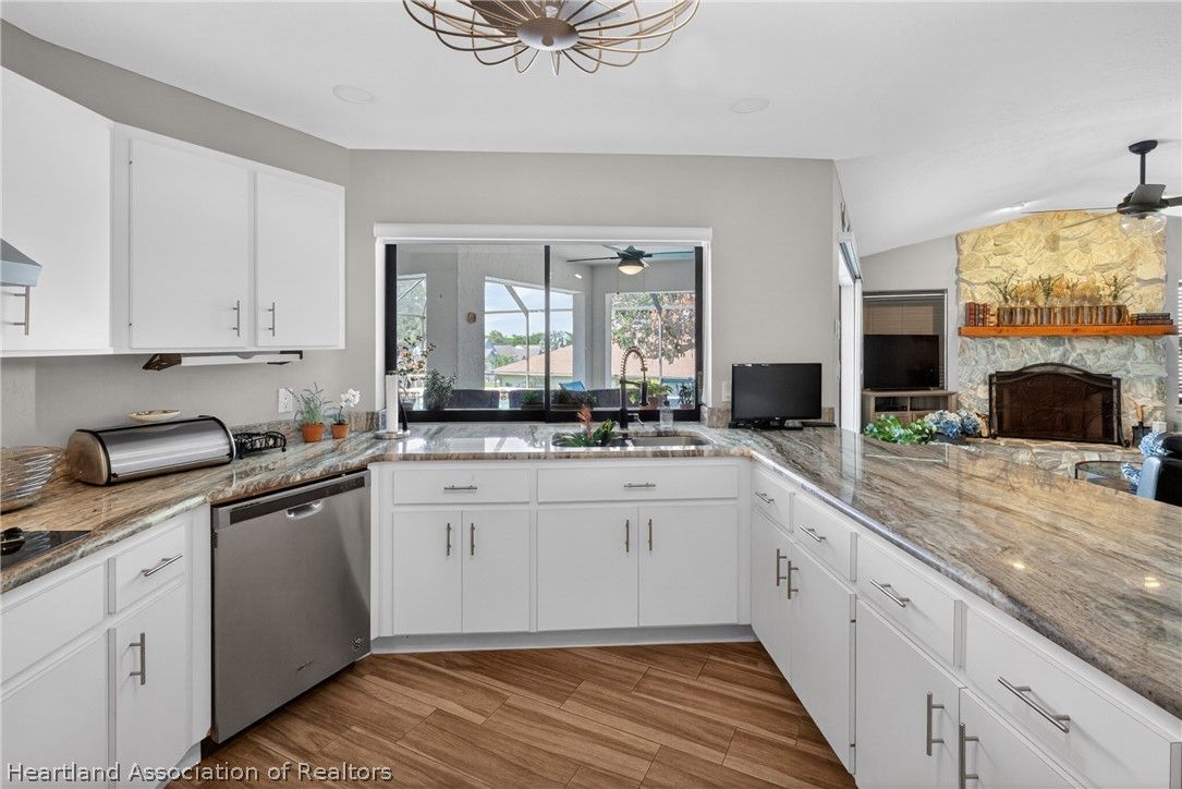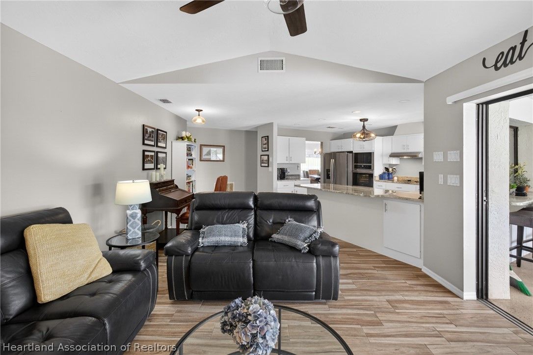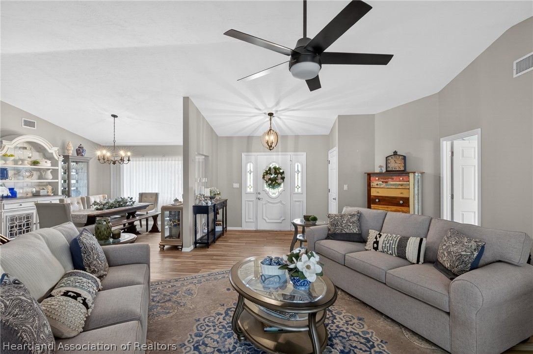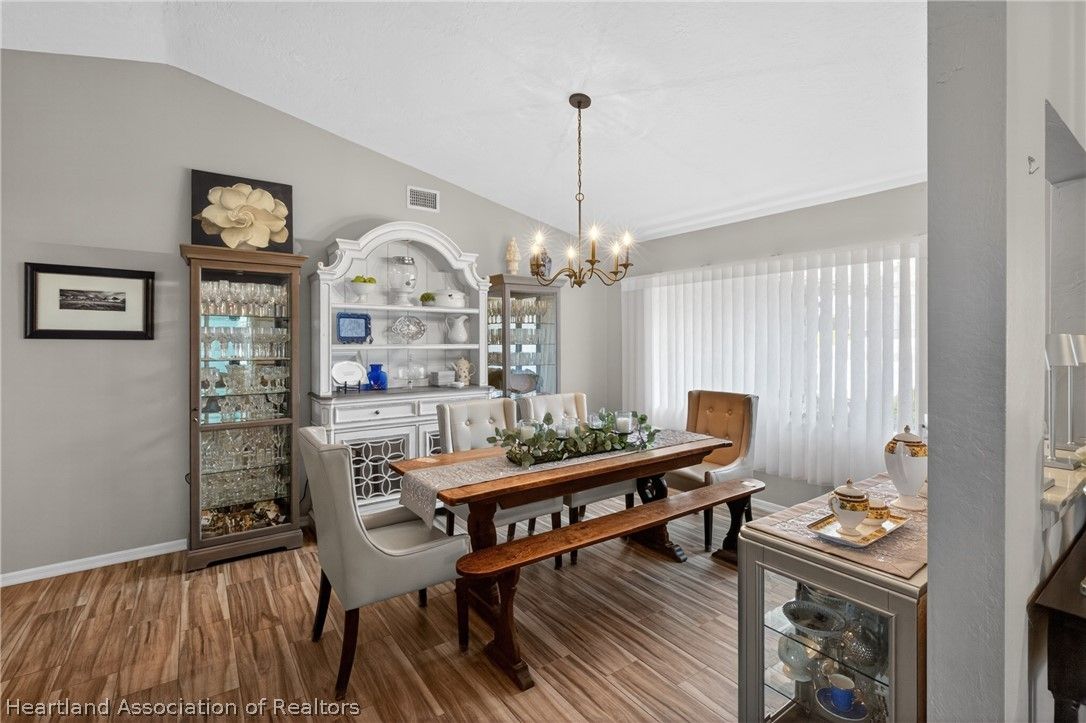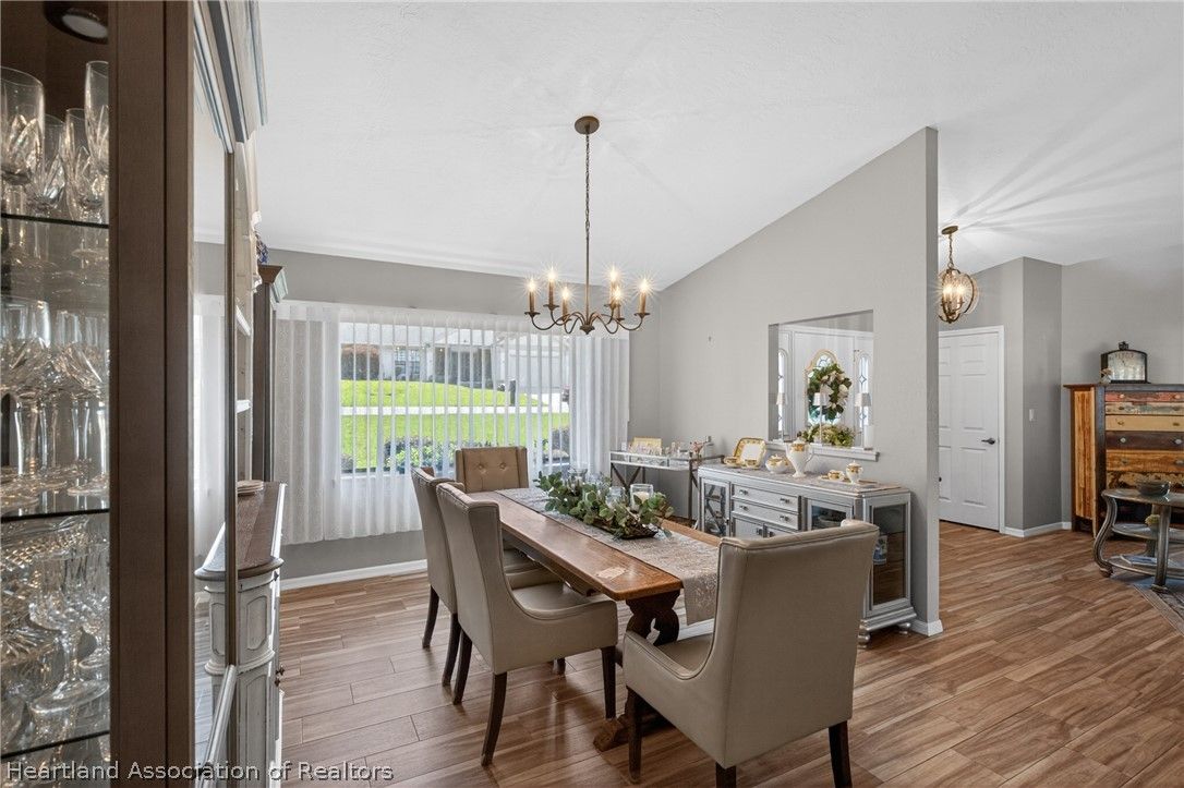 A beautiful, well-maintained, 3 bedroom/2 bath home on a large corner lot. Appreciate the flooring both practical and chic, as well as the cathedral ceilings, modern kitchen, and cozy fireplace in the home. Outside the home you will absolutely love the heated pool, in a screened-in porch, with a scenic view any time of day. This house sits on an open lot which gives you the perfect space to create amazing memories with your neighbors, family, and friends. You would be missing out if you didn't take the opportunity to come appreciate this beautiful home for what it is!
