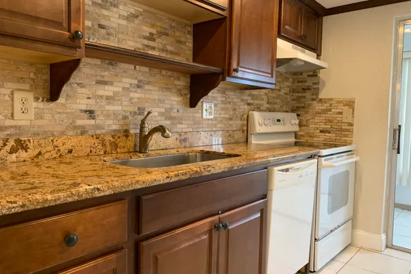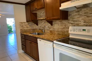 Spacious first-floor condo featuring 1 bedroom, 1.5 bathrooms, and a bright Florida room with serene views of the green space and clubhouse. Enjoy the convenience of an on-site laundry room on each floor and an assigned parking space. Ceramic tile throughout the living areas. Kitchen with newer cabinets and granite counters. Both bathrooms have been remodeled. This vibrant 55+ community offers resort-style amenities, including two pools, a sauna, a clubhouse with card rooms, a theater, a billiards room, and a fitness center. Ideally located just minutes from shopping, dining, entertainment, and the beach.