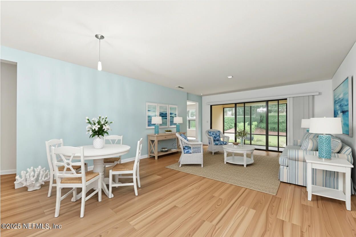 Welcome to Del Webb Ponte Vedra, a premier 55+ community in the heart of Nocatee. This well-maintained 3BR/2BA Pulte home offers comfortable single-story living on a desirable corner lot. Inside, you'll find updated vinyl plank flooring in the main living areas, tile in wet spaces, and carpeted bedrooms for added comfort. The open layout feels bright and functional, and the home offers a peaceful pond view right across the street. Residents of Del Webb Ponte Vedra enjoy access to the 27,000 sq ft Anastasia Club, featuring indoor and outdoor pools, spa, sauna, fitness center, café, pickleball, tennis, bocce, and a full calendar of clubs and activities. Living in Nocatee also means access to award-winning amenities including Splash & Spray Water Parks, nature trails, parks, fitness paths, and convenient golf-cart access to nearby shopping, dining, and medical services. Experience the ease of low-maintenance living with all the lifestyle benefits Nocatee is known for.