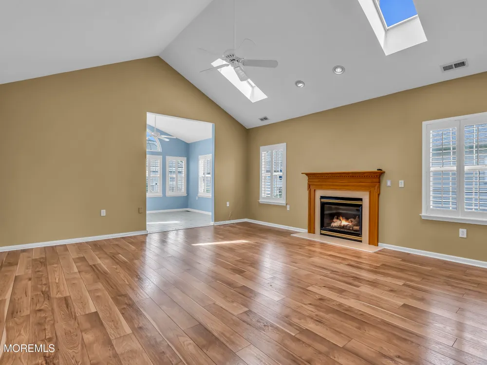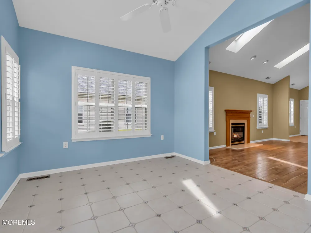 WELCOME HOME! Step into this beautifully maintained Raphael Extended model in the prestigious Renaissance 55+ community. This 2-bedroom, 2-bathroom home offers a bright four-season room, perfect for morning coffee or afternoon relaxation, along with an elegant formal dining and living room. The inviting family room boasts vaulted ceilings, skylights, and a cozy gas fireplace, creating the ideal space for gatherings. The eat-in kitchen is a chef's delight with granite countertops, newer stainless steel appliances, and under-cabinet lighting. The primary suite features a spacious walk-in closet and a bathroom with dual sinks and a stall shower. Added touches throughout the home include custom plantation shutters, skylights, and a central vacuum system. Step outside to your private backyard oasis with a 12x24 paver patio, built-in gas line for grilling, and beautifully landscaped surroundingsperfect for entertaining or unwinding. The home also comes with a 2-car garage and a brand-new roof (Oct. 2024) & new HVAC for peace of mind. Move right in and enjoy everything the Renaissance has to offera state-of-the-art clubhouse, pool, fitness center, tennis, and so much more. This home is truly PRISTINE and waiting for its next owner to fall in love. Don't miss the opportunity to own in one of the area's premier adult communities!
