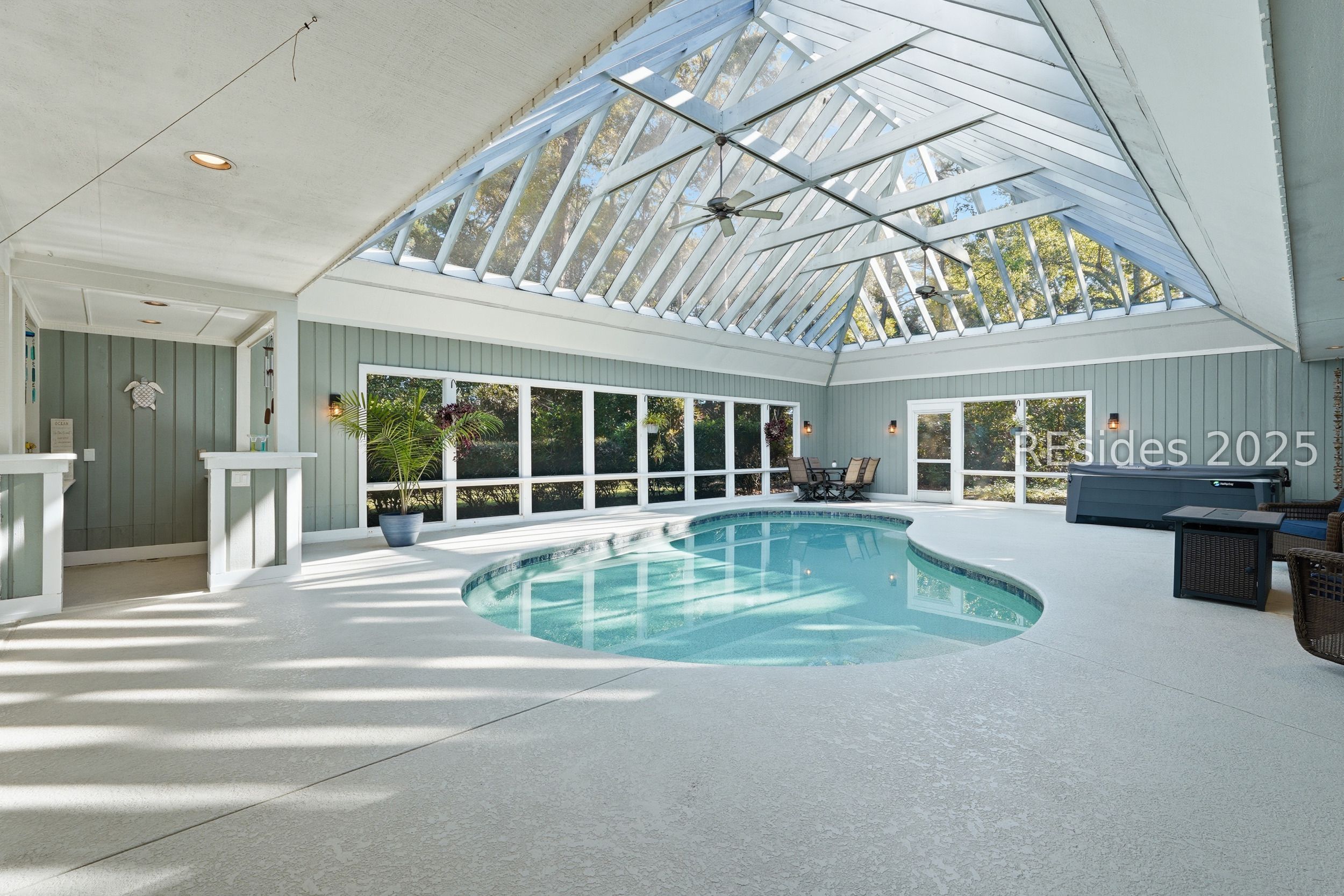 New Price! An exceptional opportunity to own a beautifully updated coastal retreat just steps from the Port Royal Sound, privately tucked away on a serene homesite. Designed for entertaining and refined Lowcountry living, this residence offers a seamless blend of indoor and outdoor spaces.The enclosed lanai creates a true resort-style experience, keeping the pool pristine year-round while providing the perfect setting for gatherings or quiet relaxation. Every detail has been thoughtfully curated, with comprehensive updates throughout, including new HVAC units and ductwork, a new hot water heater, and a newer pool pump. An EV charger adds modern convenience to this well-appointed home.Step outside to a tranquil backyard patio, ideal for morning coffee accompanied by birdsong, or enjoy a short stroll to the bluff, where breathtaking sunrises over the Port Royal Sound become part of your daily routine.