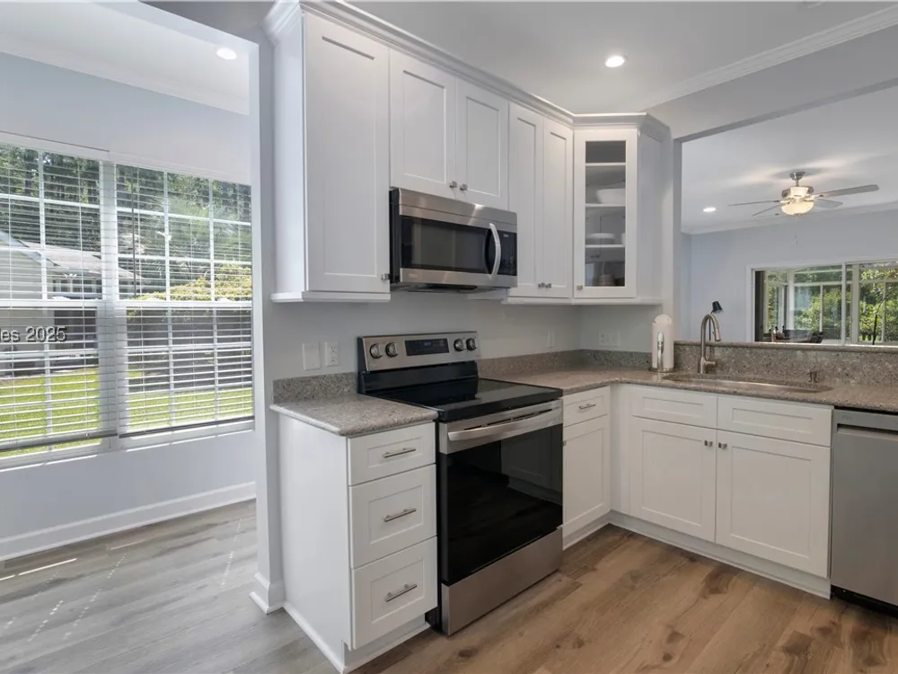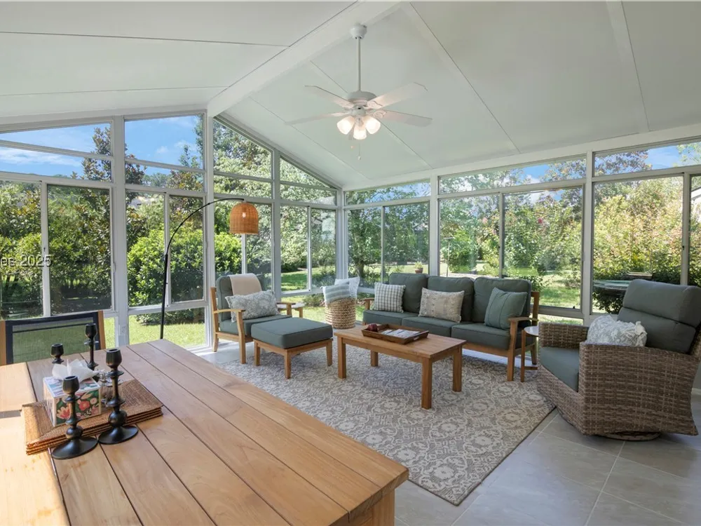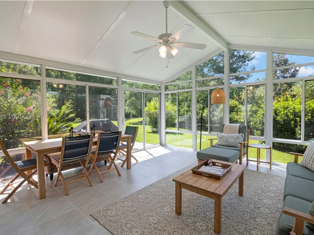 Renovated to Perfection in 2023! Nestled in the heart of Sun City Hilton Head, the Lowcountry's premier active adult community. This stunning home has been completely remodeled from top to bottom. Every detail has been thoughtfully upgraded, including a brand-new roof, HVAC with ductwork, plumbing, electrical panel and wiring, and water heater. Step inside to find luxury vinyl plank flooring, a designer kitchen with modern cabinetry and appliances, refreshed bathrooms, new lighting, doors, and crown molding throughout. The spacious 288 sq. ft. four-season room offers tiled flooring and independent temperature control, perfect for year-round enjoyment. Set on a quiet cul-de-sac with a private backyard, this move-in ready home is truly a must-see. Plus, living in Sun City Hilton Head means access to world-class amenities: three golf courses, multiple clubhouses, fitness centers, pools, pickleball, tennis, walking trails, dining options, and over 200 social clubs; making it not just a home, but a lifestyle.