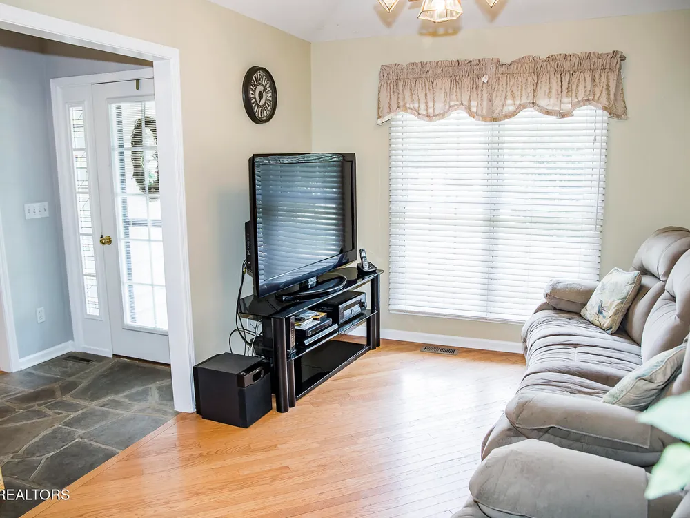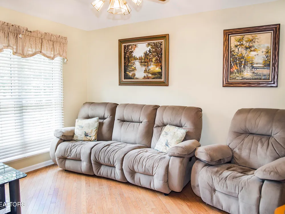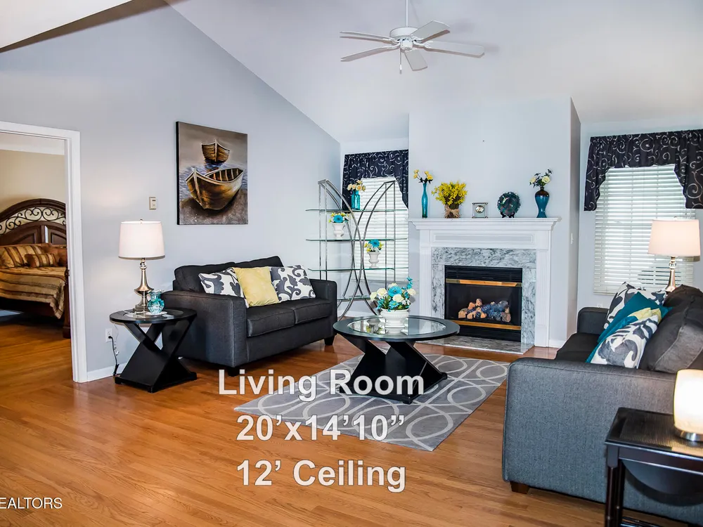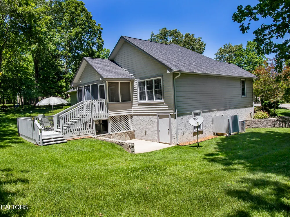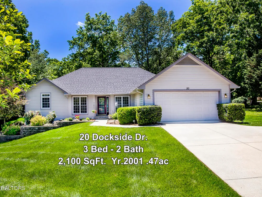 SPACEIOUS SPLIT BEDROOM RANCH WITH 1 YEAR OLD HVAC & ROOF!!! An EXCEPTIONAL VALUE!!! This roomy 3 bed - 2 bath 2,100 SqFt Ranch is situated on a quiet cul-de-sac in the BEAUTIFUL DOCKSIDE Neighborhood. This neighborhood features Views of Lake St. George, Underground utilities, Mailbox lamp posts & a Friendly neighborhood atmosphere. Around back you can enjoy either the screened deck that looks out into your private backyard, the open entertaining deck or the concrete patio area. Inside you will find a stone floor entryway & beautiful hardwood floors. (no carpets in this home) 12' cathedral ceiling in the living room, 8'7'' trey ceilings in the den & dinning rooms, 9' ceiling in the master bedroom, & 10' ceiling in the master bathroom. The master suite also features 6'3''x 4'7'' his & hers walk-in closets. The eat-in kitchen offers plenty of space with-in its 22'10''x 12'9'' area. The guest side of the home features 2 guest rooms, a guest bath & a 11'x 6'10'' laundry room with a 2 year old washer & dryer set. The 20'wide x 23.5'deep garage has just 1 step up into the house. The yard is also serviced by a 5 zone 25 head rainbird irrigation system. Don't miss out on this truly exceptional Fairfield Glade Value!!! Buyer to verify all measurements and information prior to making an offer.