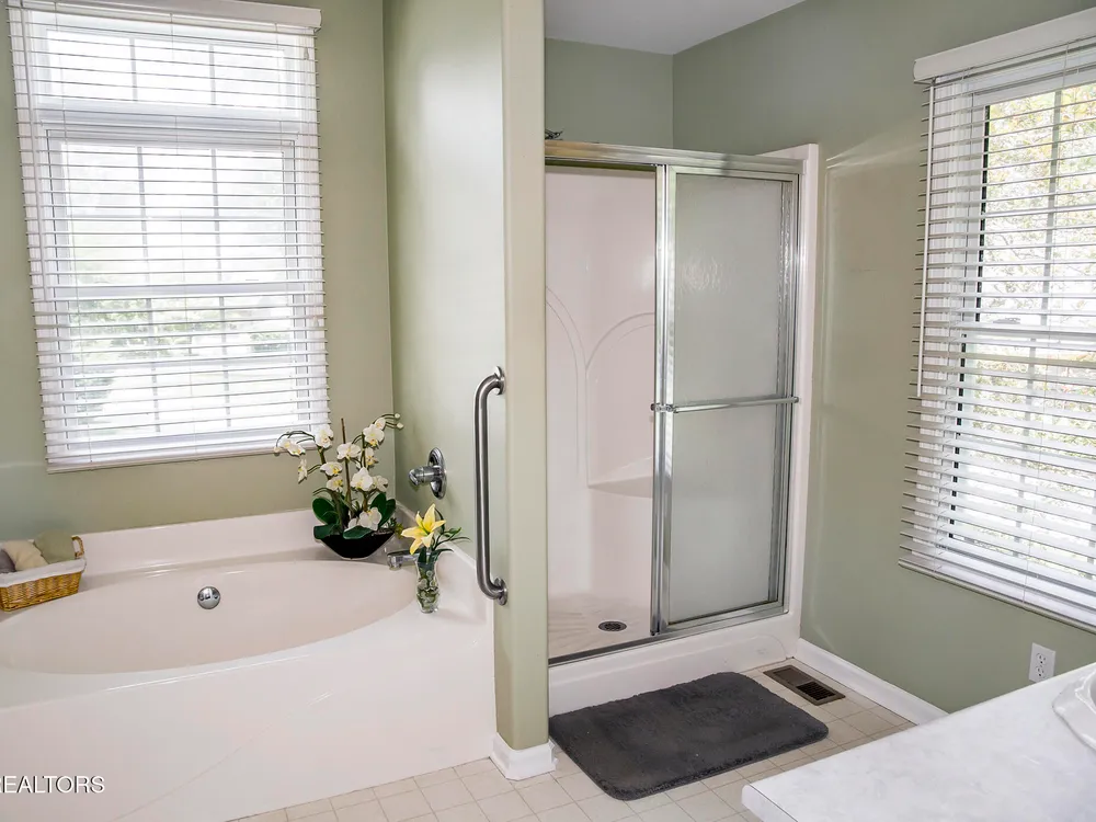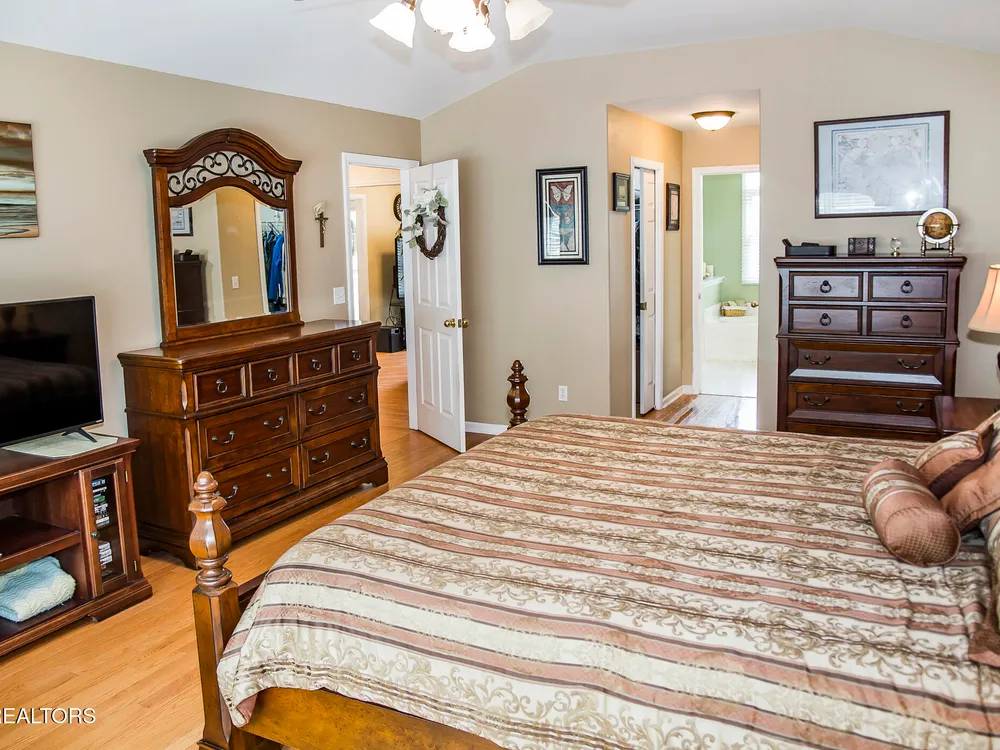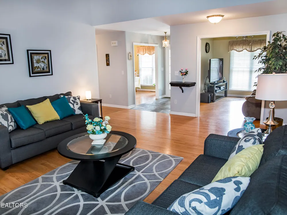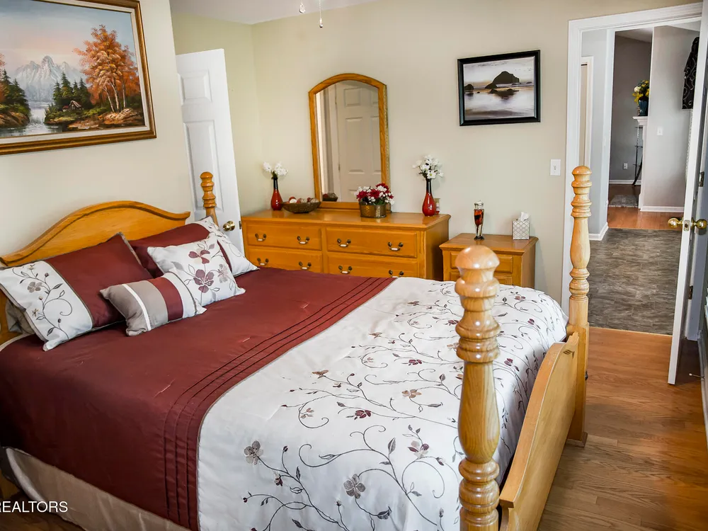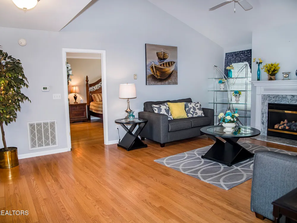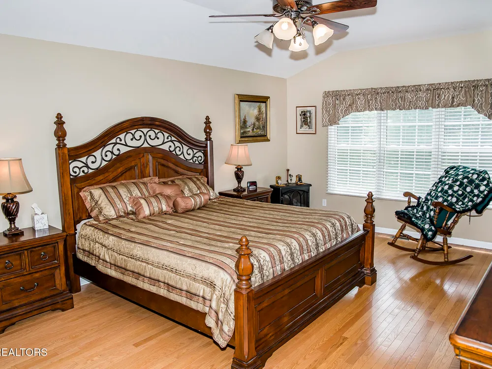SPACEIOUS SPLIT BEDROOM RANCH WITH 1 YEAR OLD HVAC & ROOF!!! An EXCEPTIONAL VALUE!!! This roomy 3 bed - 2 bath 2,100 SqFt Ranch is situated on a quiet cul-de-sac in the BEAUTIFUL DOCKSIDE Neighborhood. This neighborhood features Views of Lake St. George, Underground utilities, Mailbox lamp posts & a Friendly neighborhood atmosphere. Around back you can enjoy either the screened deck that looks out into your private backyard, the open entertaining deck or the concrete patio area. Inside you will find a stone floor entryway & beautiful hardwood floors. (no carpets in this home) 12' cathedral ceiling in the living room, 8'7'' trey ceilings in the den & dinning rooms, 9' ceiling in the master bedroom, & 10' ceiling in the master bathroom. The master suite also features 6'3''x 4'7'' his & hers walk-in closets. The eat-in kitchen offers plenty of space with-in its 22'10''x 12'9'' area. The guest side of the home features 2 guest rooms, a guest bath & a 11'x 6'10'' laundry room with a 2 year old washer & dryer set. The 20'wide x 23.5'deep garage has just 1 step up into the house. The yard is also serviced by a 5 zone 25 head rainbird irrigation system. Don't miss out on this truly exceptional Fairfield Glade Value!!! Buyer to verify all measurements and information prior to making an offer.