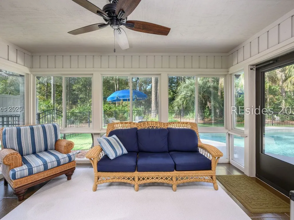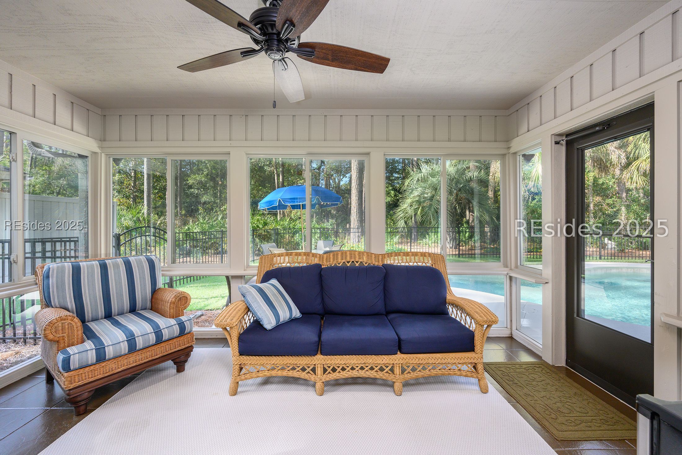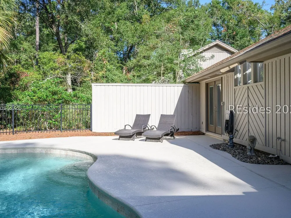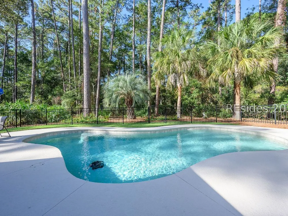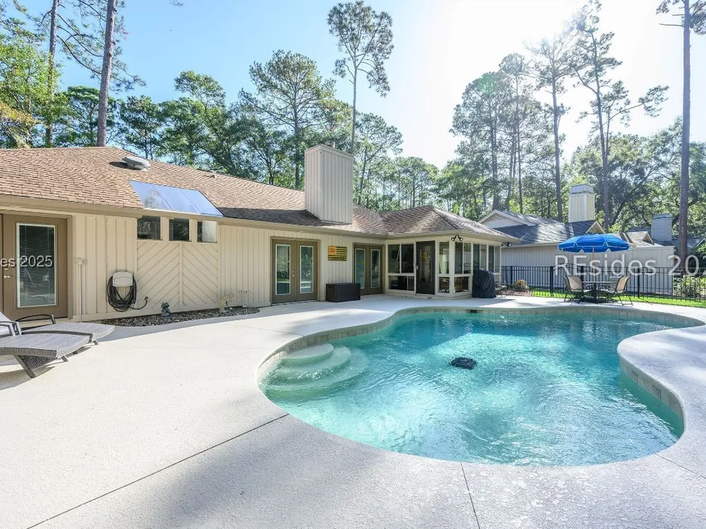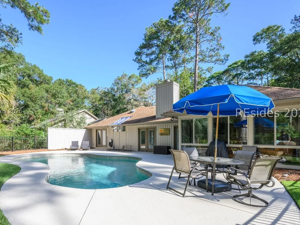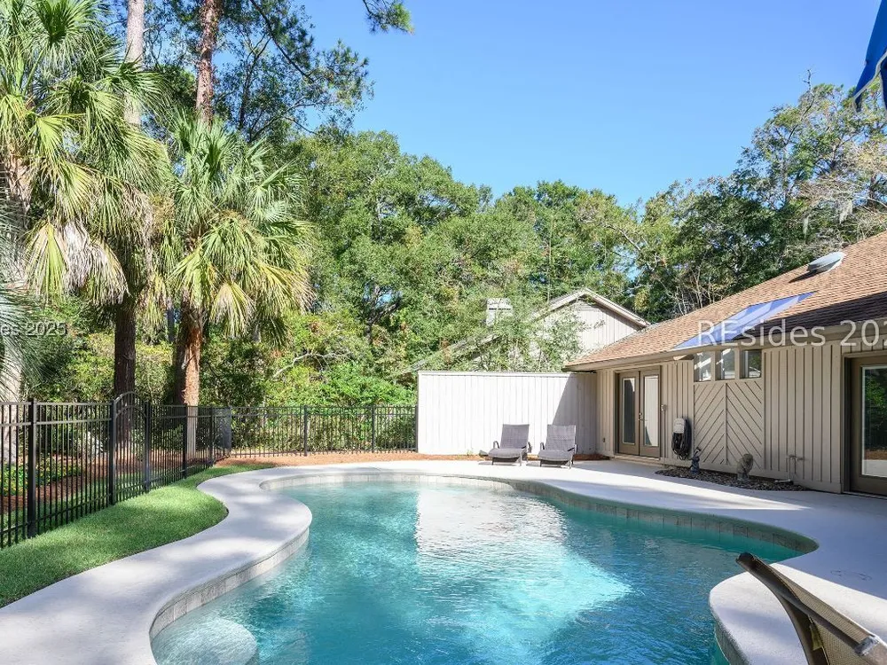 BEST DEAL ON A 4 BR HOME IN HHP!!!. This beautiful 4-bedroom, 3-bathroom home offers 2176 sq. ft. of elegant living space. Features include an open-concept layout, gourmet kitchen with high-end appliances, dining room, spacious family room with fireplace, and a luxurious primary suite with a spa-like bath. You will love the Carolina Room overlooking the private fenced in pool and lush backyard. With access to world-class amenities like golf, tennis, and a fabulous lazy river pool complex, this Hilton Head Plantation home is the perfect Lowcountry retreat.