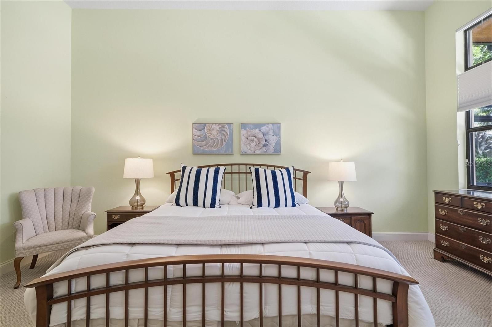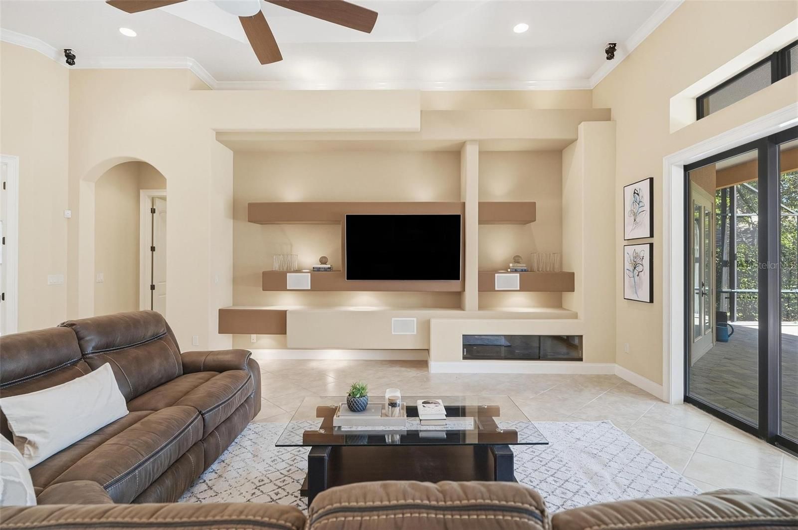 - Built-in Features, Crown Molding, High Ceilings, Open Floorplan, Main Level Primary, Stone Counters, Walk-In Closet(s), Window Treatments