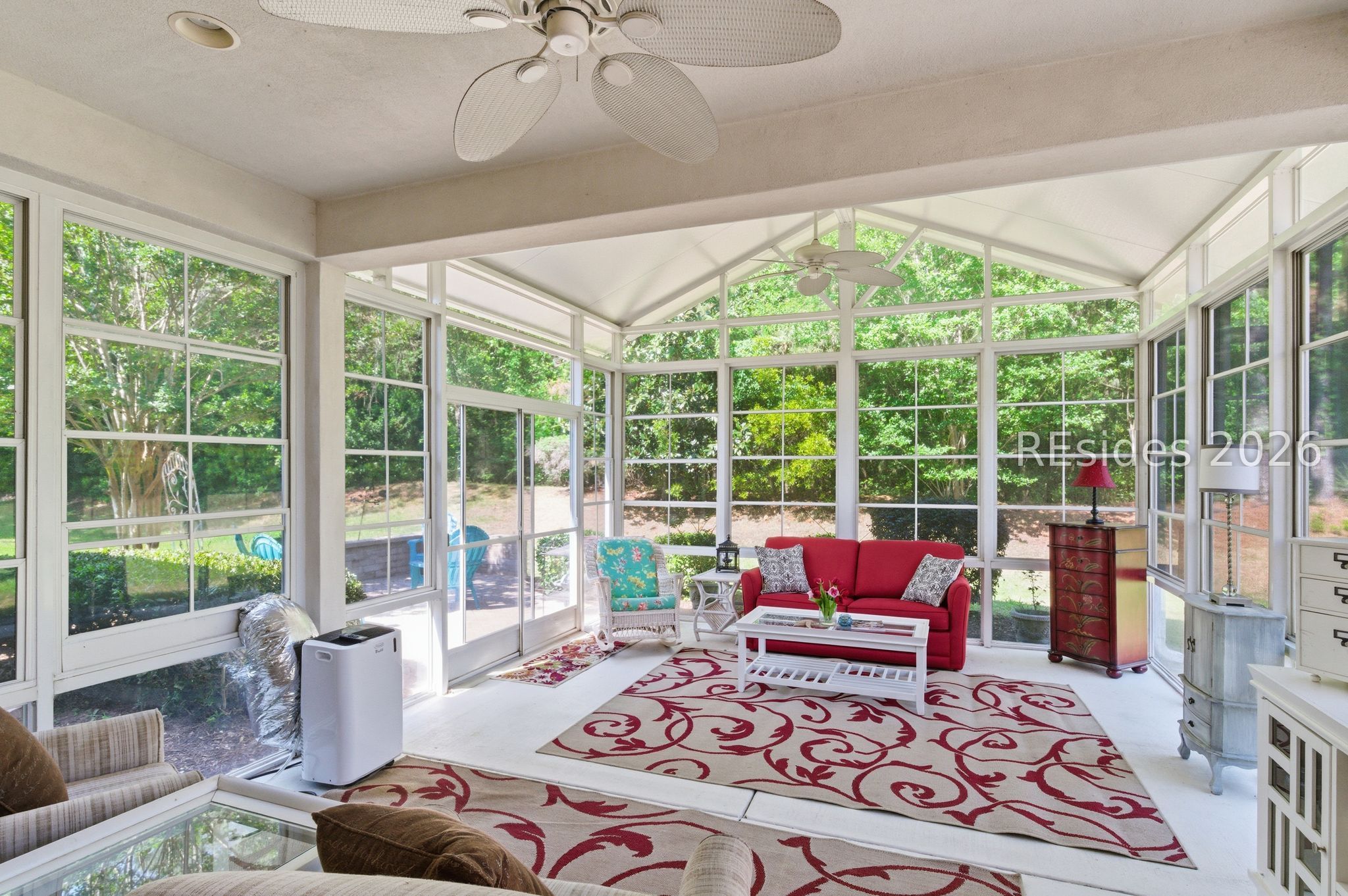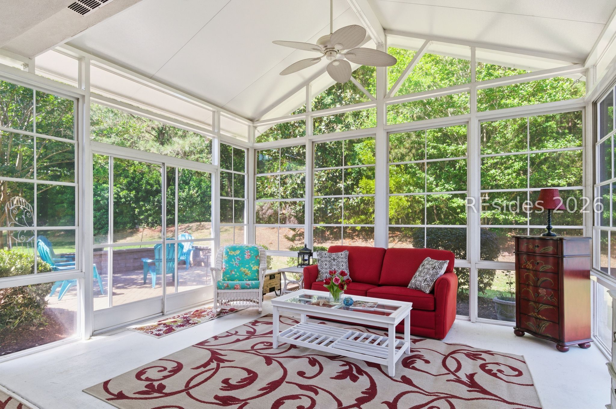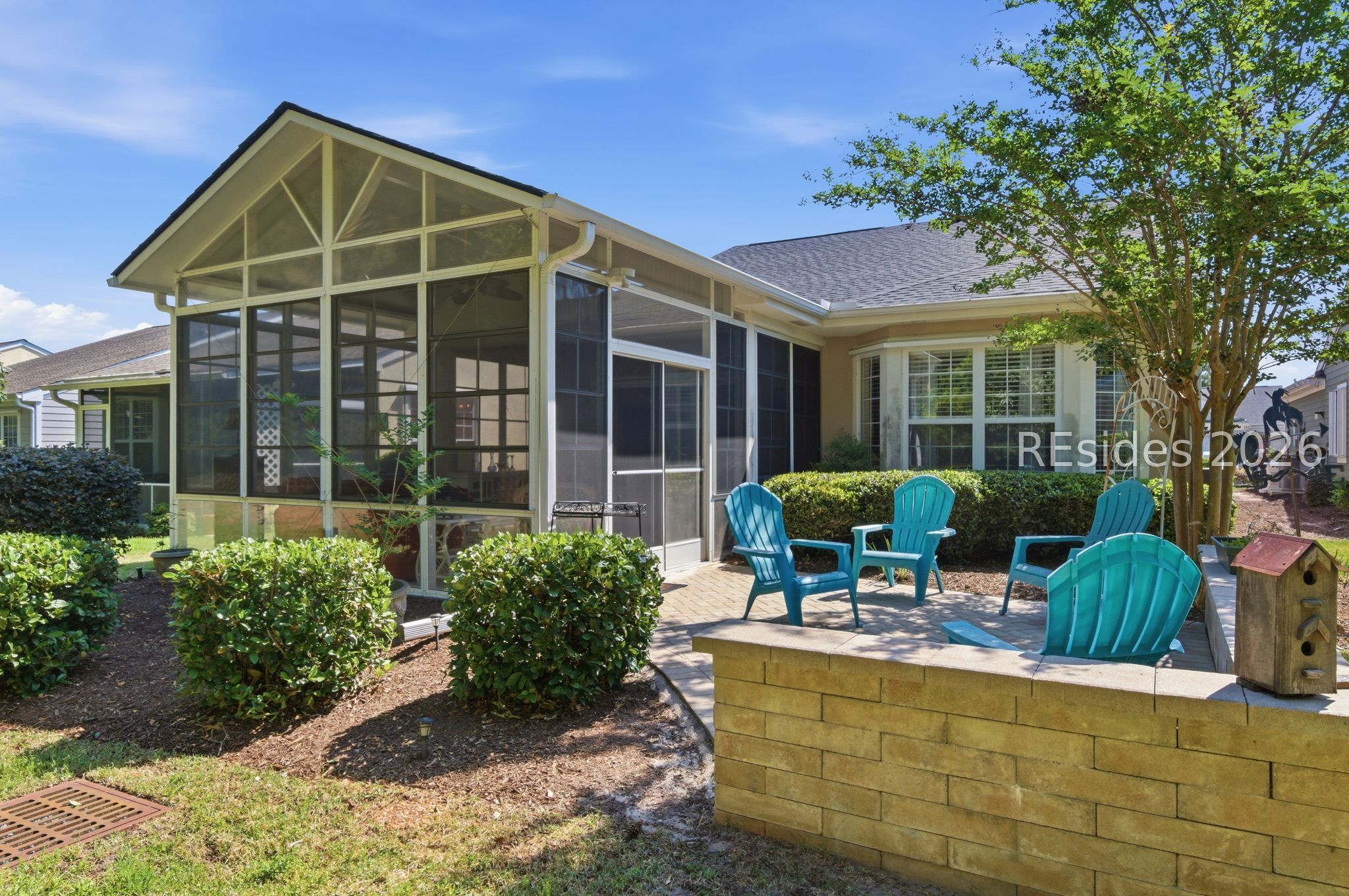This must-see 1,804 sq. ft. Primrose Model offers a rare blend of comfort, style, and connection to nature, featuring 2 bedrooms, 2 bathrooms, plus a versatile office/den-perfect for remote work, hobbies, or additional guest space. Designed with both relaxation and entertaining in mind, the home showcases an expansive Carolina Room surrounded by windows, flooding the space with natural light and providing tranquil views of the private wooded backdrop-a peaceful retreat right in your own home. Thoughtfully designed open and functional floor plan w/Crown molding adds an elegant finishing touch. Bright eat-in kitchen with stainless steel appliances, ample cabinetry, and casual dining space. Spacious primary suite with comfortable layout w/ Bay Window and privacy. Beautifully upgraded guest bathroom featuring a full glass, multi-head spa-style shower for a luxurious experience. Flexible office/den ideal for work-from-home or creative use. Outdoor Living & Exterior Upgrades: NEW ROOF (2023) for peace of mind. Charming herringbone brick pathway enhancing curb appeal. Private brick patio with knee wall, perfect for outdoor entertaining or quiet evenings. Serene, wooded rear setting offering privacy and natural beauty. You'll find an Oversized garage with custom-built cabinetry for exceptional storage w/Durable all-weather carpeted flooring in garage and a Retractable, remote-controlled garage door screen-ideal for ventilation and versatile use of the space. Convenient access to the Sun City back gate for easy entry and exit. Enjoy resort-style living with Sun City's renowned amenities (golf, pools, fitness, clubs, and more). Ideally located near Old Town Bluffton, Beaufort, Hilton Head Island, and Savannah-offering dining, shopping, beaches, and cultural attractions just a short drive away. Unique Buyer Opportunity: (Seller financing available at just 5% interest,) offering potential savings, flexibility, and a quicker closing process-an exceptional opportunity in today's market! Hurry as this one is a Rare Opportunity!